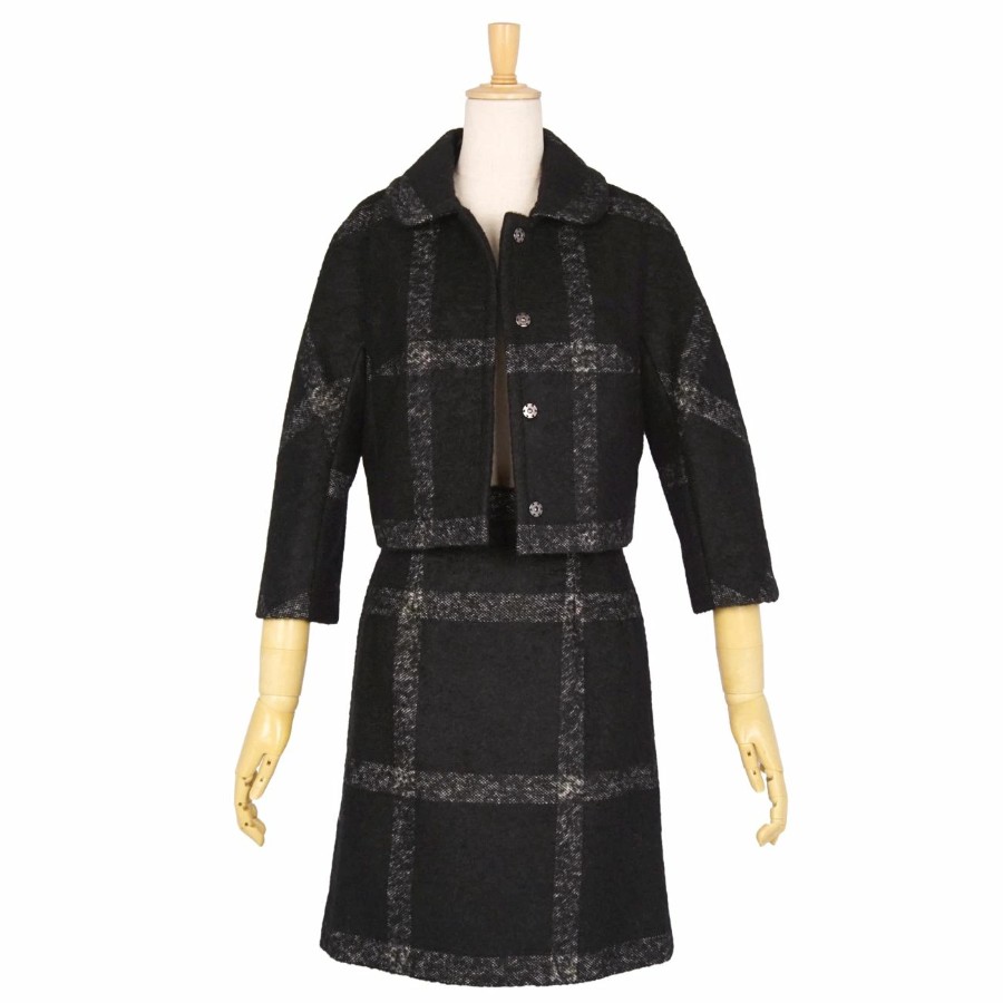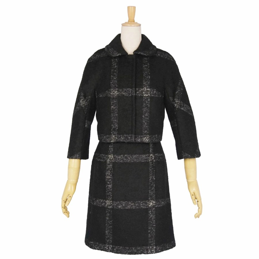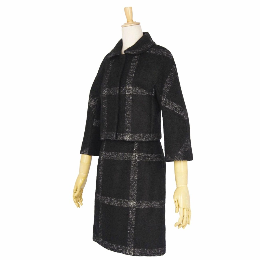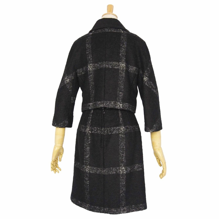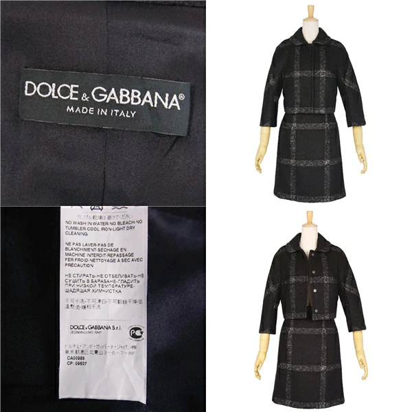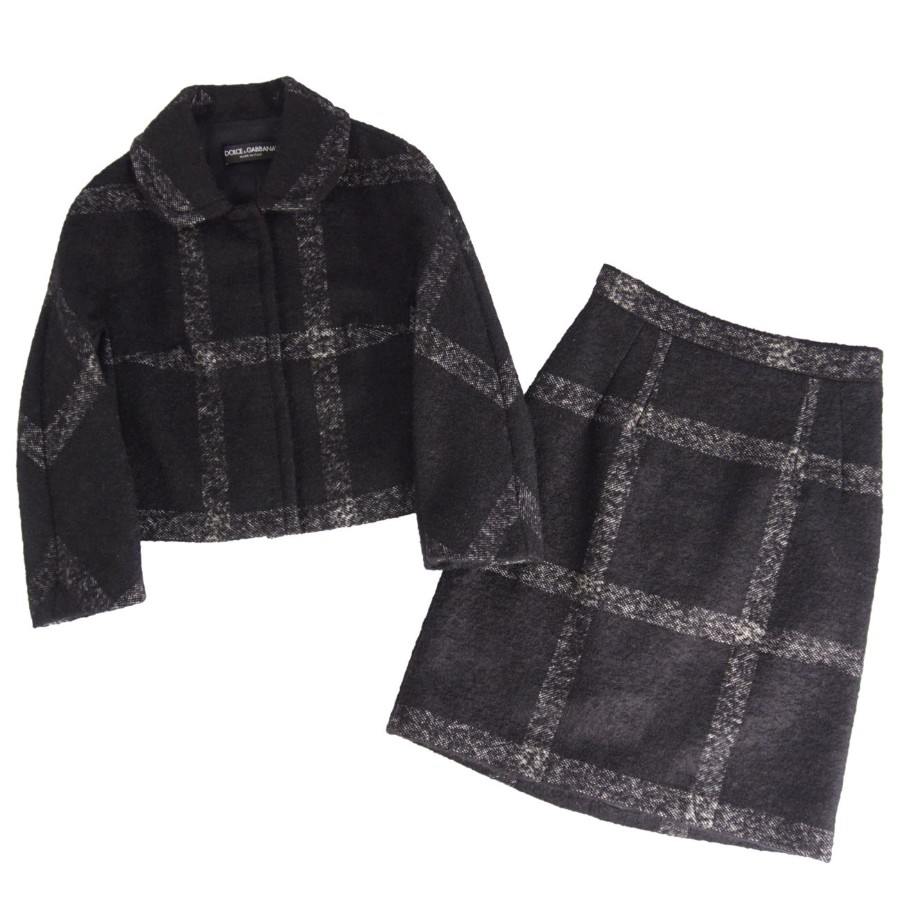 ドルチェ&ガッバーナ DOLCE&GABBANA セットアップ スカートスーツ チェック ウール ジャケット スカート レディース イタリア製 ブラック サイズ38(M相当)