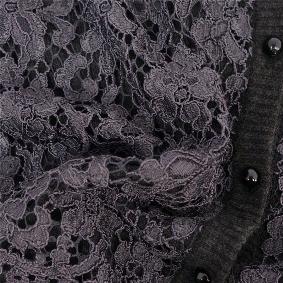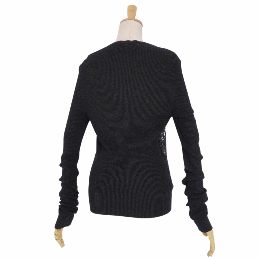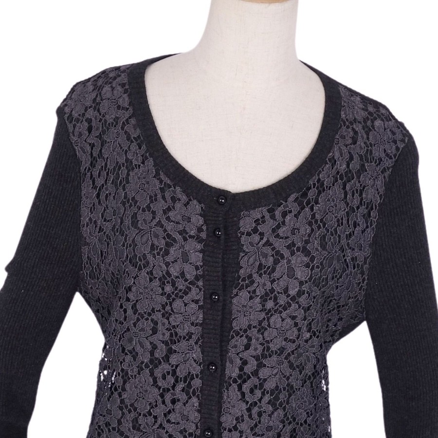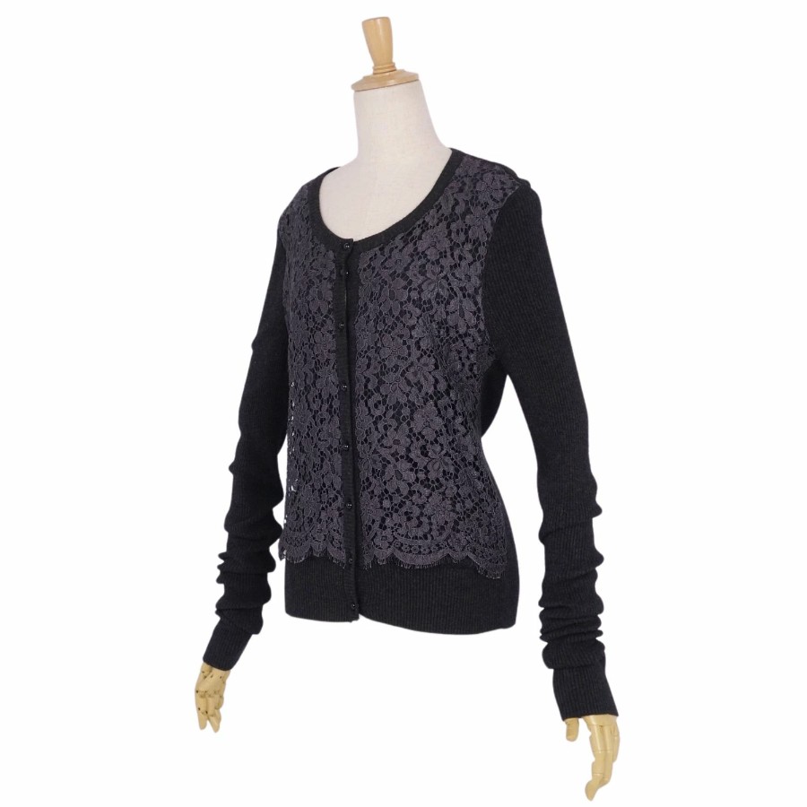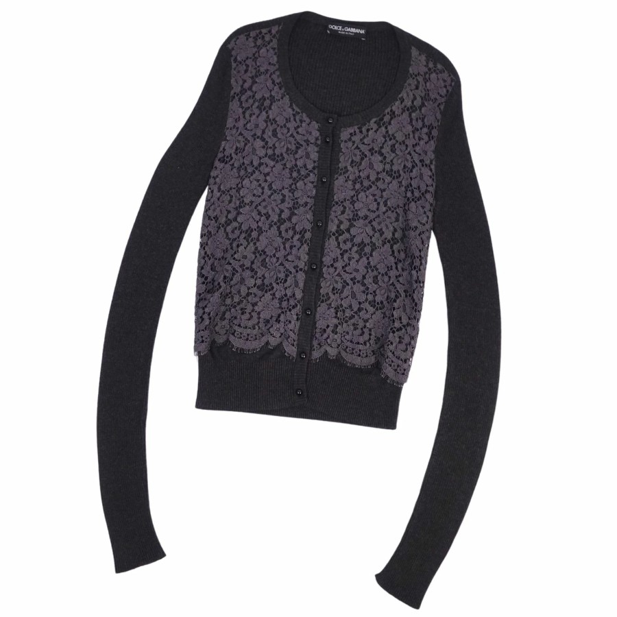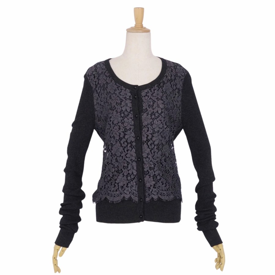 ドルチェ&ガッバーナ DOLCE&GABBANA ニット カーディガン ロングスリーブ 長袖 レース トップス レディース ブラック サイズ36(XS相当)