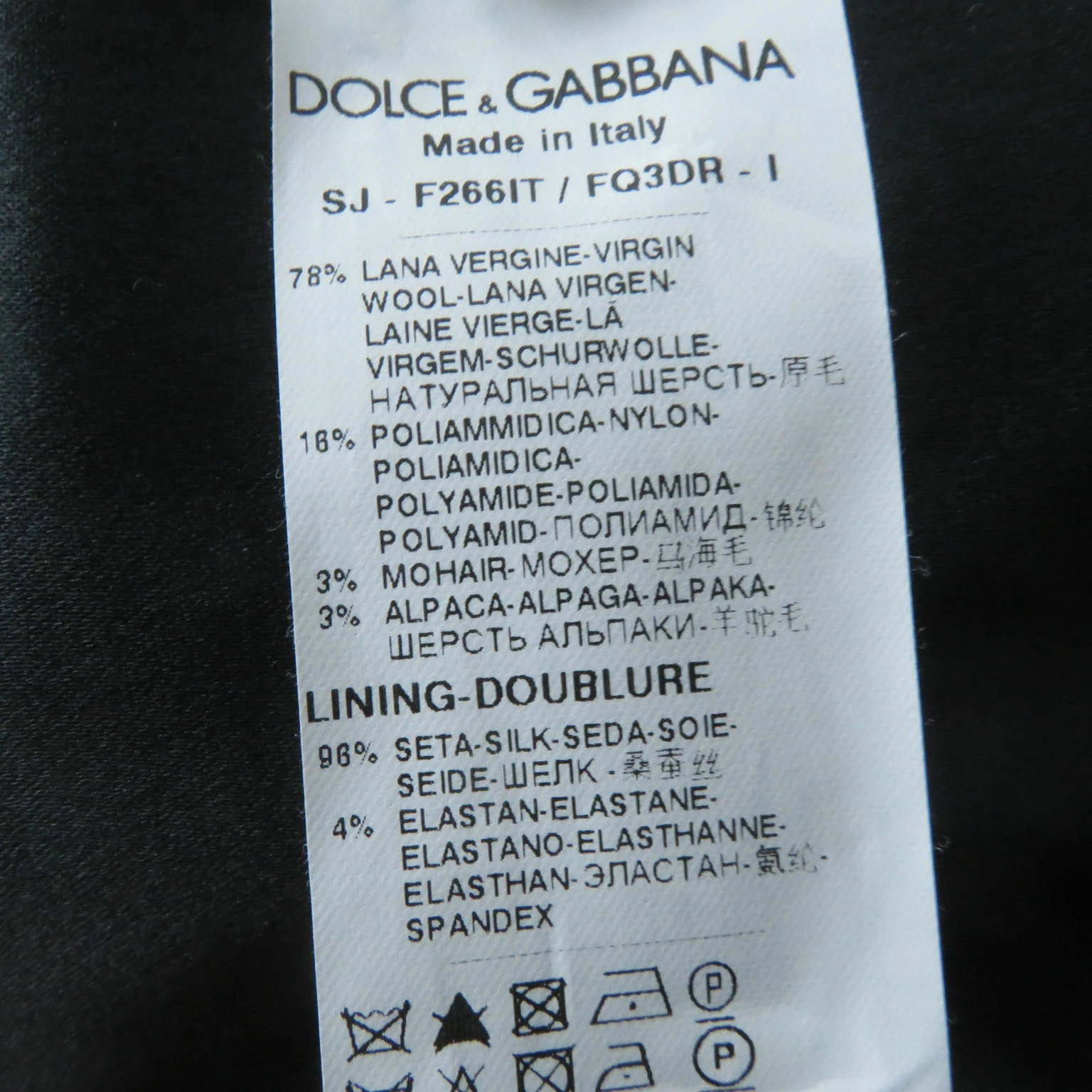 | 素材 (material) | 本体:ウール78% :ナイロン18% :モヘア3% :アルパカ3% 裏地:シルク96% :アルパカ3% 裏地:ポリエステル100% | ||||||||||||||||