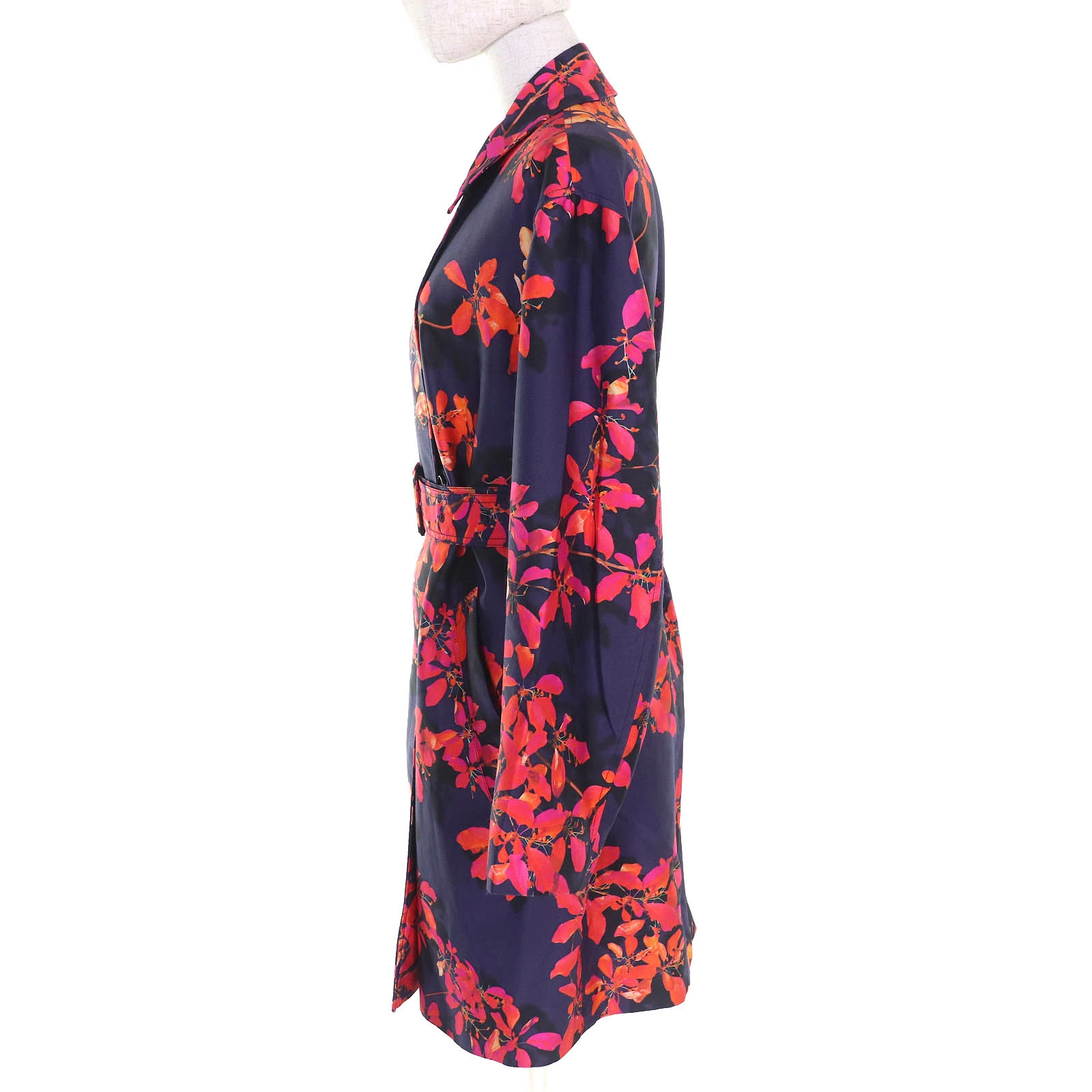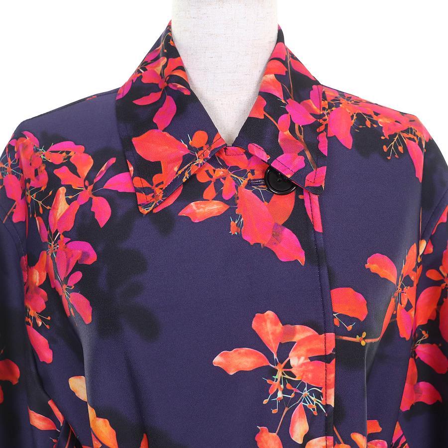 Excellent condition DRIES VAN NOTEN 19AW Floral Coat, floral print, belted, single-breasted, runway-worn, navy and red, size 38, authentic, women's [pre-owned]