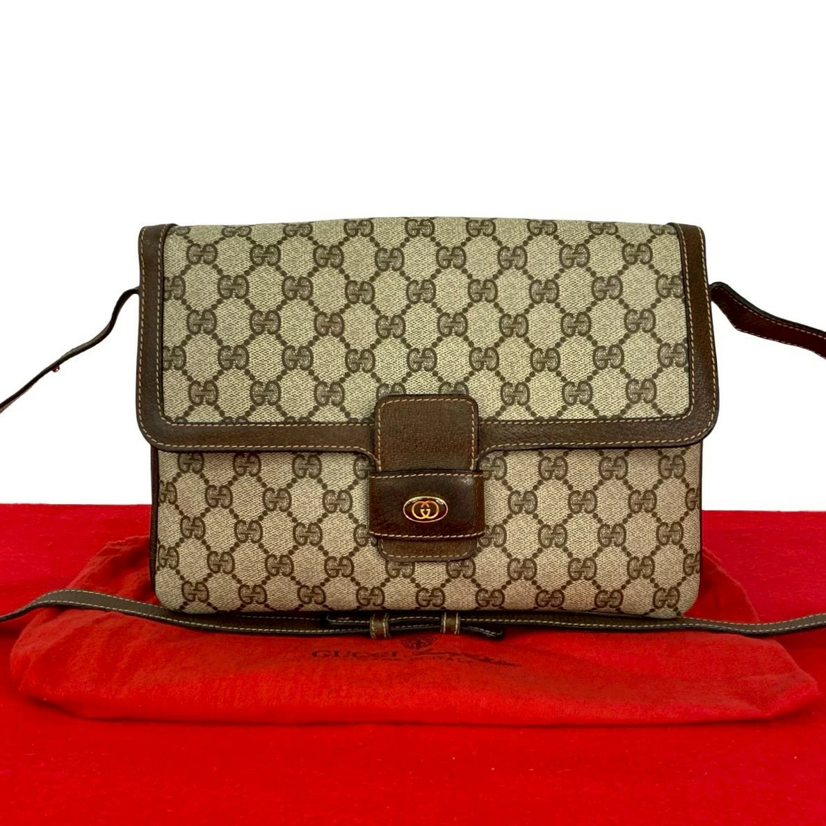 Excellent condition, dust bag included. GUCCI vintage Gucci GG logo all-over pattern with metal hardware. Genuine leather shoulder bag/pouch, brown, item number 88193. [Pre-owned]