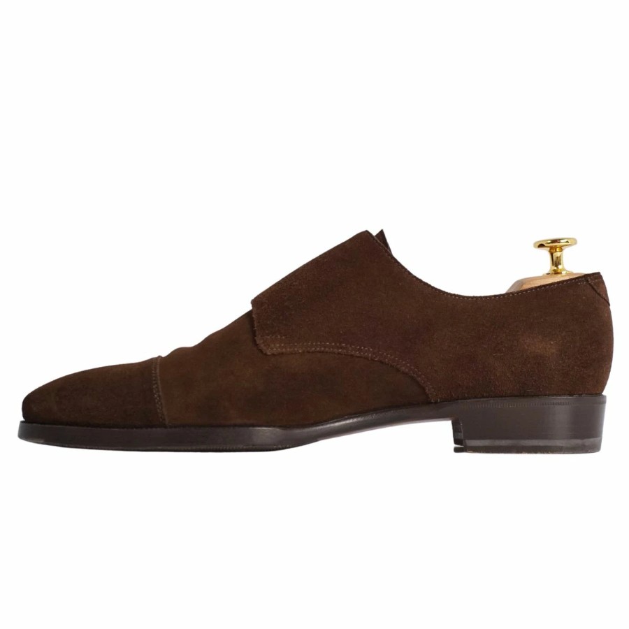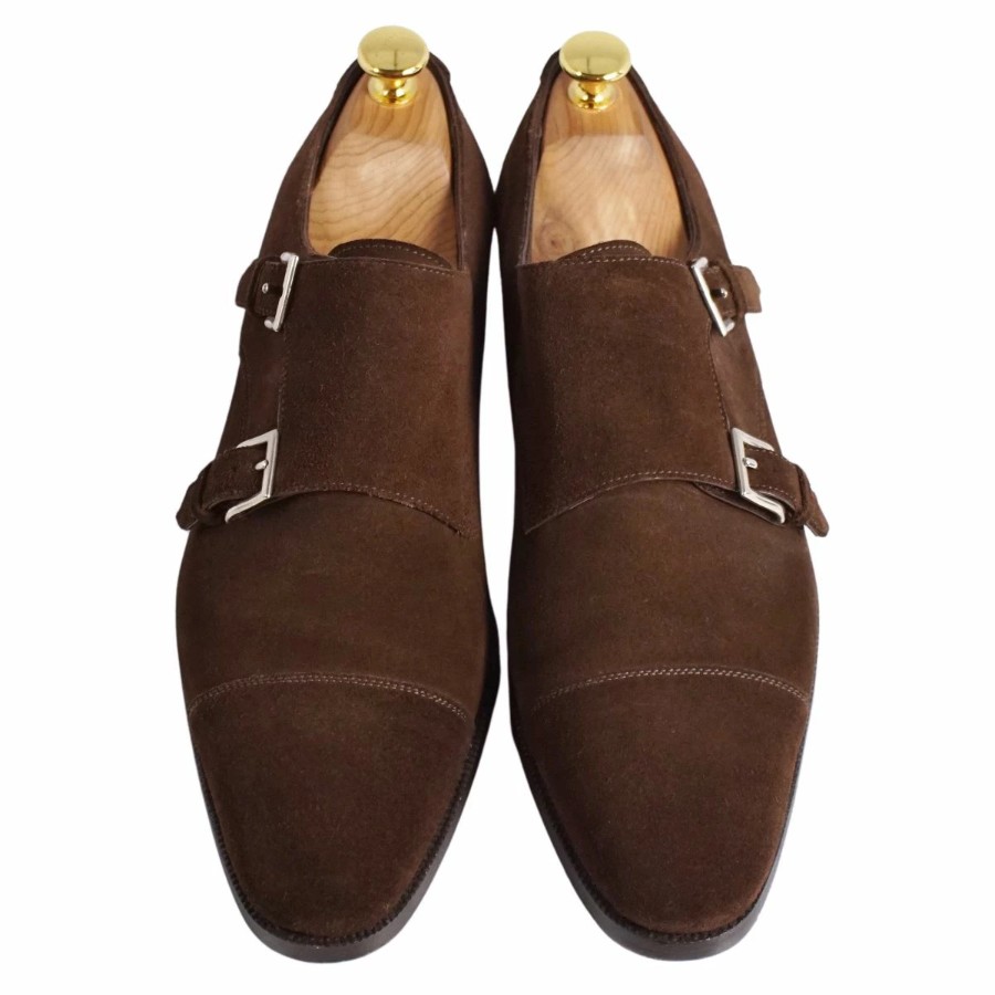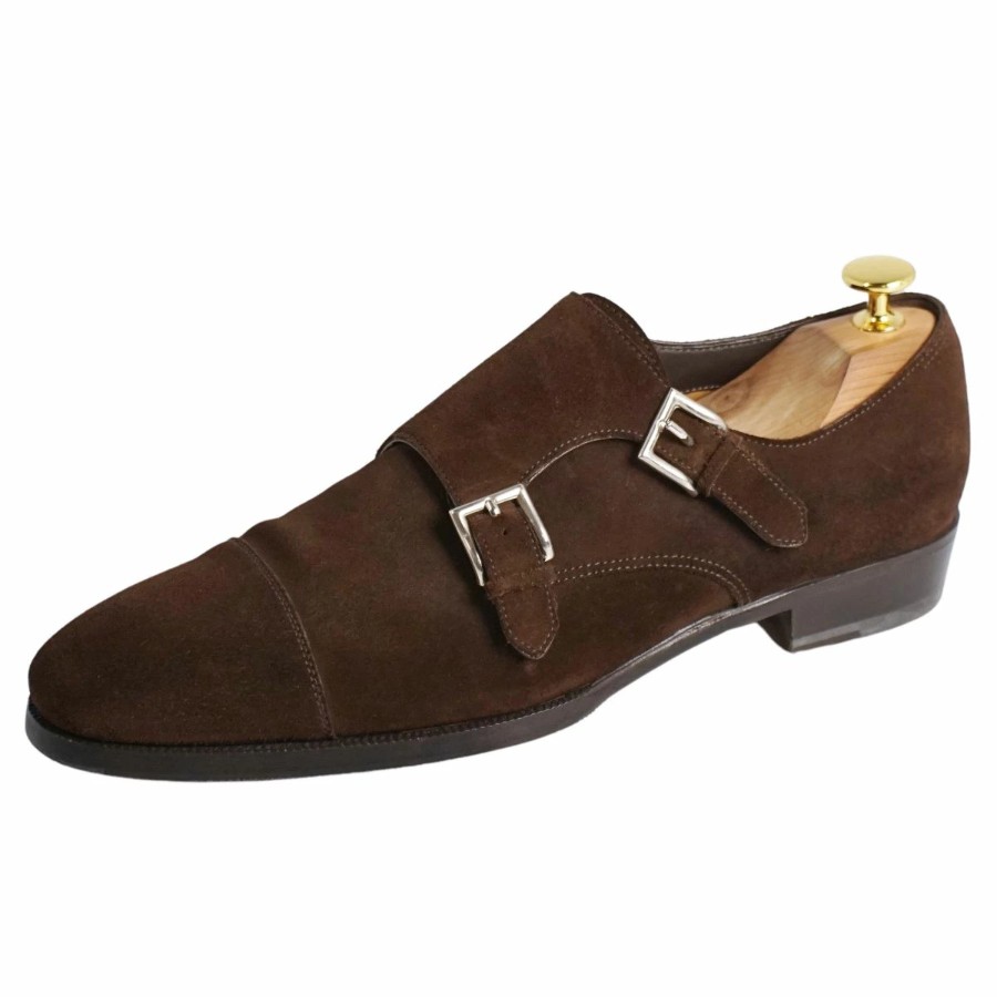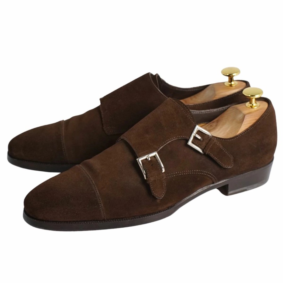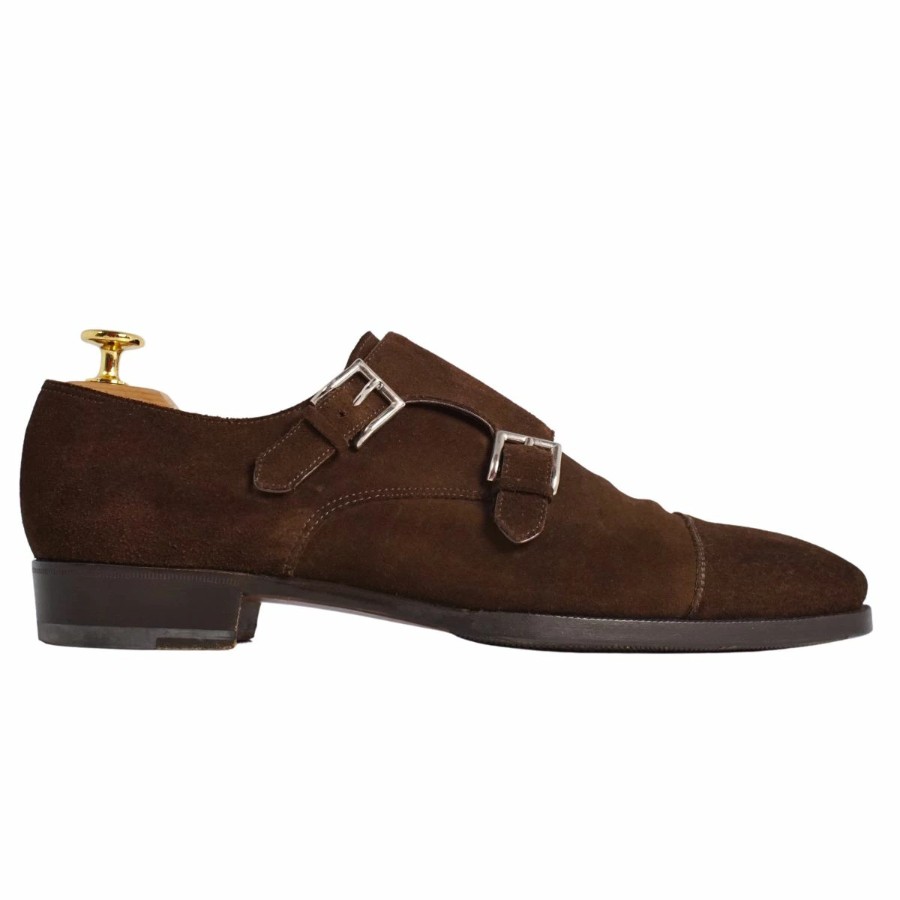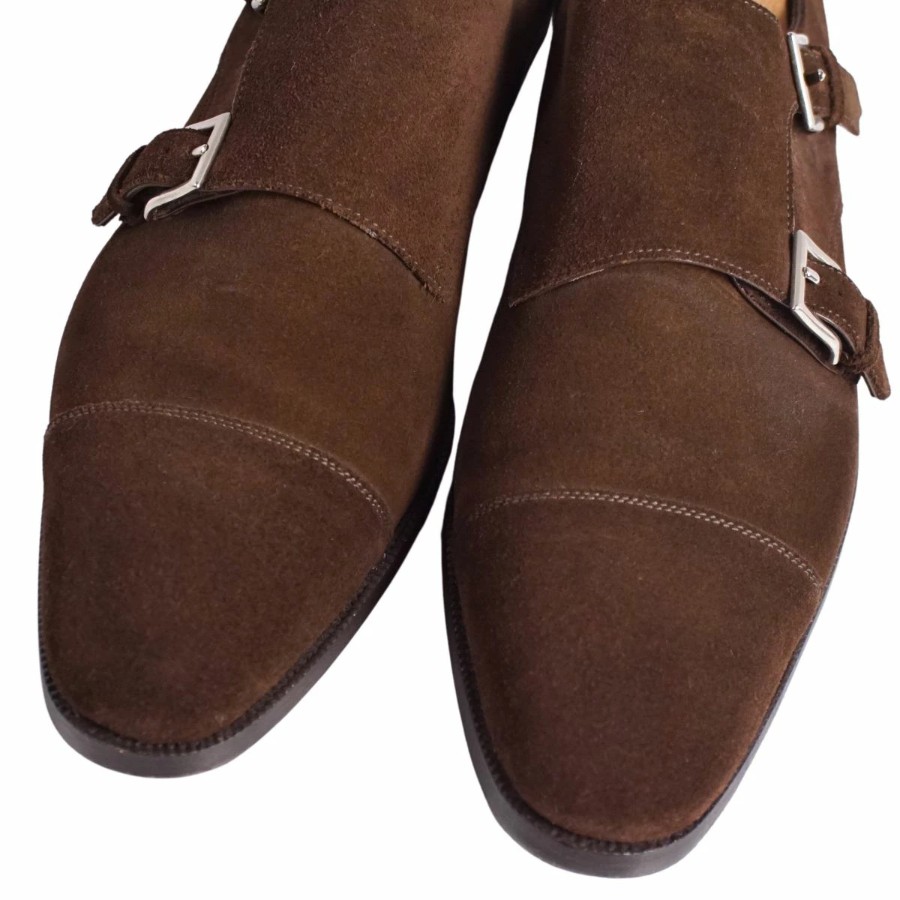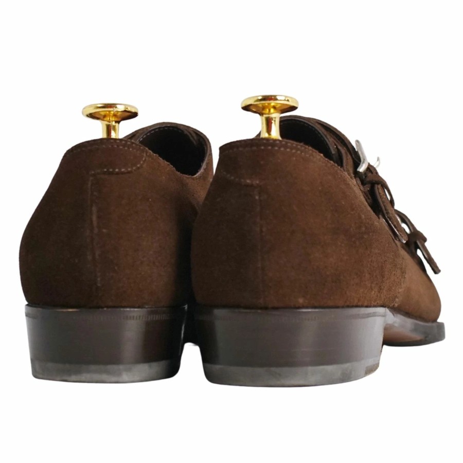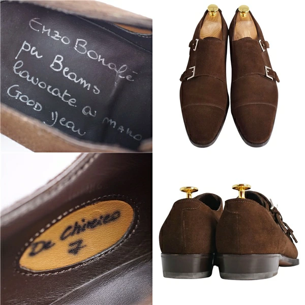 Enzo Bonafe エンツォ ボナフェ レザーシューズ ダブルモンクストラップ ビジネスシューズ スウェードレザー 革靴 メンズ ブラウン サイズ7(26cm相当)