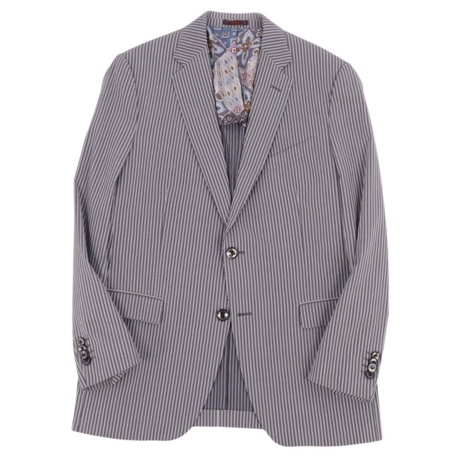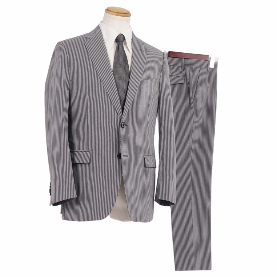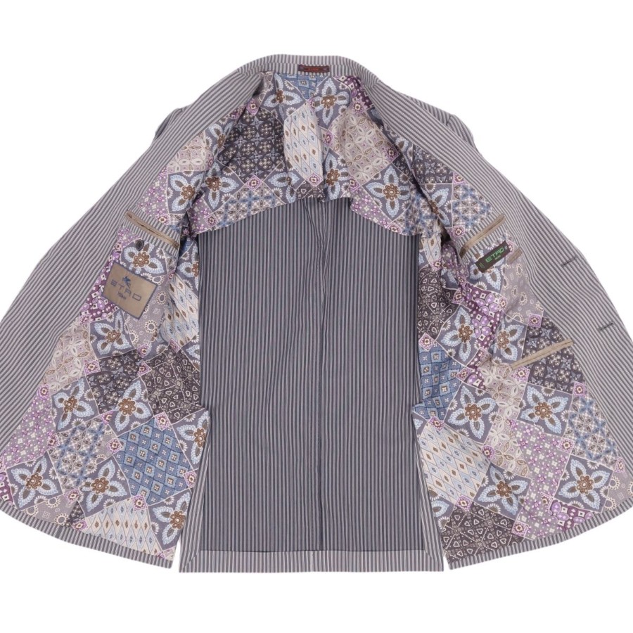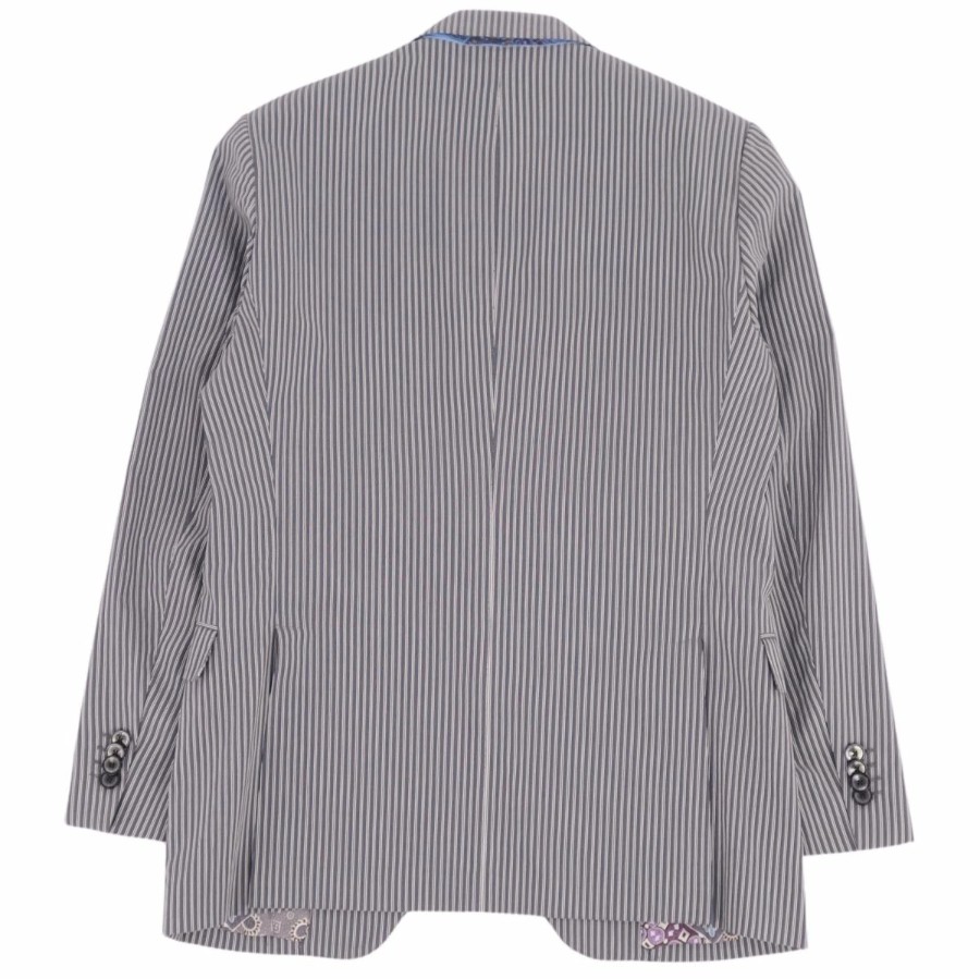 [Excellent Condition] ETRO Suit Set (Jacket and Trousers), Striped Cotton, Men's Size 50 (Equivalent to M), Gray [Used]