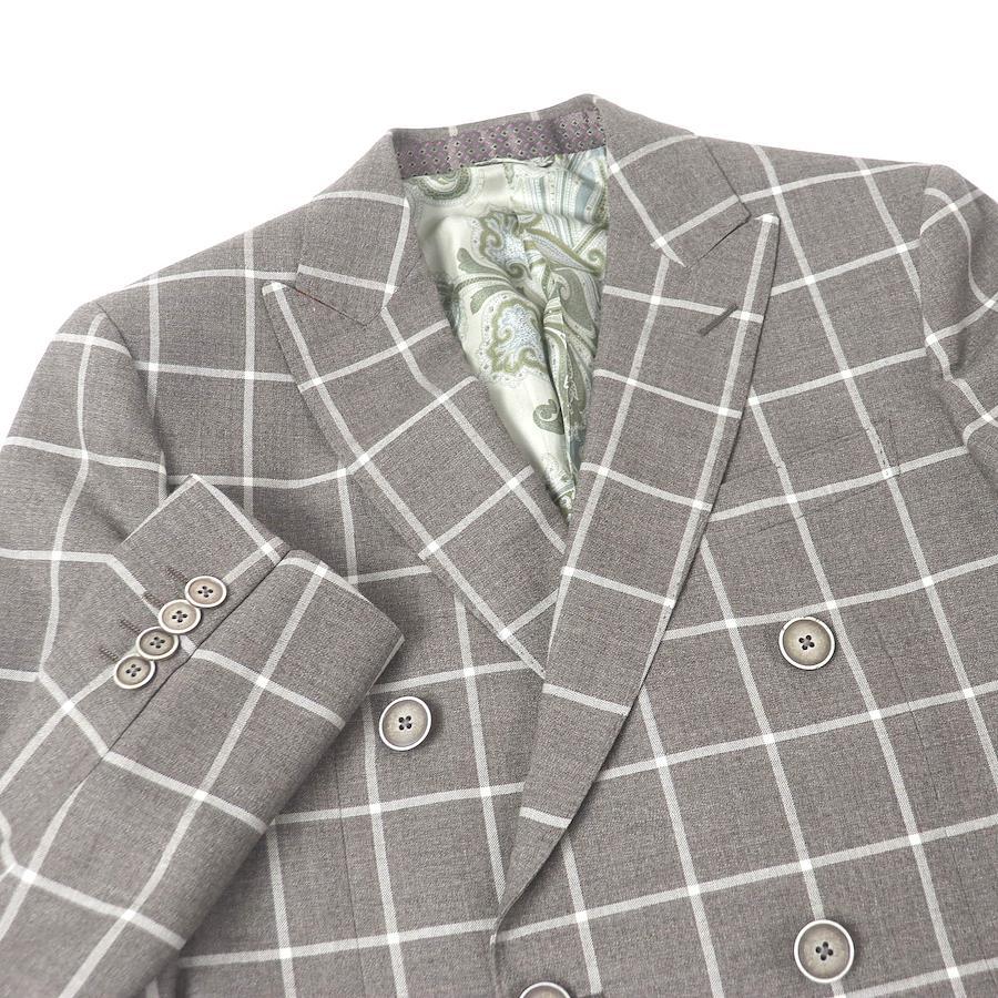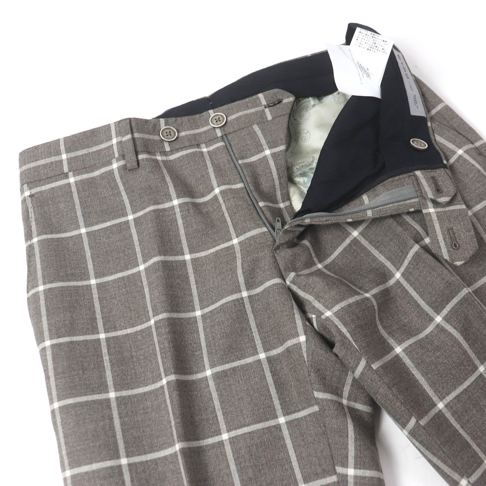 Excellent condition ETRO windowpane silk lining/paisley pattern peak lapel double-breasted suit, brown, size 46, includes hanger, authentic, made in Italy, men's [pre-owned]