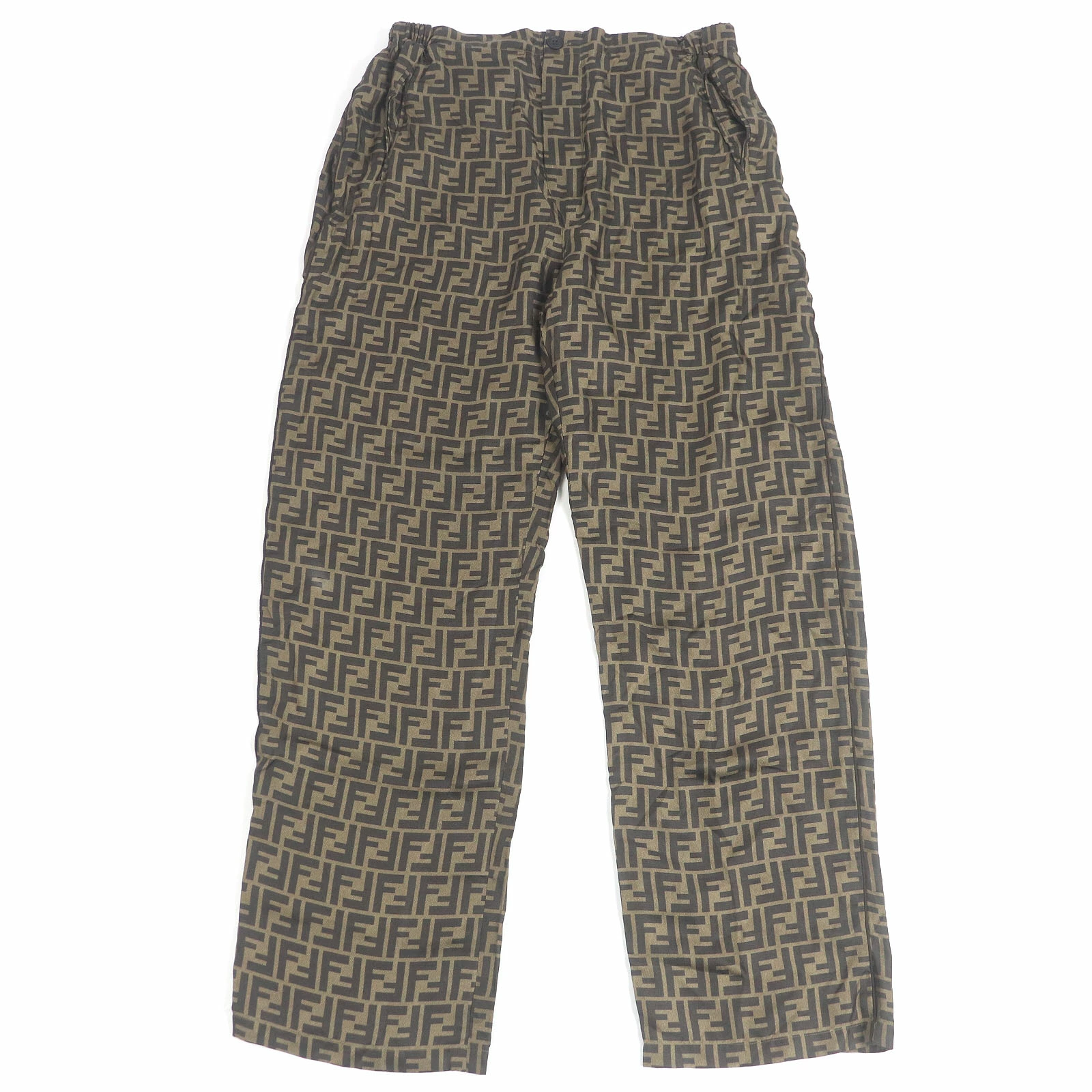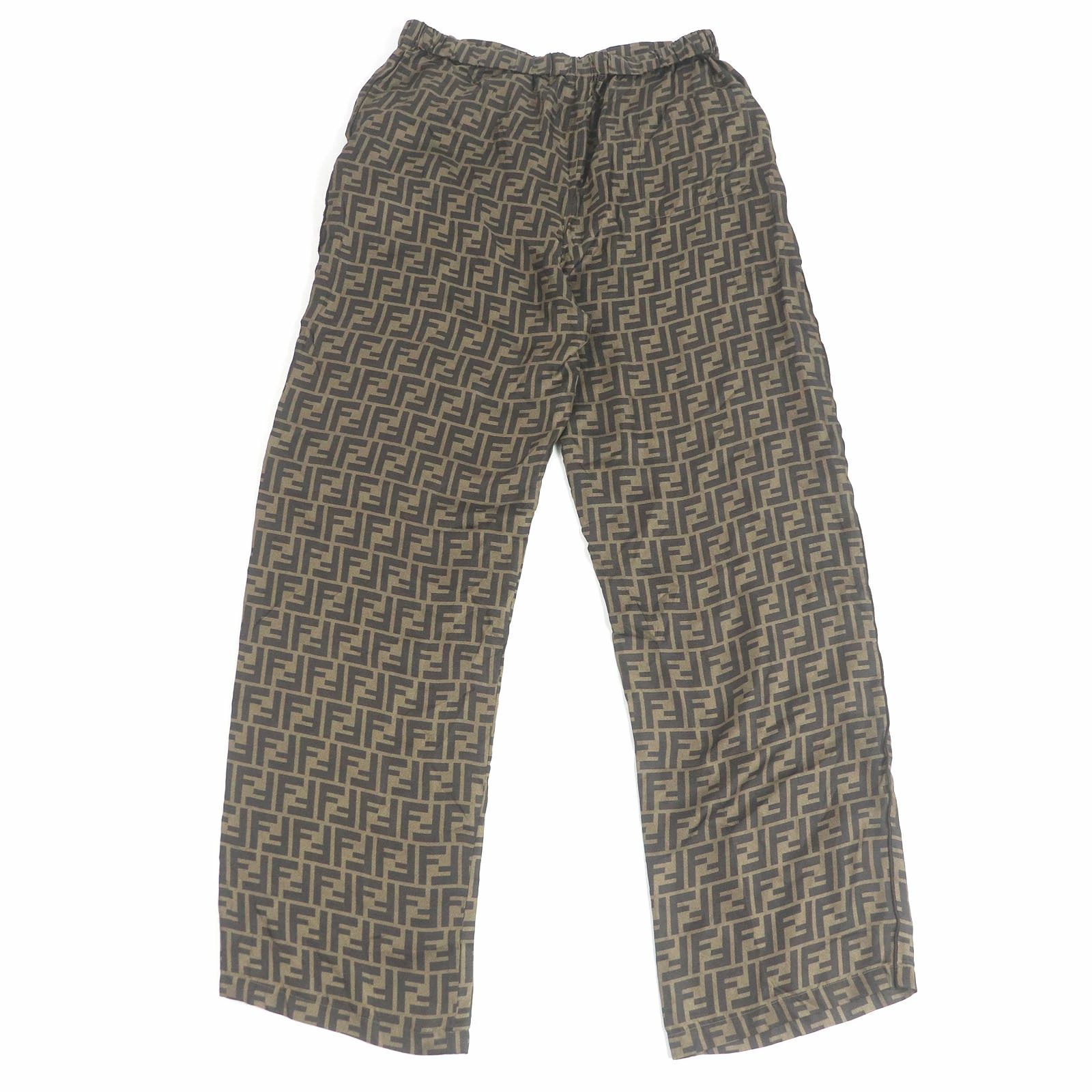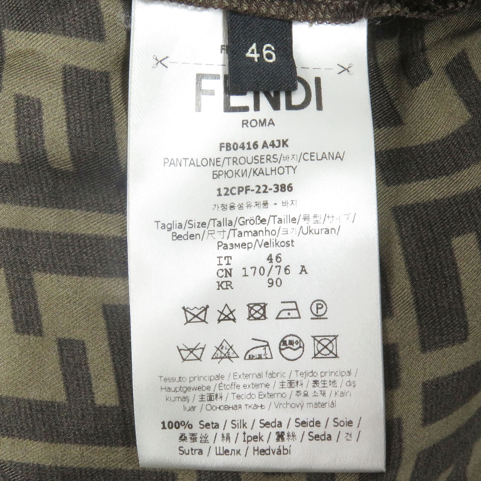 Excellent condition FENDI 2022 FB0416 100% silk easy pants with FF logo and Zucca print, brown, size 46, made in Italy, authentic, men's [pre-owned]