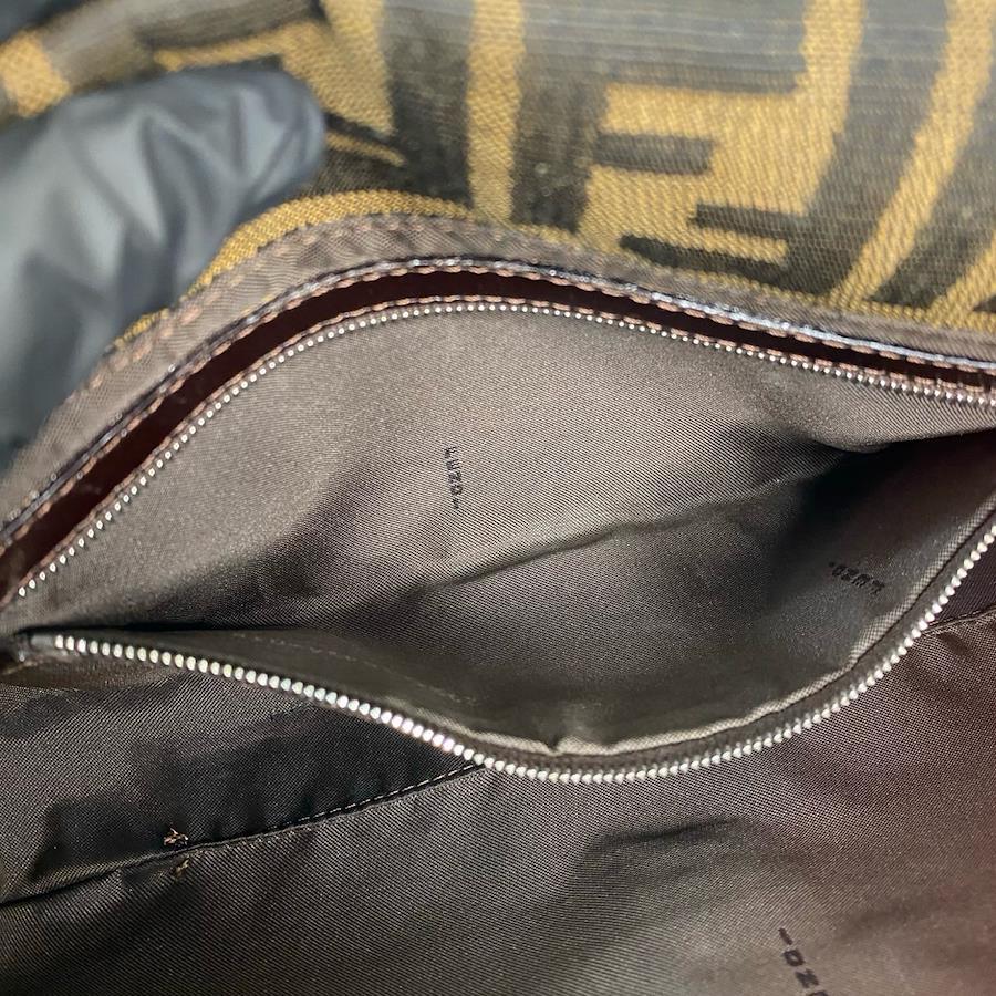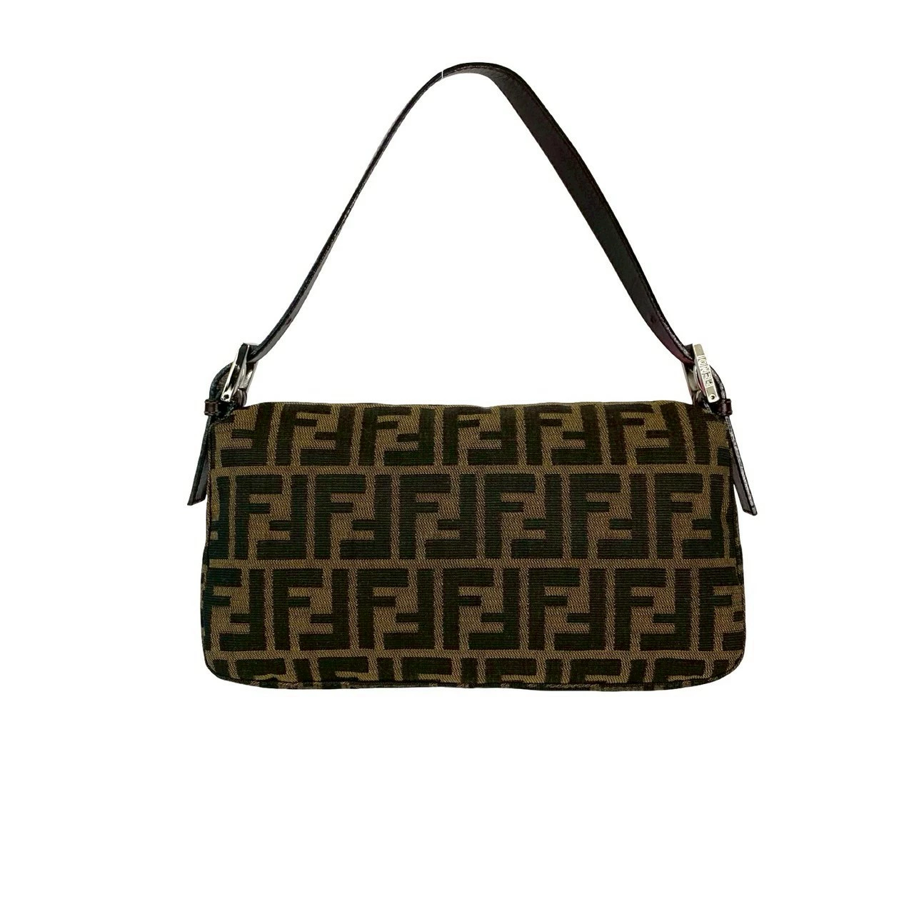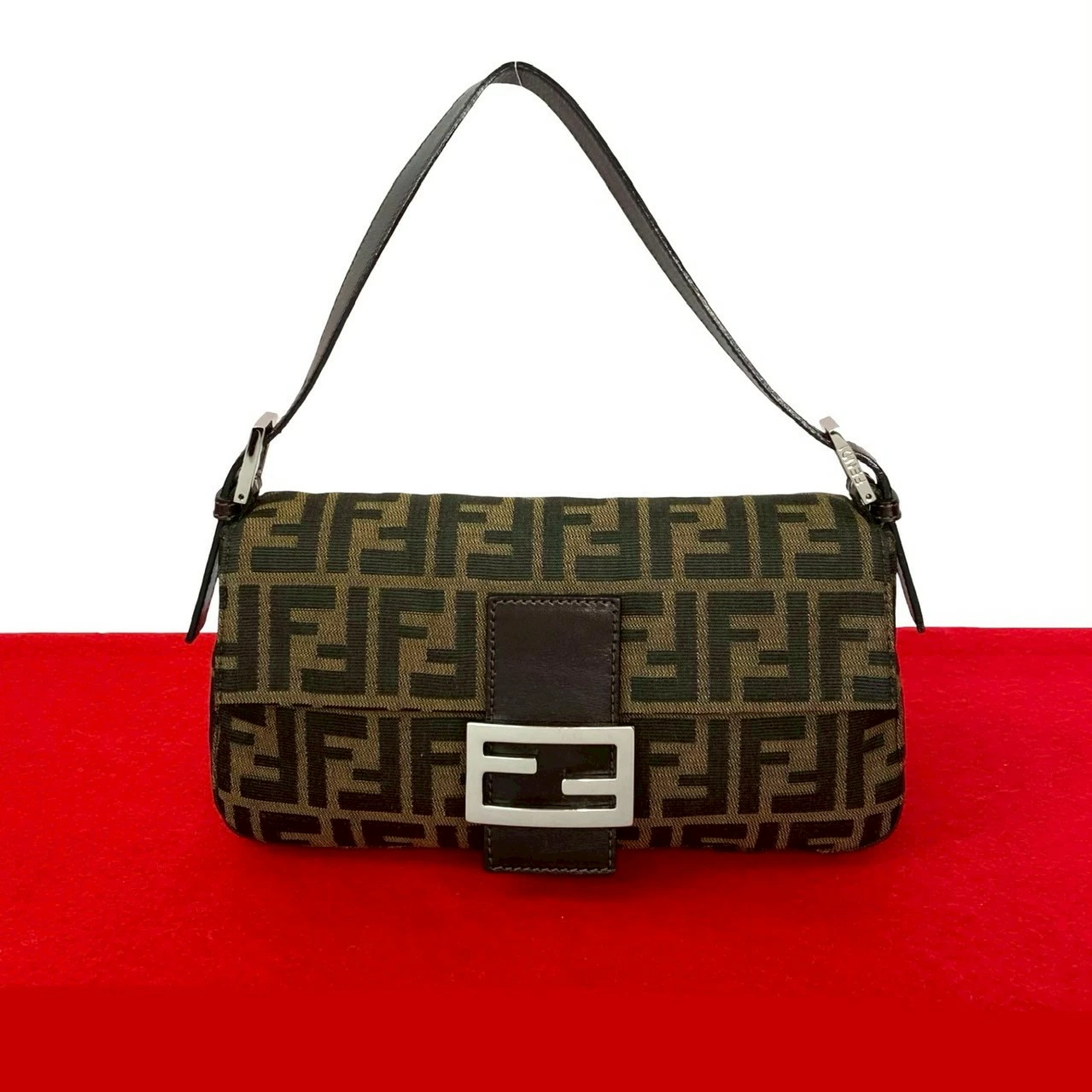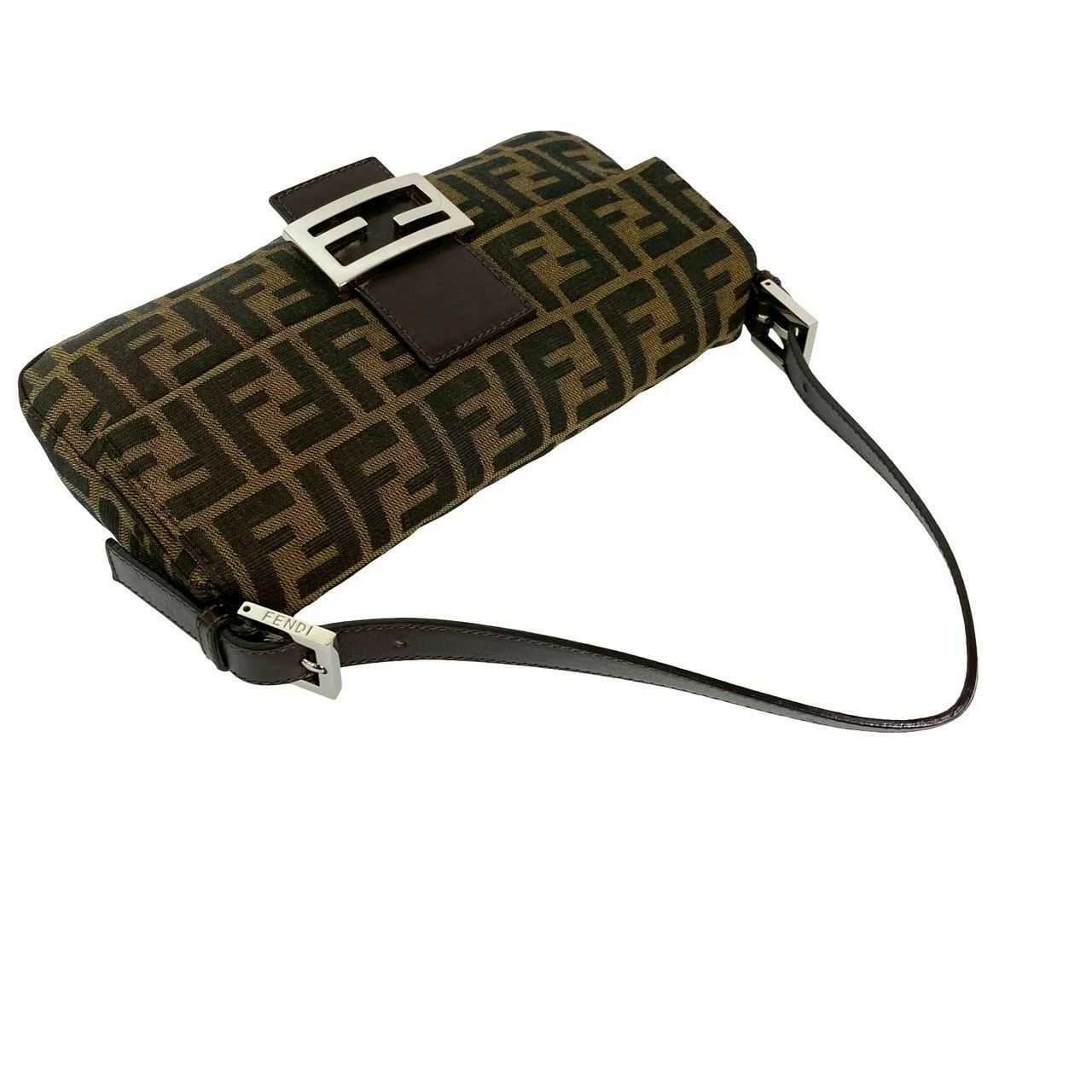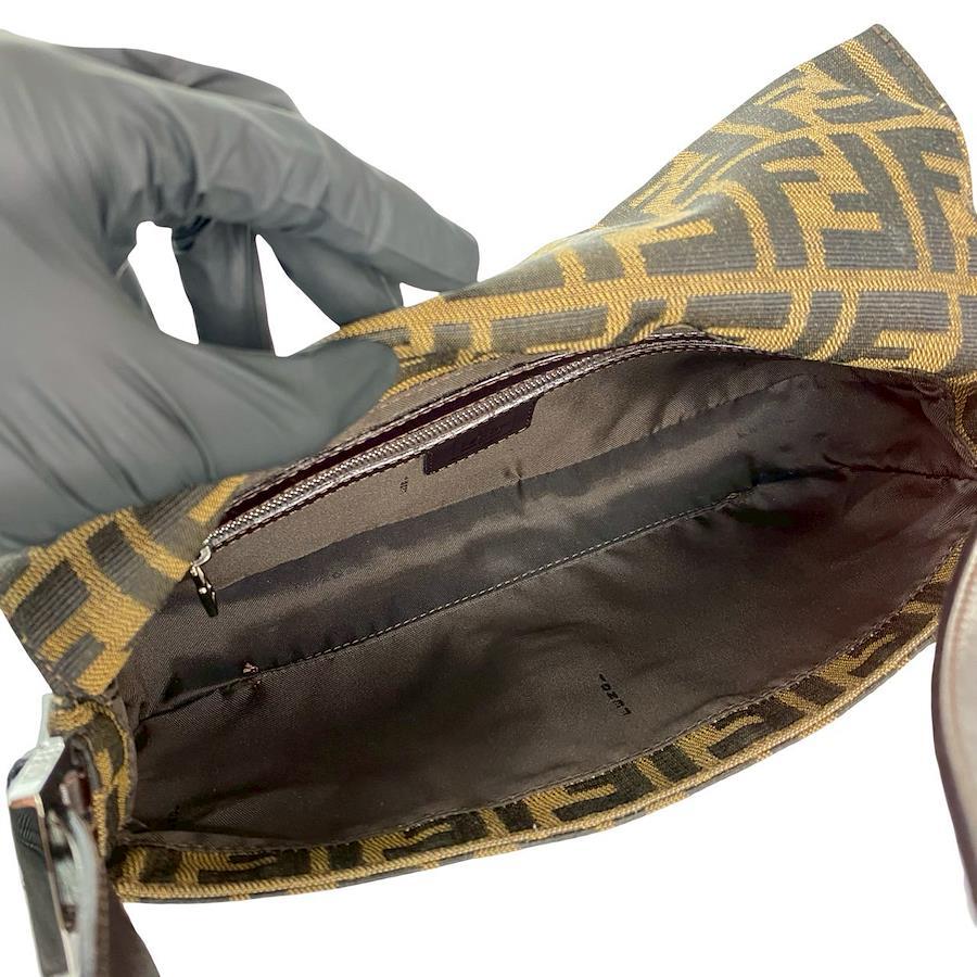 Excellent condition FENDI Mamma Bucket Zucca FF pattern canvas and leather semi-strap shoulder bag/handbag in brown (70446) [Pre-owned]