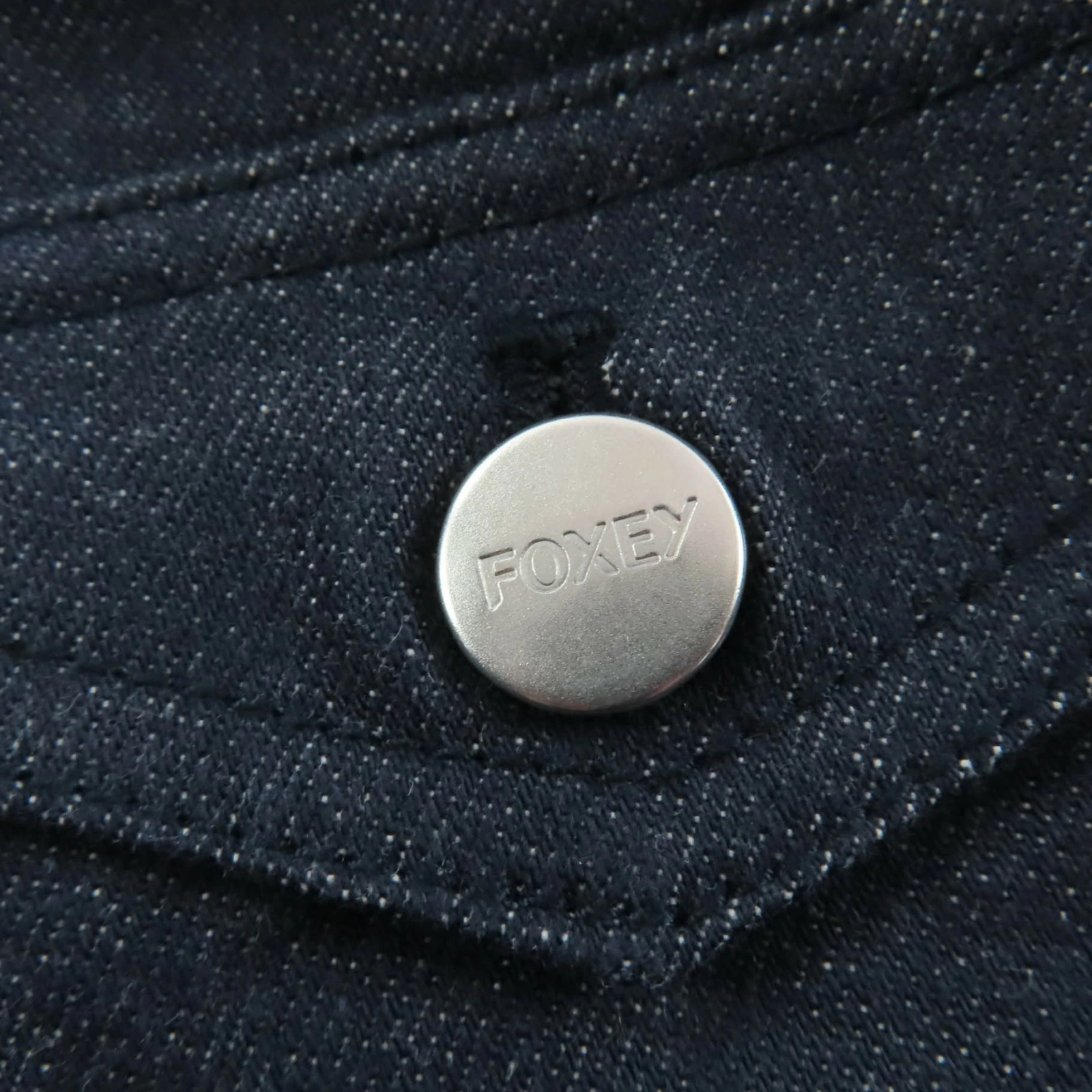 Excellent condition FOXEY NEW YORK 40535 cotton cropped denim jacket in indigo, size 40, made in Japan, authentic, women's [pre-owned]