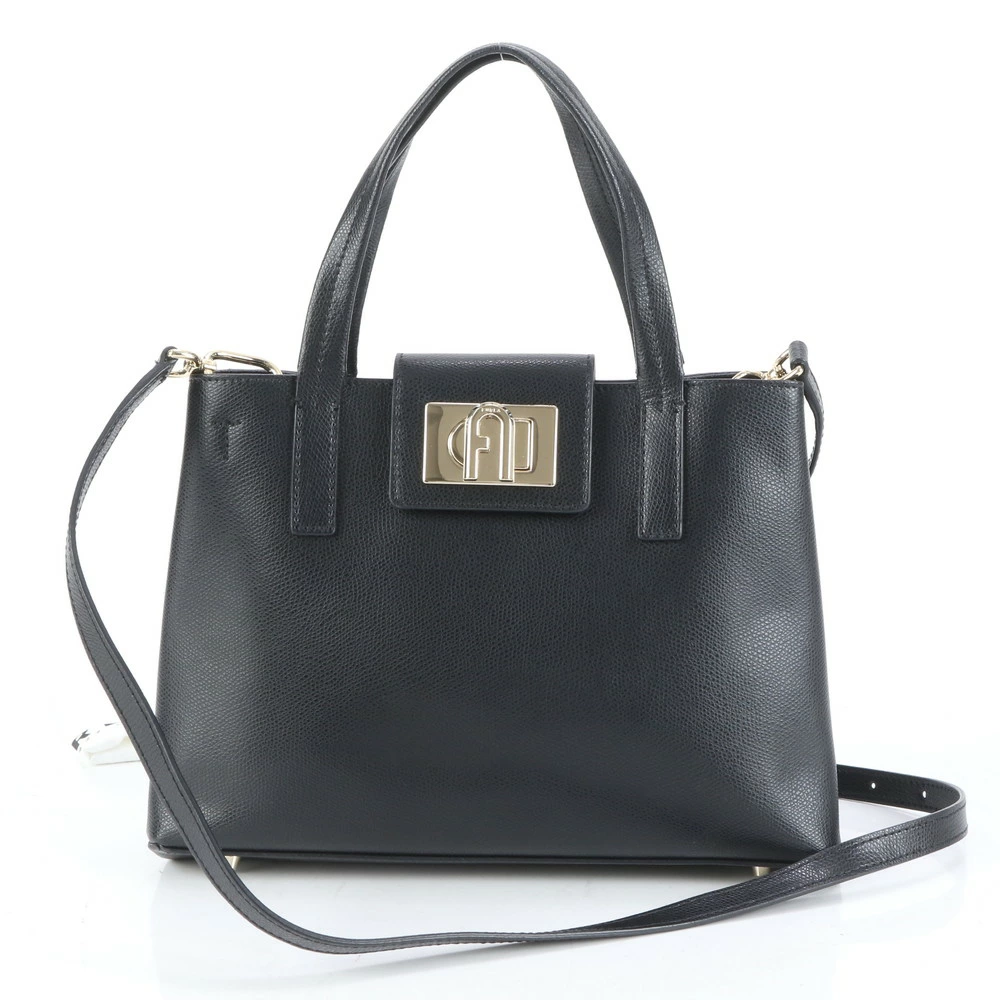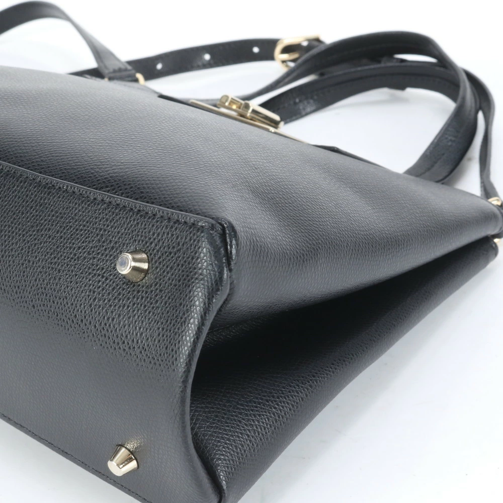 Excellent condition Furla leather 2-way shoulder bag, crossbody bag, handbag, tote bag, black with gold hardware, women's EEE CQ8-3