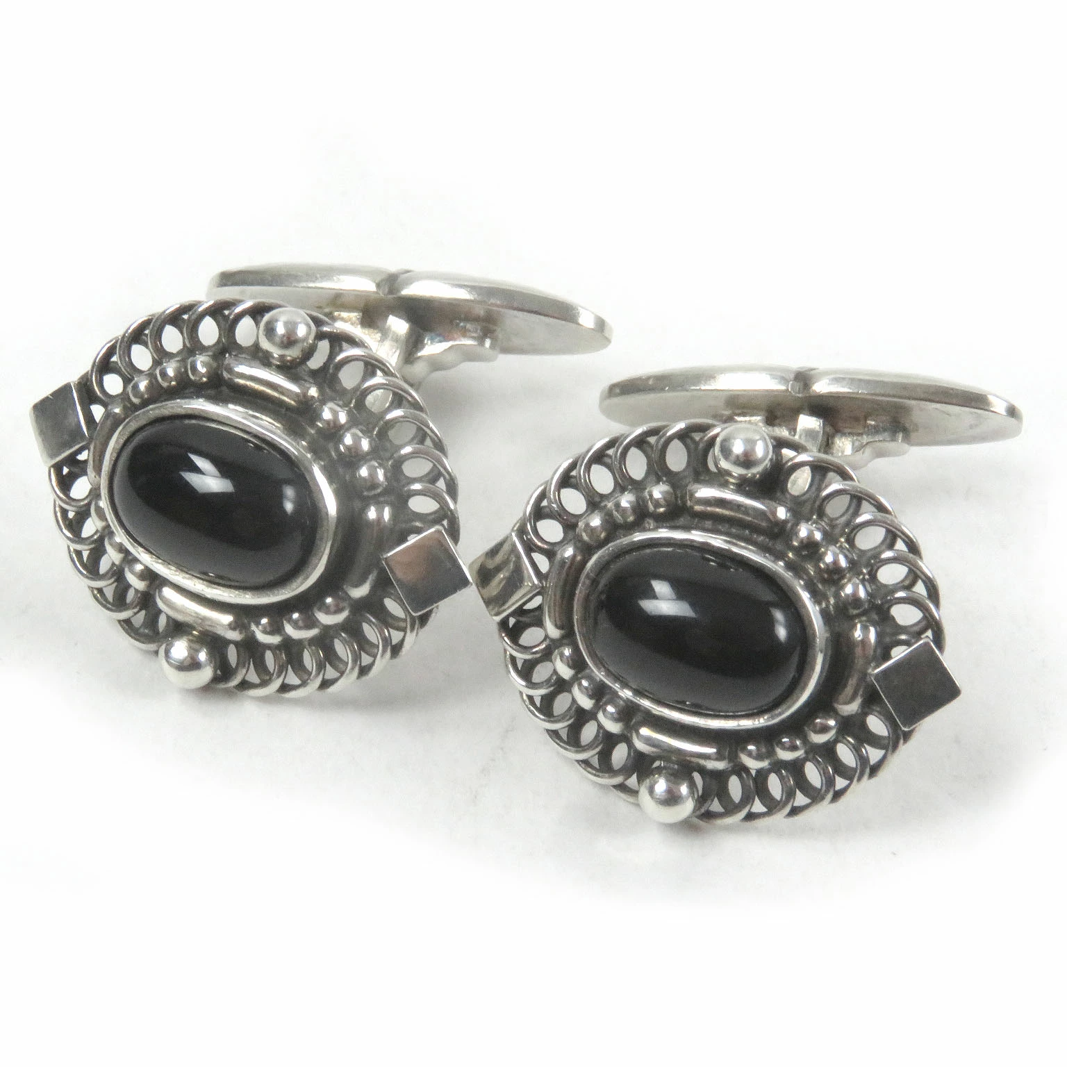 Excellent condition Georg Jensen 19B SV925 onyx cufflinks in silver and black, total weight 15.1g. Recommended for men. [Pre-owned]