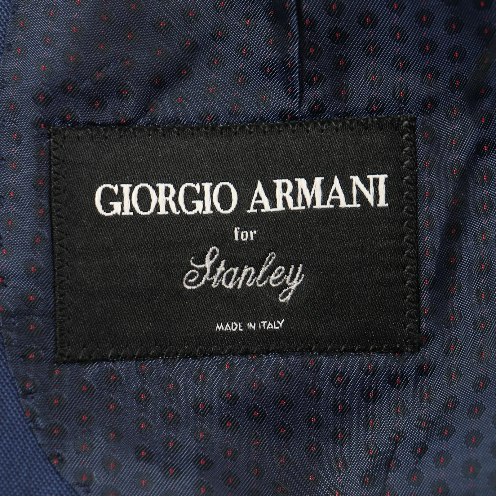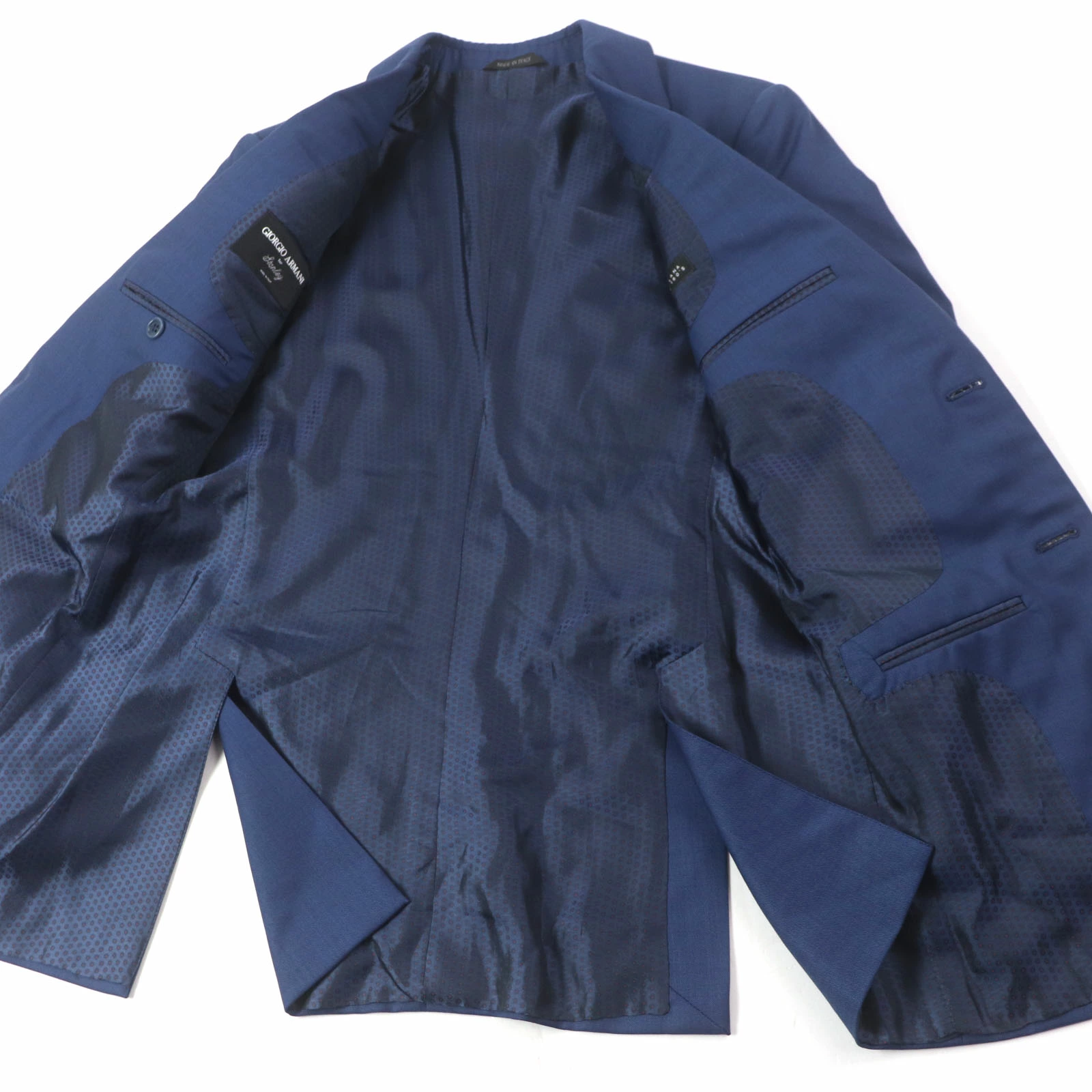 Excellent condition: Giorgio Armani 2020 100% wool single-breasted suit with black tag. Blue, size 44. Authentic, made in Italy. Pre-owned.