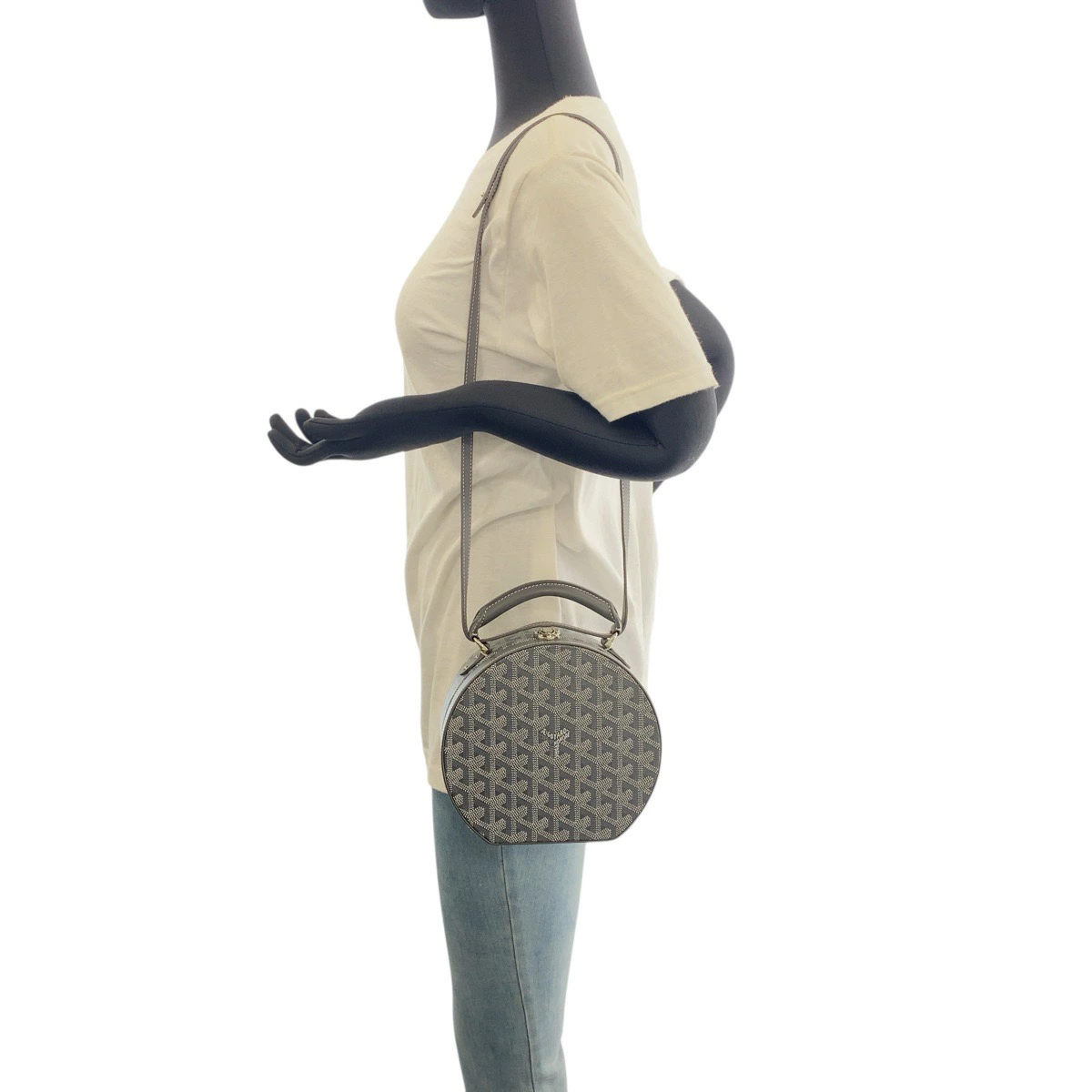 Excellent condition GOYARD Herringbone Hat Box Alto Trunk Bag in PVC and leather. 2-way shoulder bag, vanity bag, and handbag. Women's item number 504138. [Pre-owned]