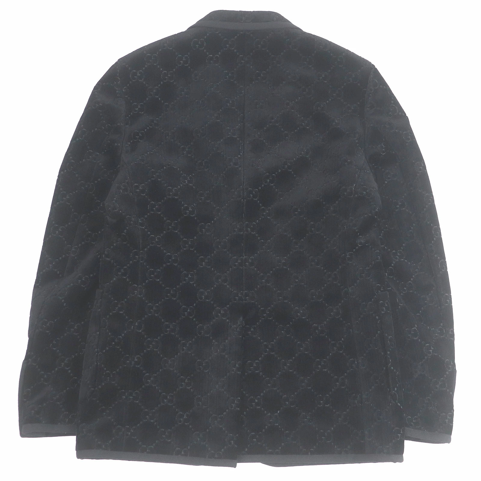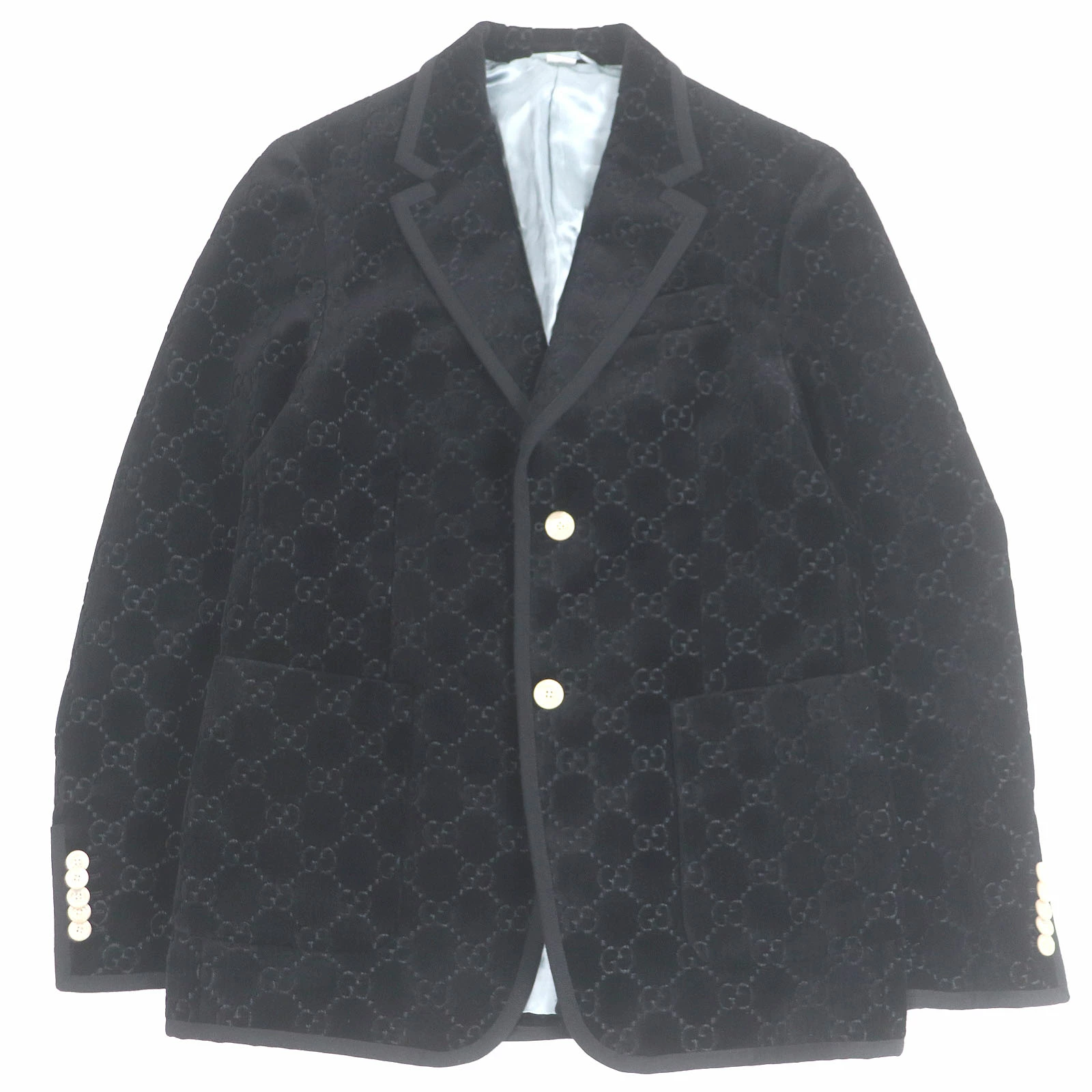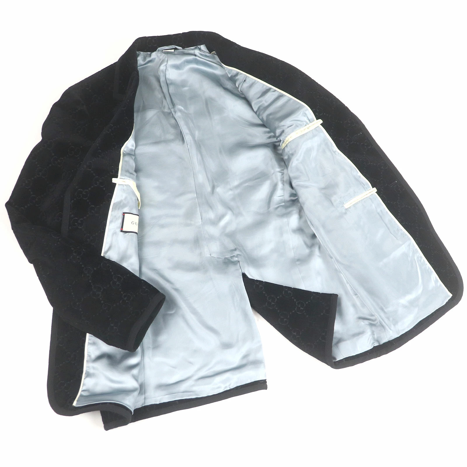 Excellent condition GUCCI 522513 GG logo all-over print single-breasted velour tailored jacket, size 44, black, includes garment hanger and garment storage, made in Italy, authentic, men's [pre-owned]