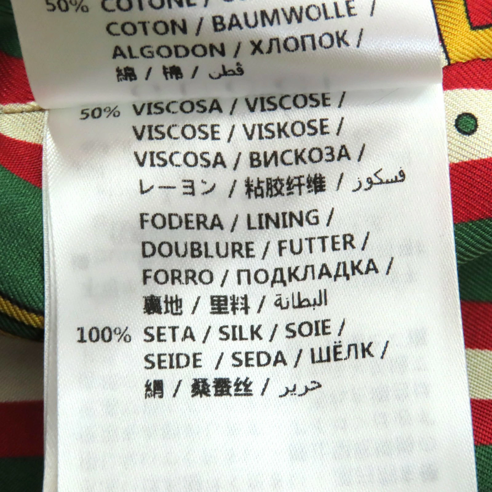| 素材 (material) | 表地:ビスコース97% :レーヨン3% 一部:ポリエステル100% :コットン50% :レーヨン50% 裏地:シルク100% | ||||||||||||||||