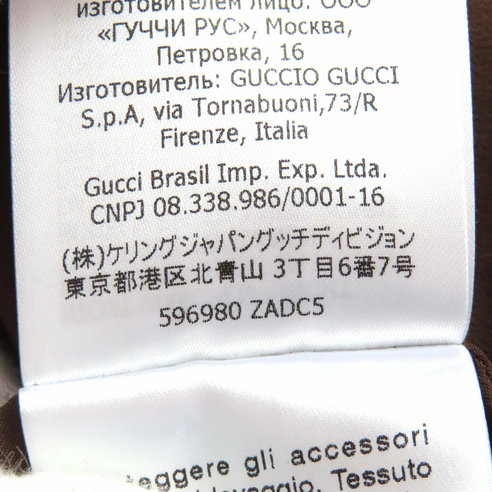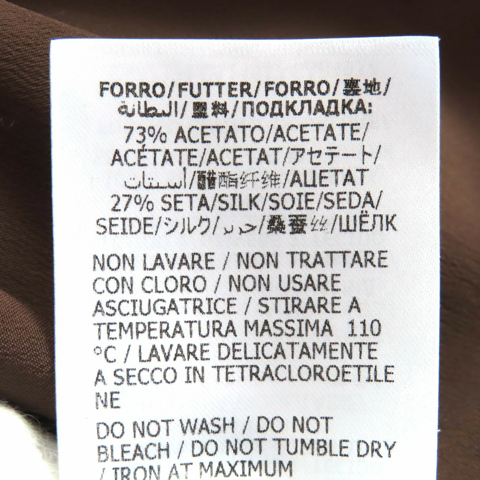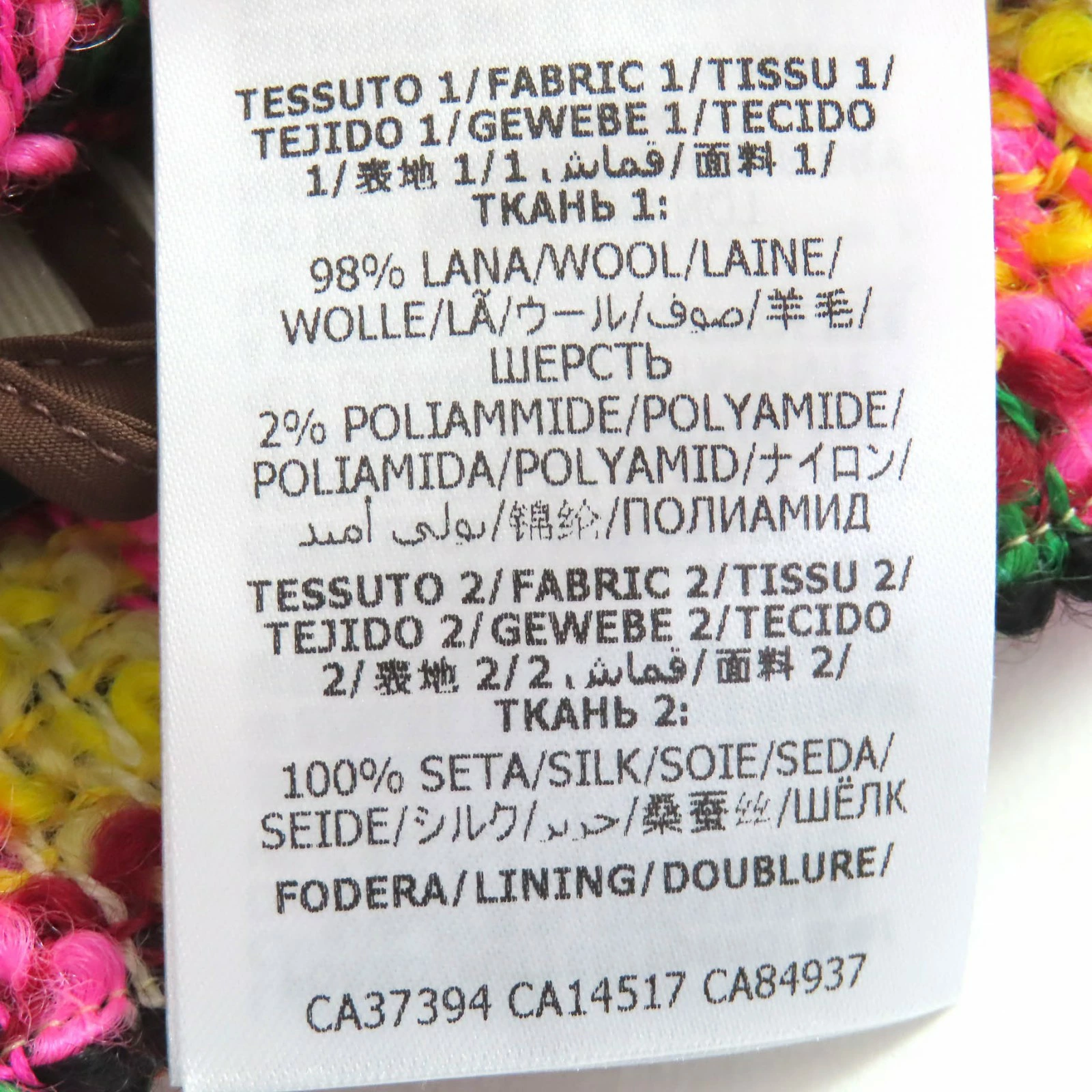 | 素材 (material) | 表地:ウール98% :ナイロン2% :シルク100% 裏地:アセテート73% :シルク27% | ||||||||||||||||