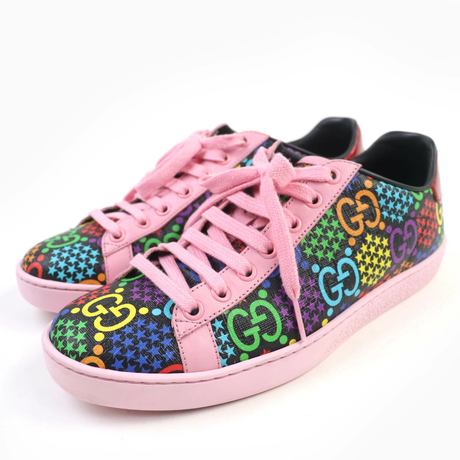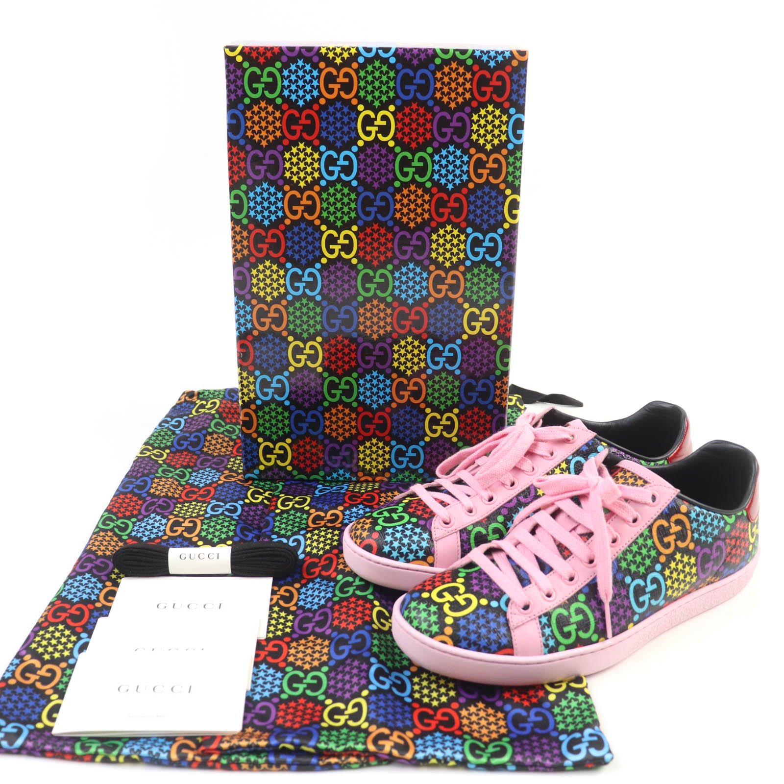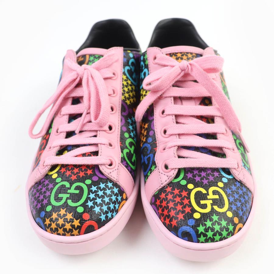 Excellent condition GUCCI 610086 GG Psychedelic Leather Low-Top Sneakers, Multicolor, Size 36.5, Made in Italy, with box and dust bag. Pre-owned.