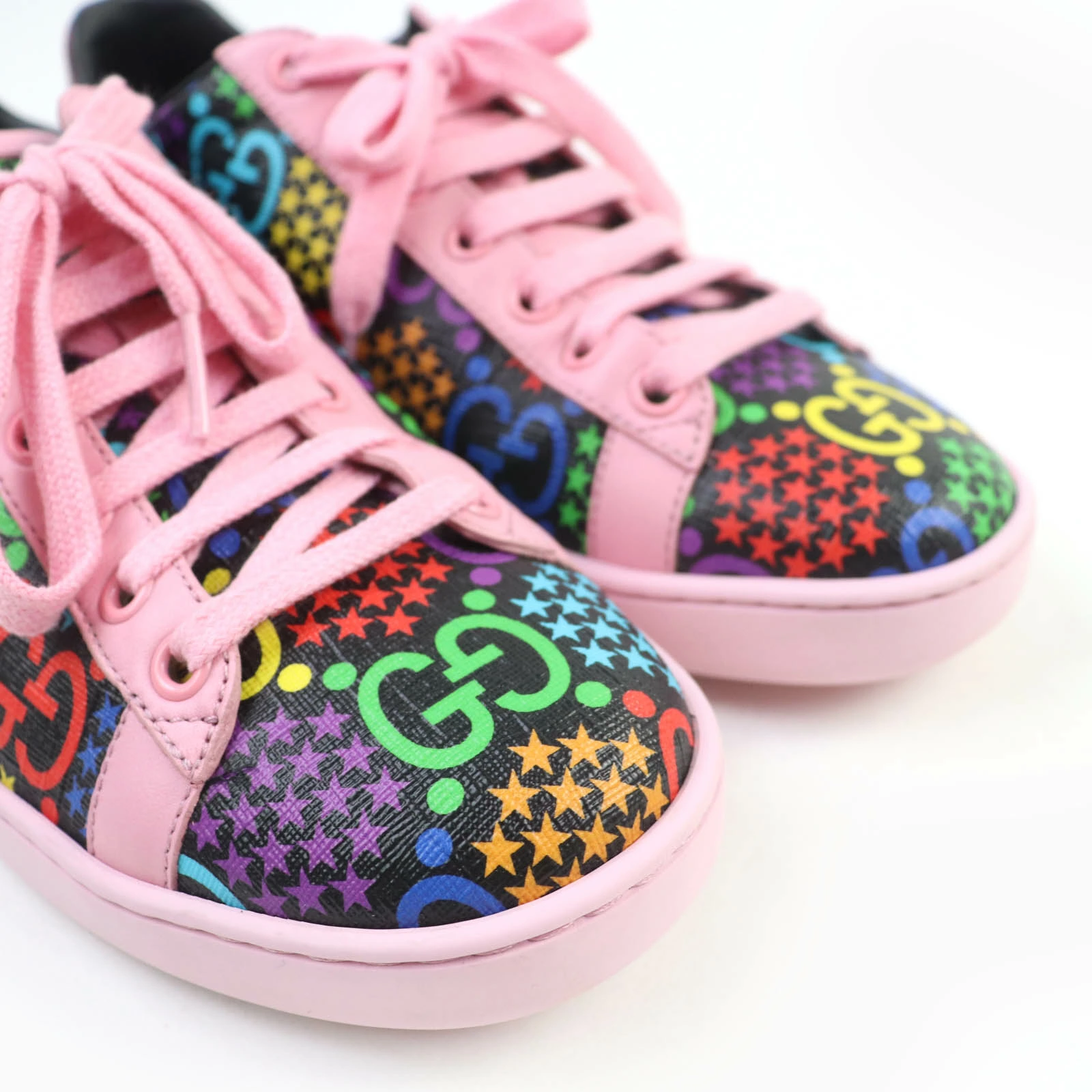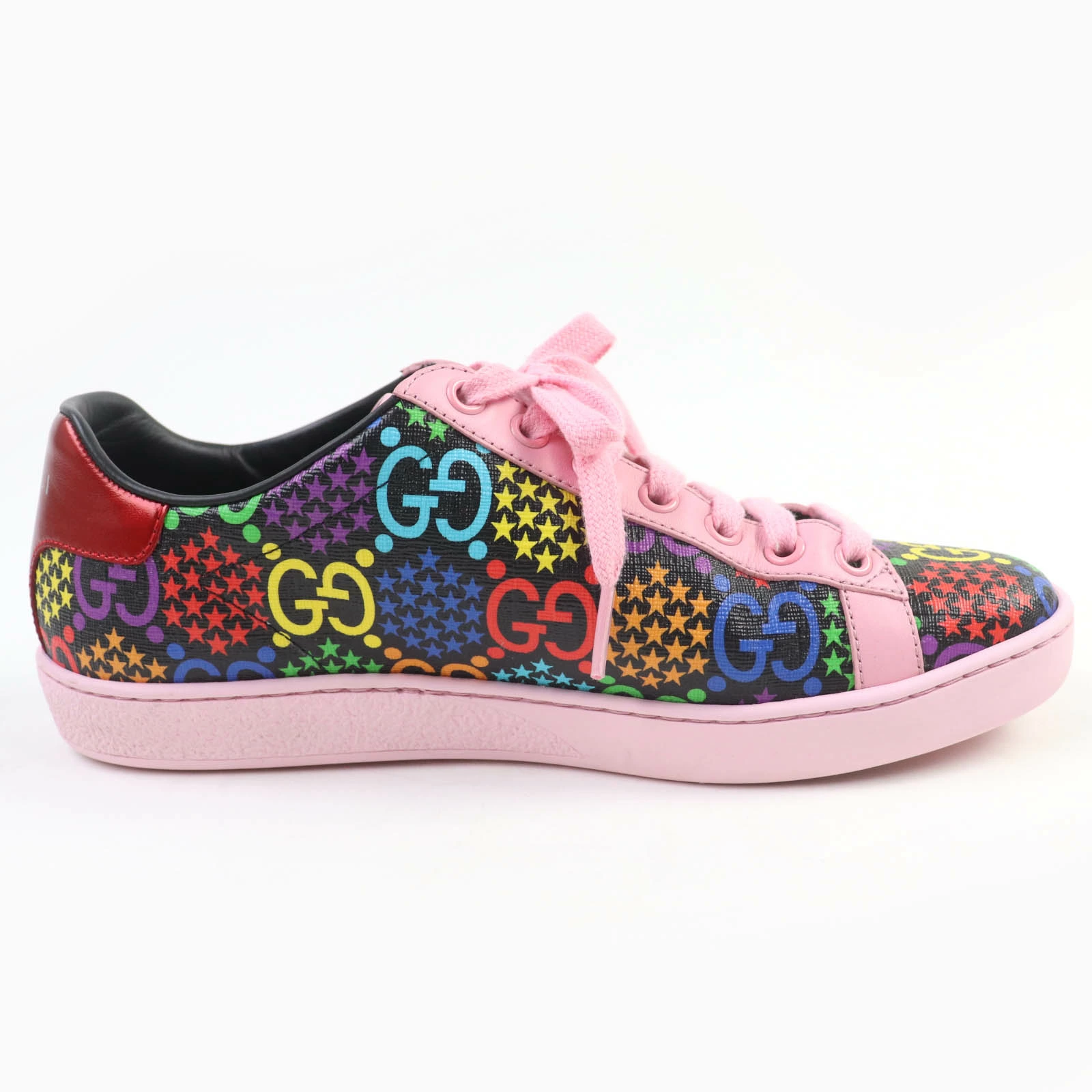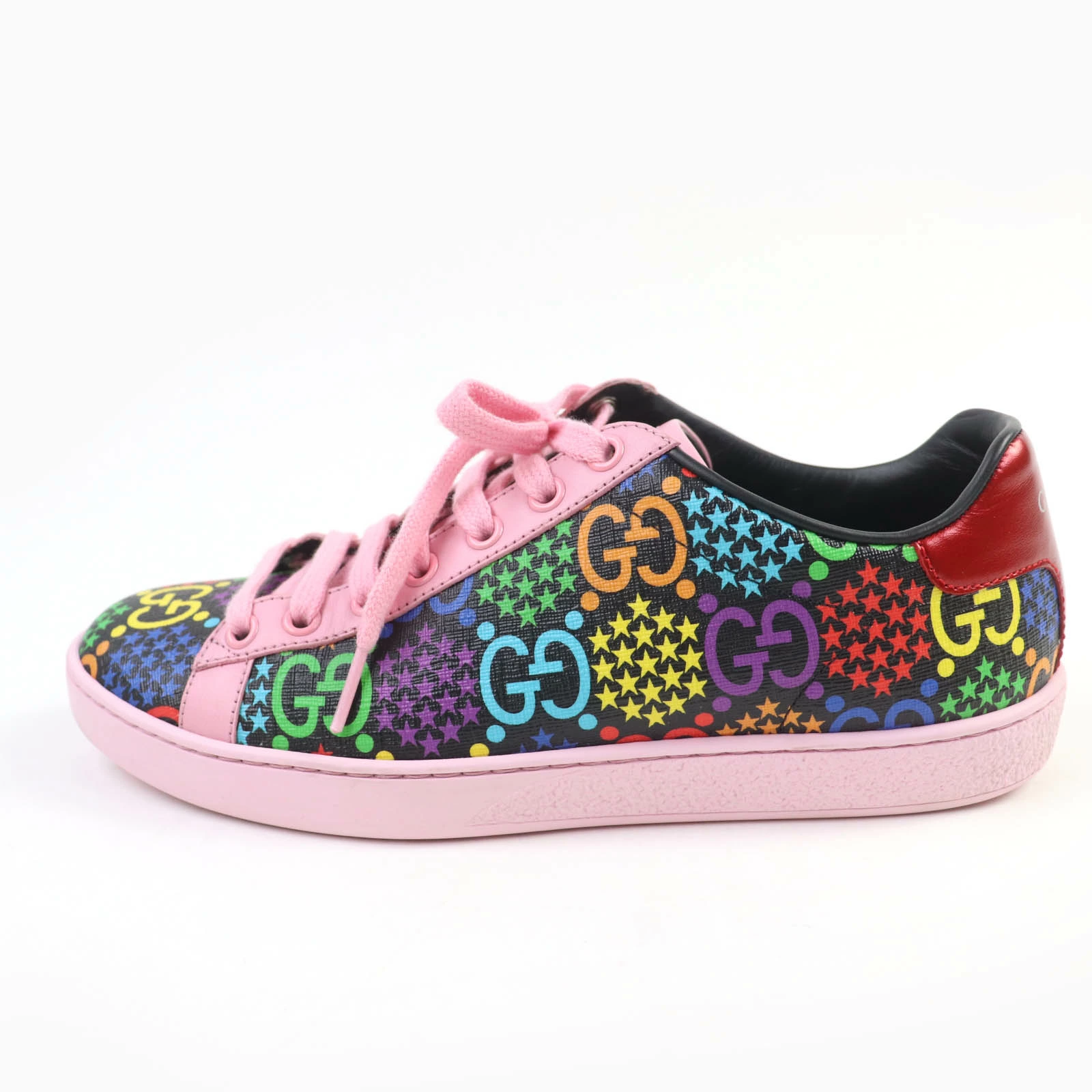 Excellent condition GUCCI 610086 GG Psychedelic Leather Low-Top Sneakers, Multicolor, Size 36.5, Made in Italy, with box and dust bag. Pre-owned.