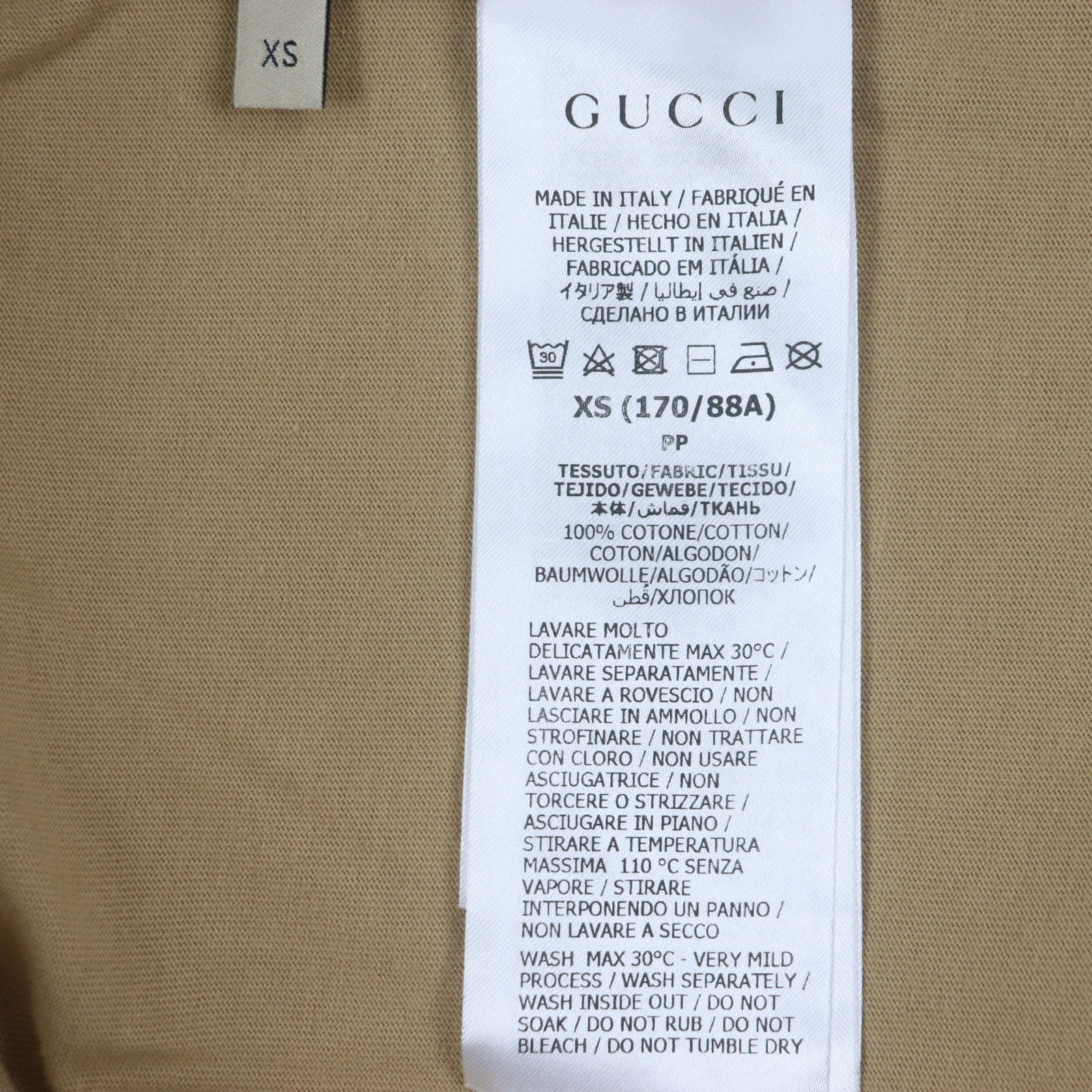 Excellent condition: GUCCI 771758 100% cotton GG logo print crew neck short sleeve T-shirt, brown, size XS, made in Italy, authentic, men's [pre-owned]
