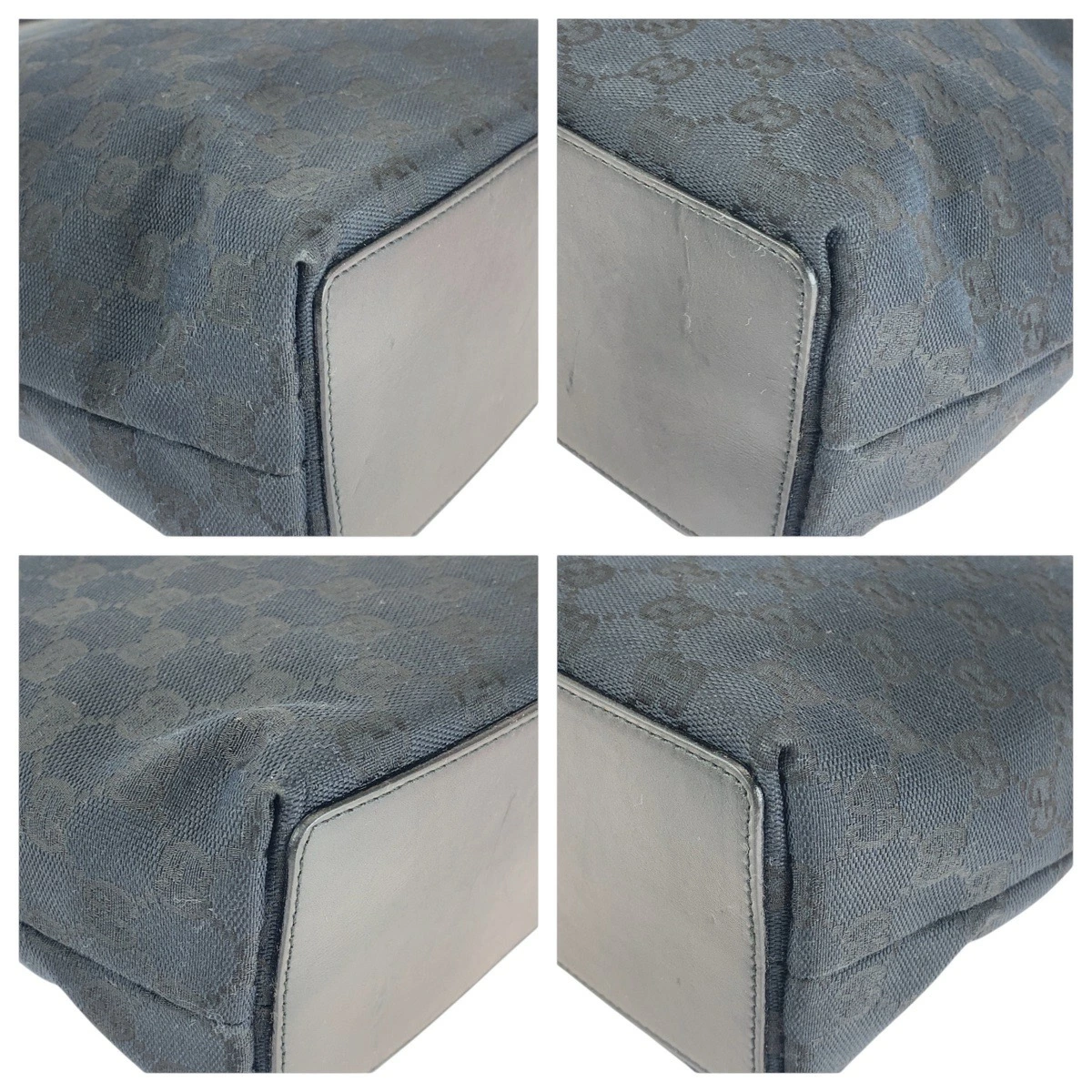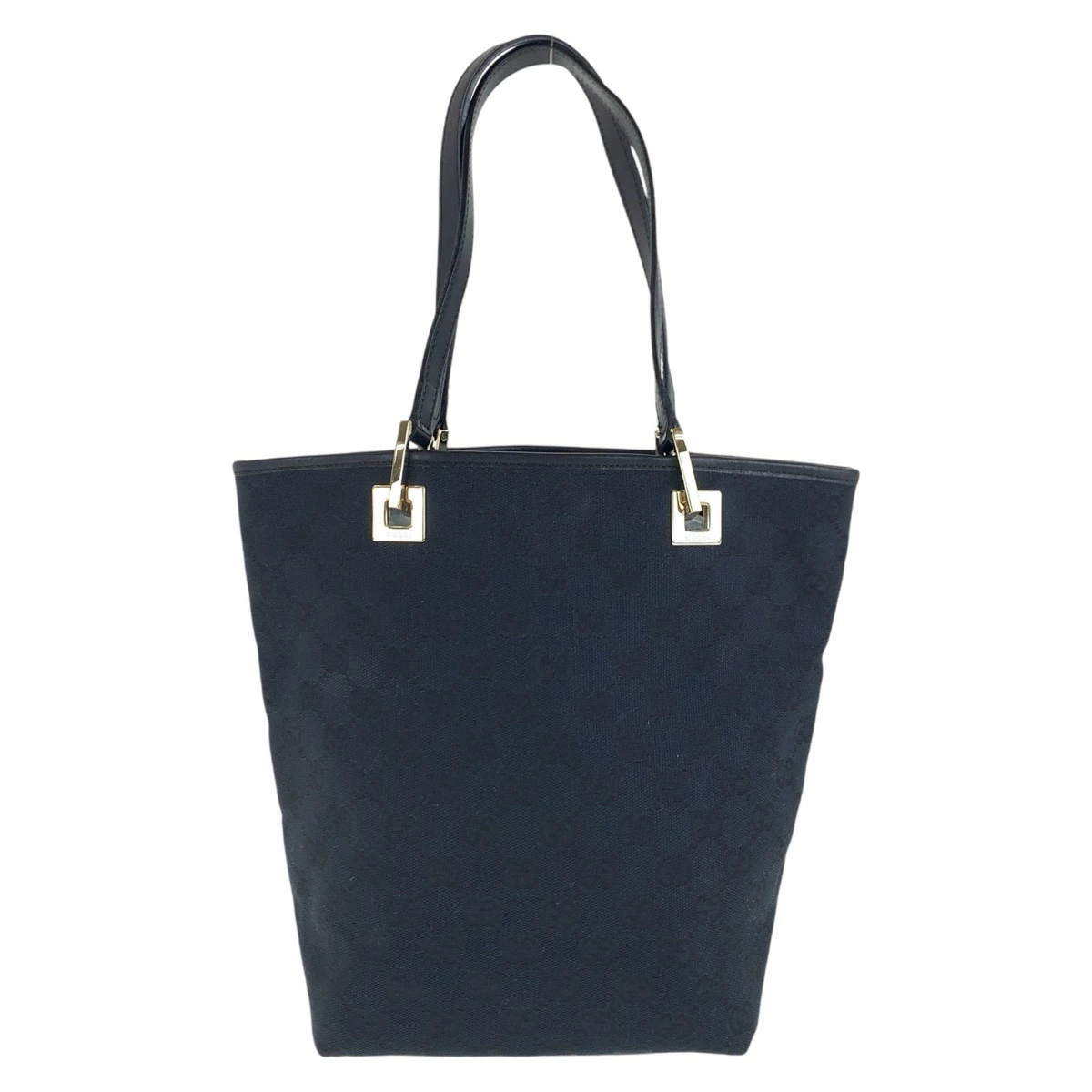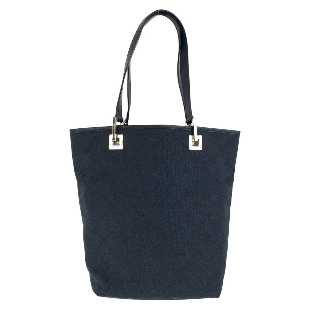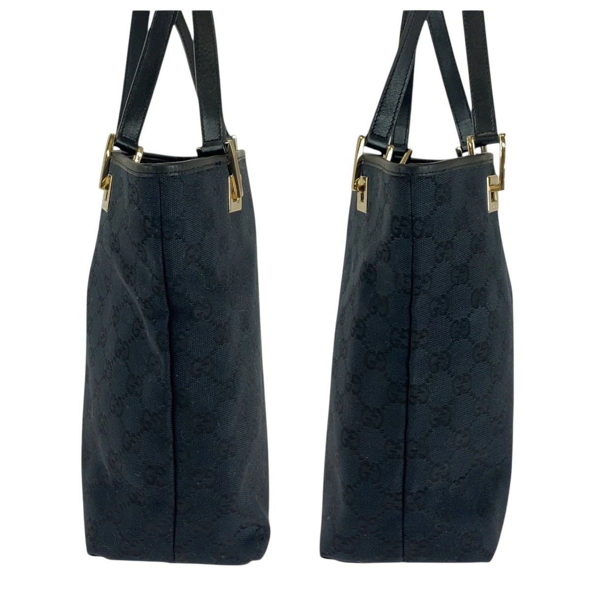 Excellent condition GUCCI black GG canvas/leather tote bag with gold hardware, 506099 (002 1099) for women.