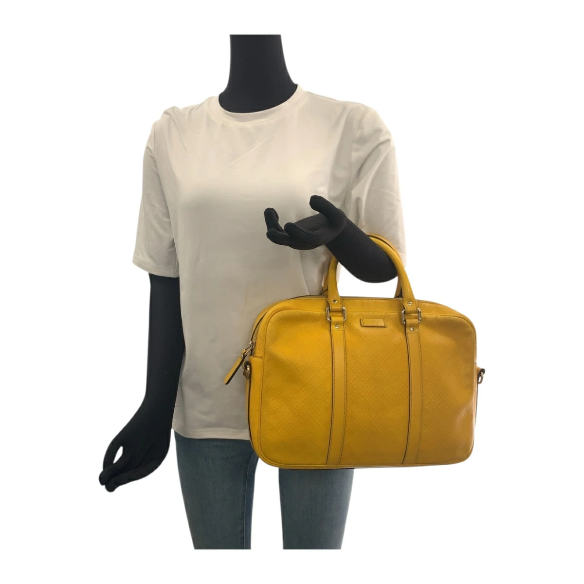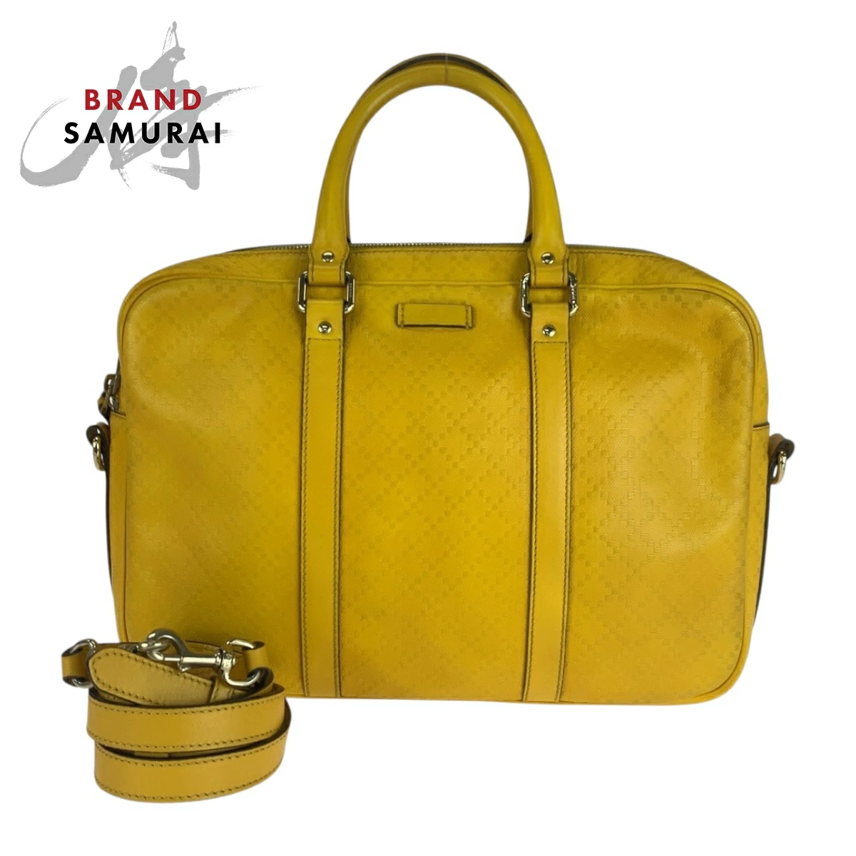 Excellent condition GUCCI Diamante Yellow Leather Shoulder Bag with Silver Hardware, 344357, Men's Briefcase, 505142 [Pre-owned]