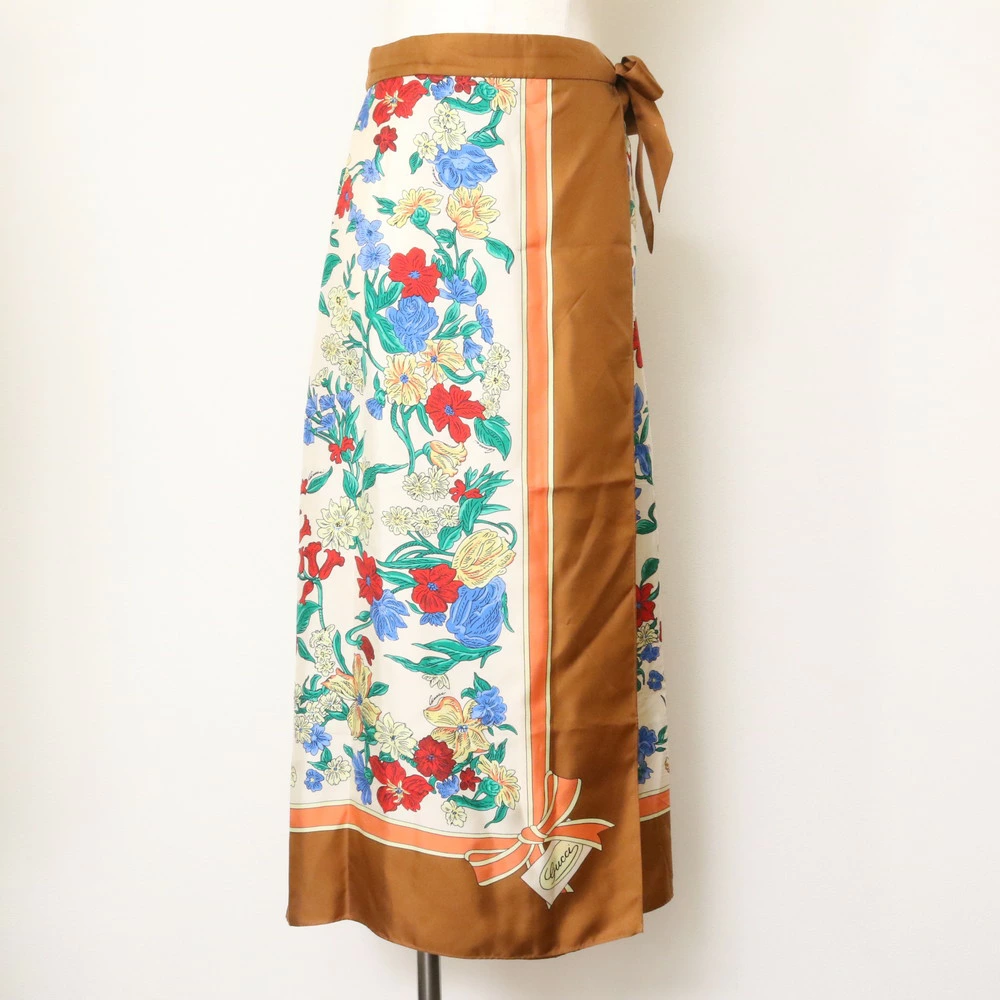 Excellent condition Gucci floral print silk wrap skirt, size 42. Stylish floral bottoms for women. MMM BP8-8.