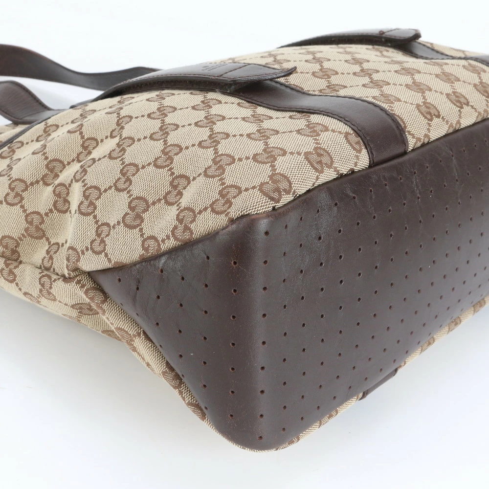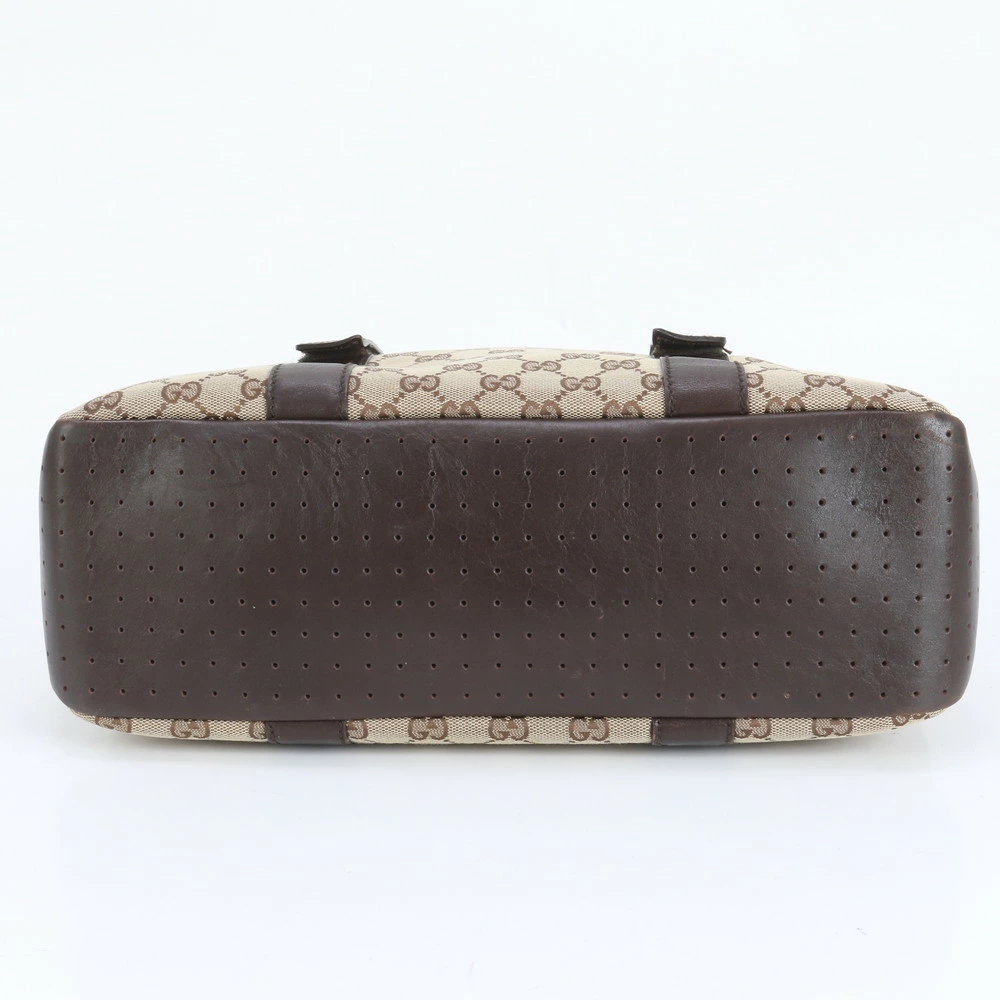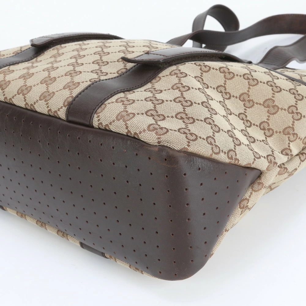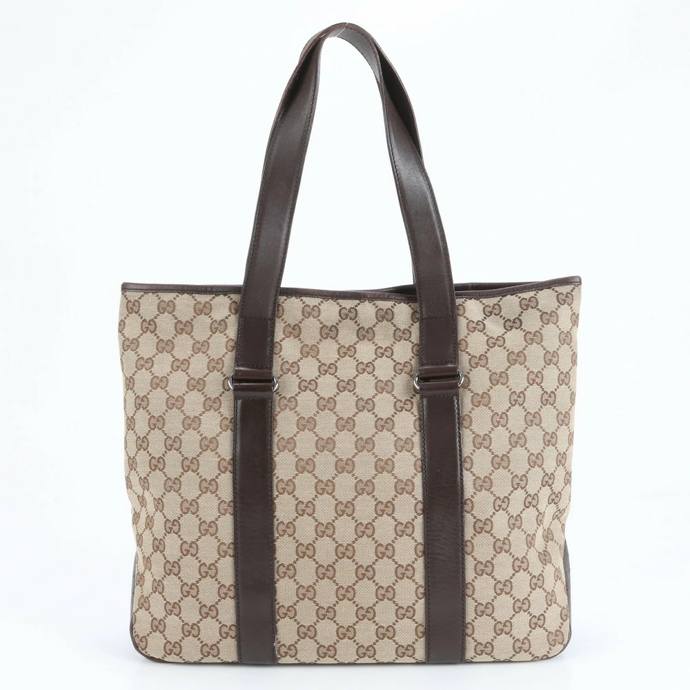 Excellent condition Gucci GG canvas and leather tote bag (145971), brown, suitable for business, commuting, and A4 size, men's, ERE CV32-1.