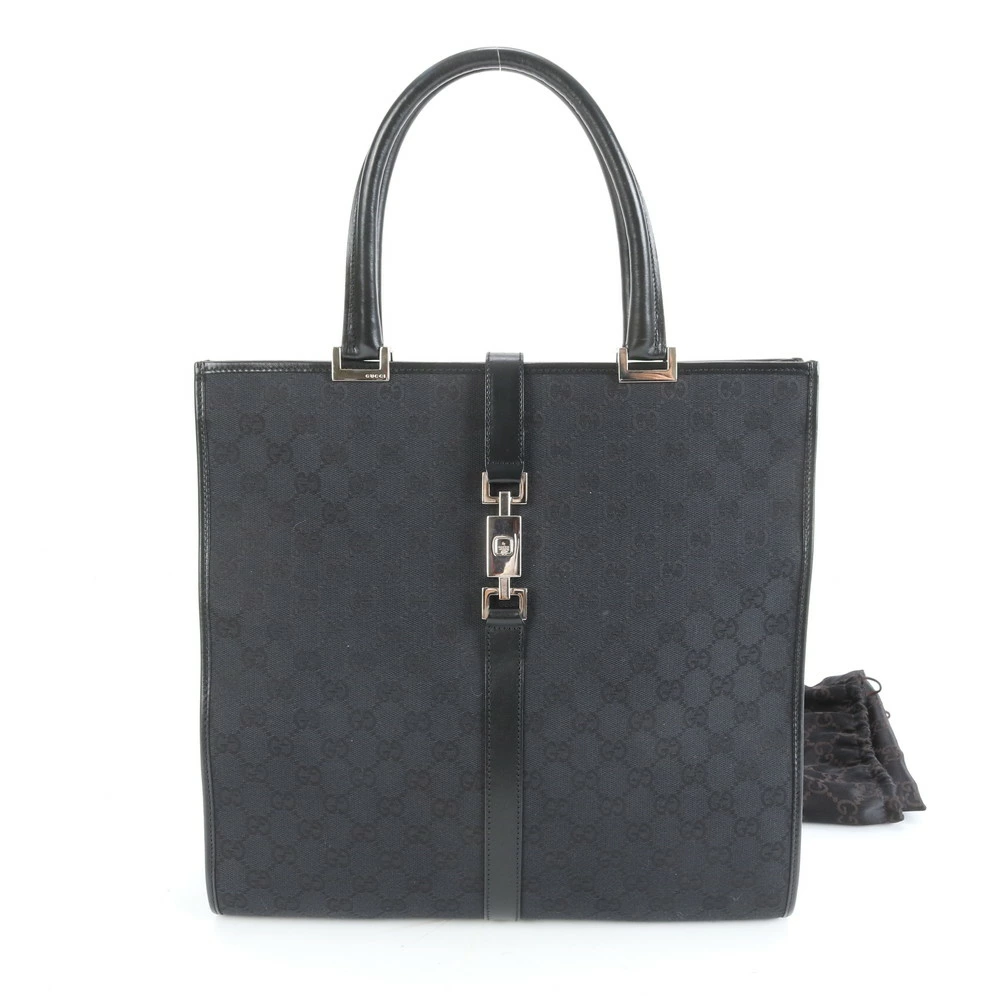 Excellent condition Gucci GG canvas Jackie leather tote bag, shoulder bag, size 002-1064, black, A4, women's, EUE DB41-5