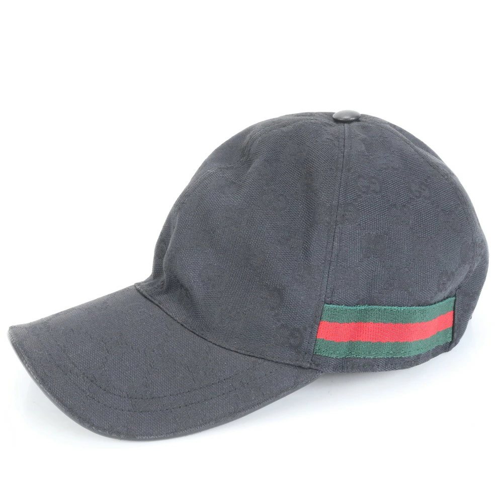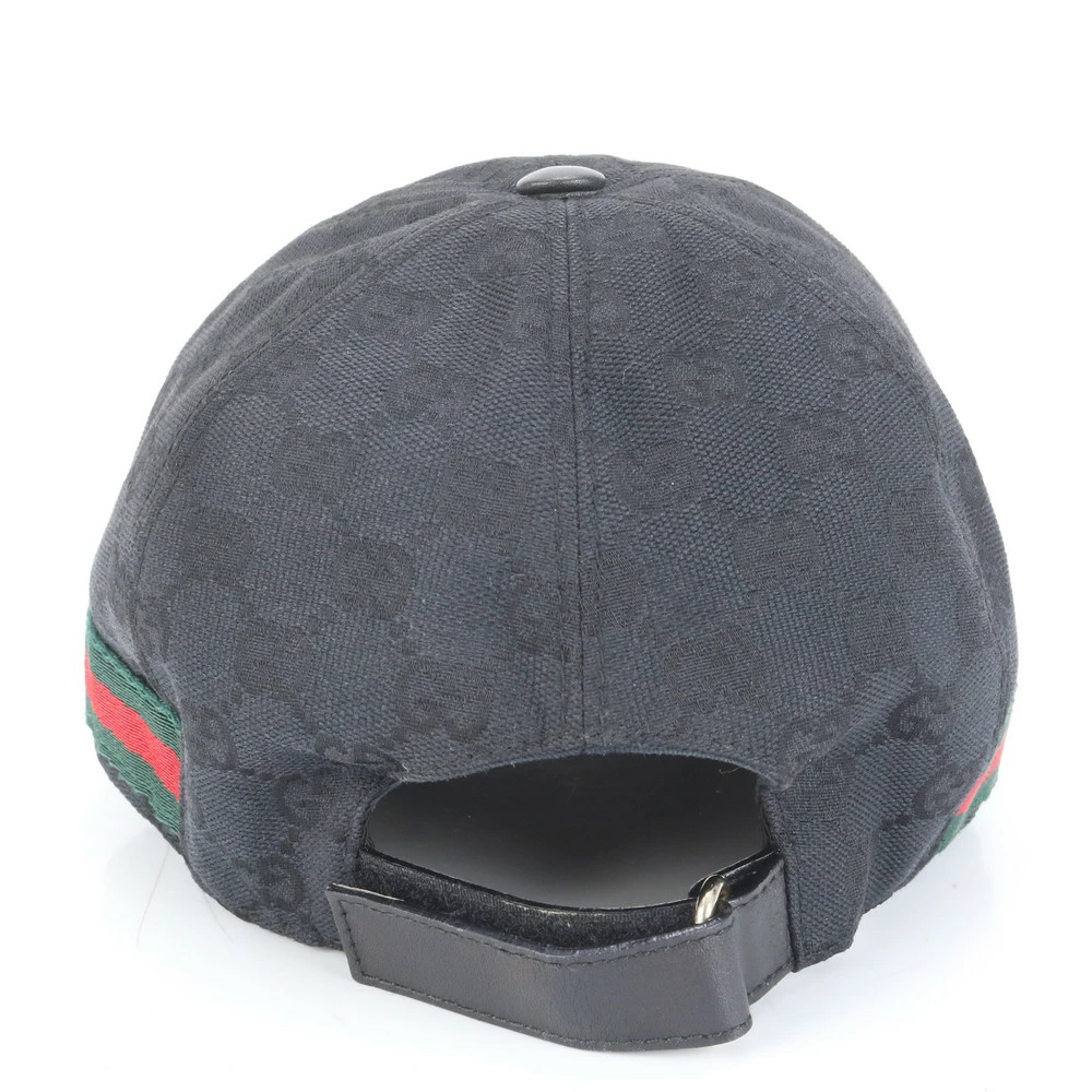Excellent condition Gucci GG canvas Sherry line baseball cap, black leather, men's RUE CP34-9