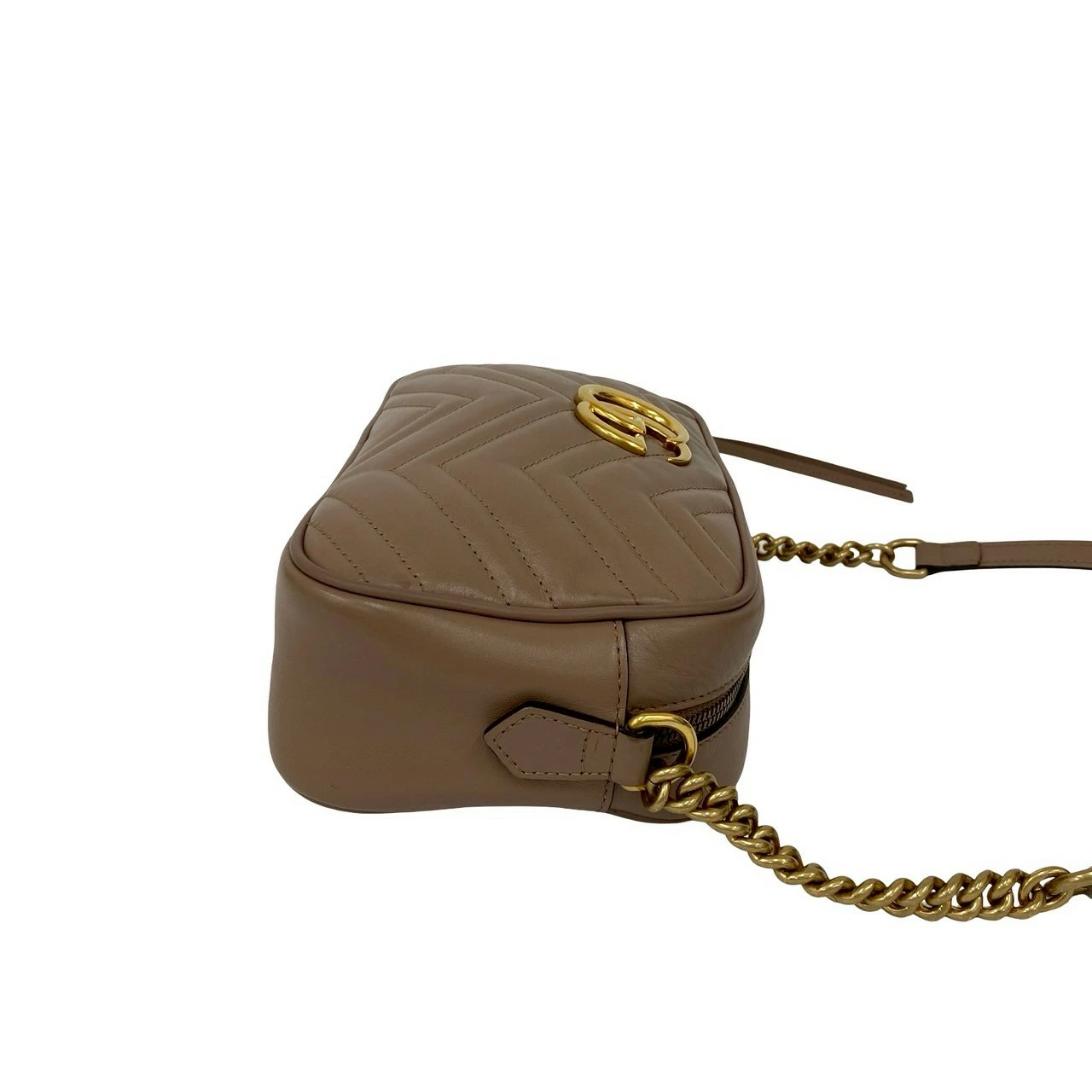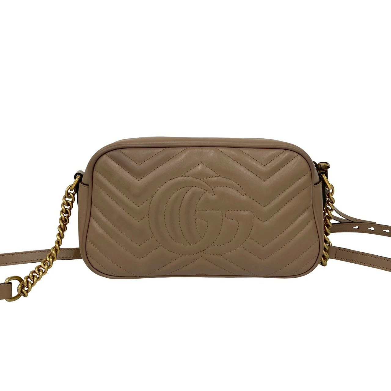 Excellent condition GUCCI GG Marmont quilted leather shoulder bag with chain strap, pink beige, 28112 (pre-owned)