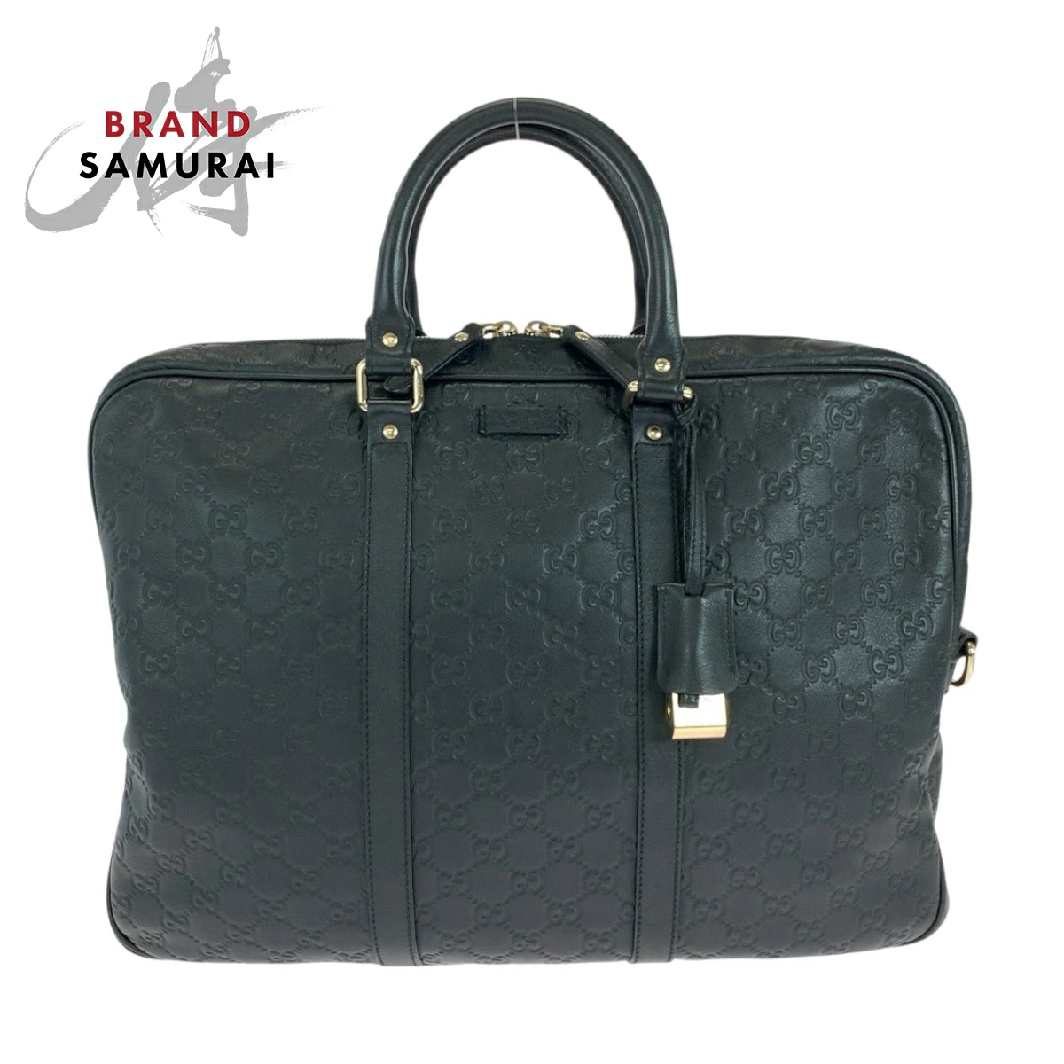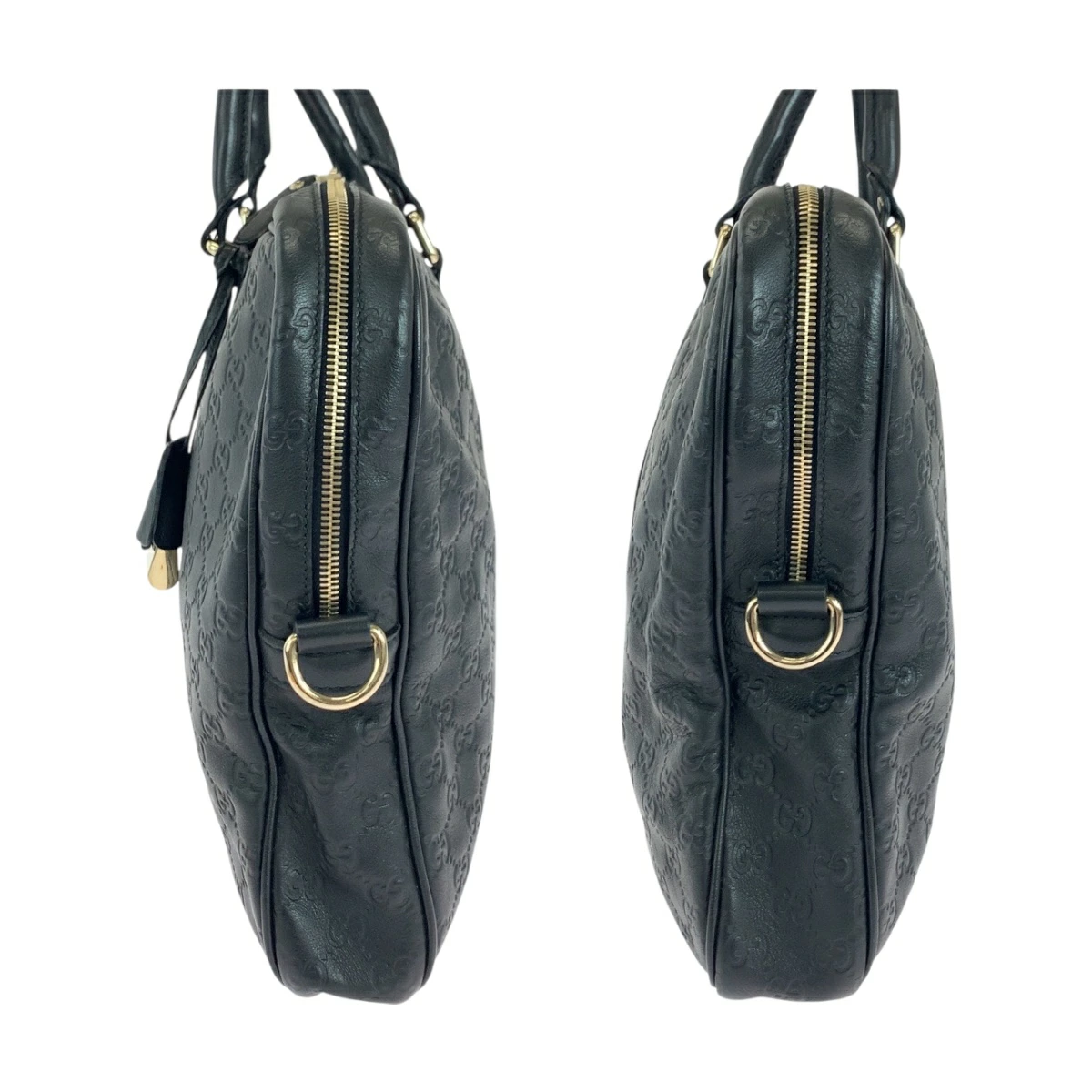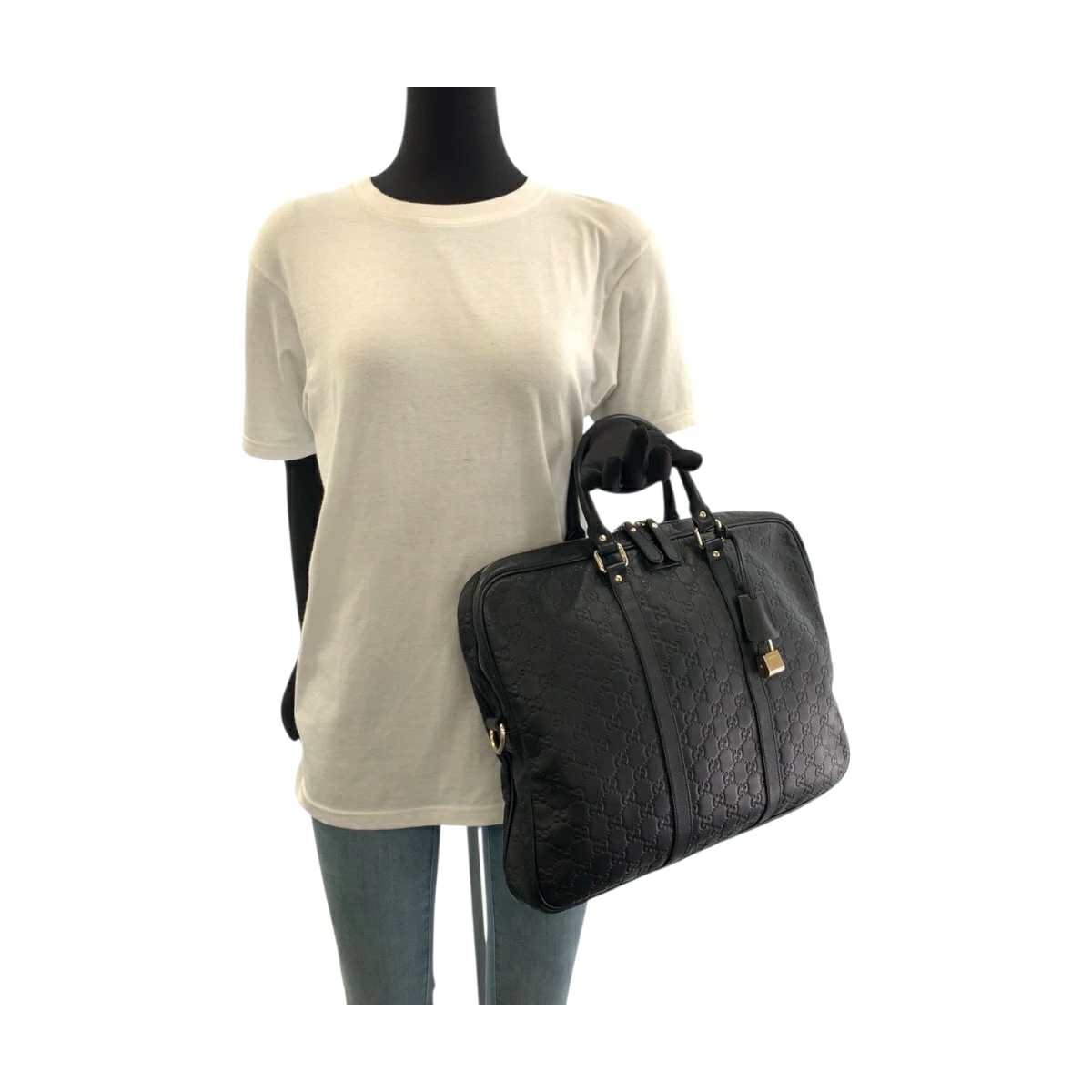 Excellent condition GUCCI Guccissima black leather handbag with gold hardware, model 201480, men's business bag, item number 504604 (pre-owned)