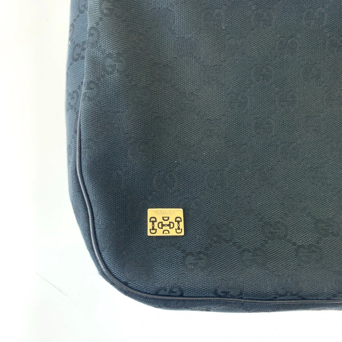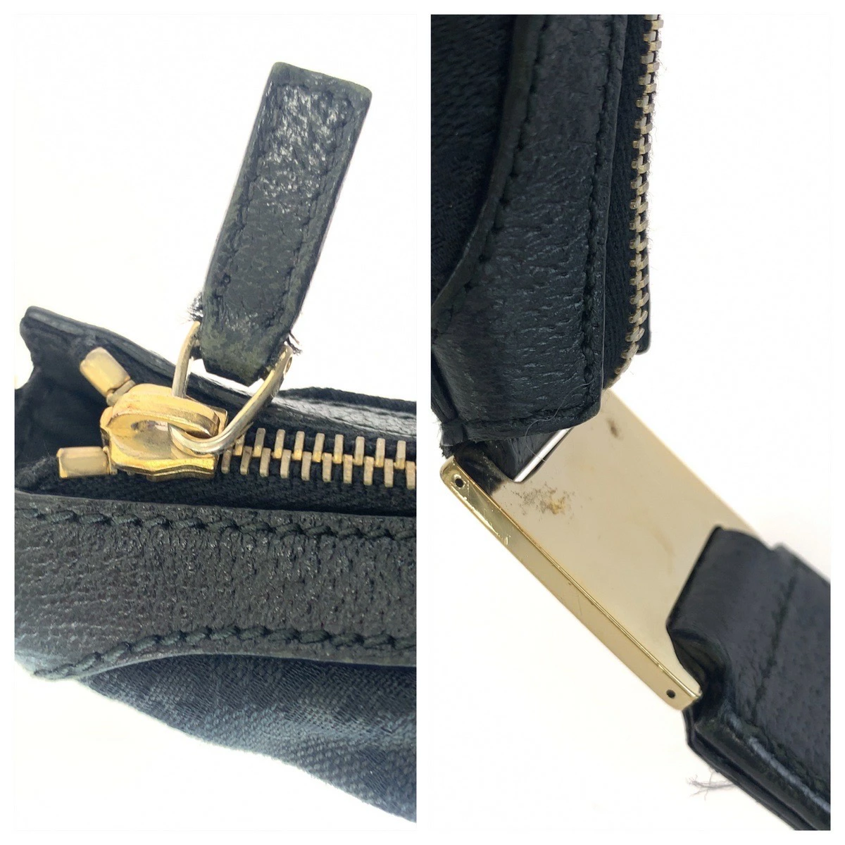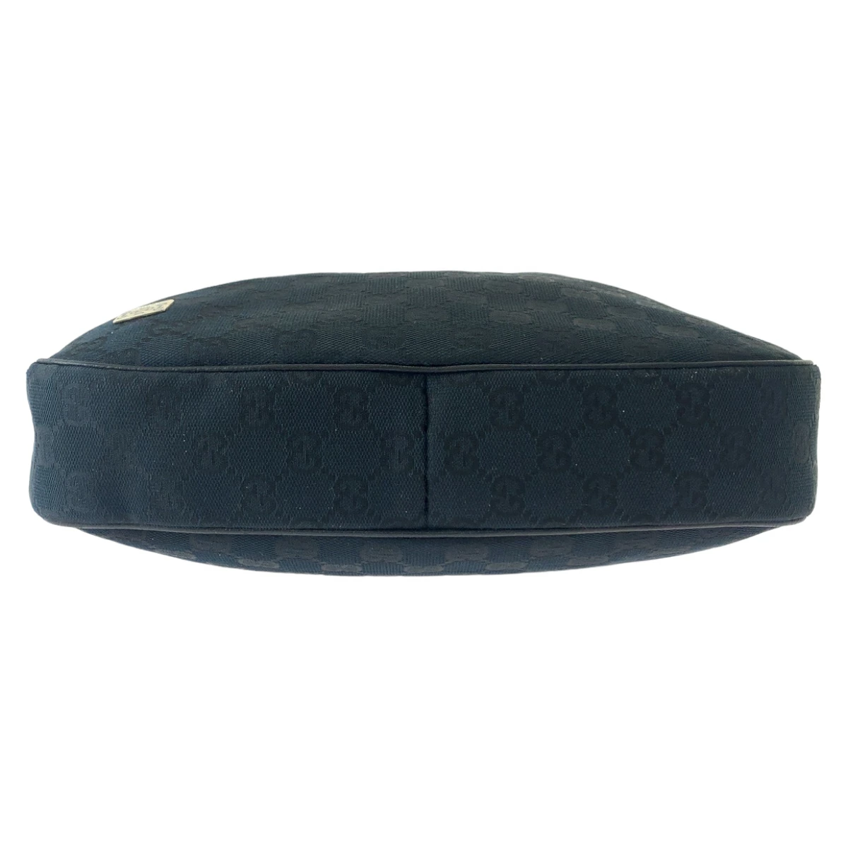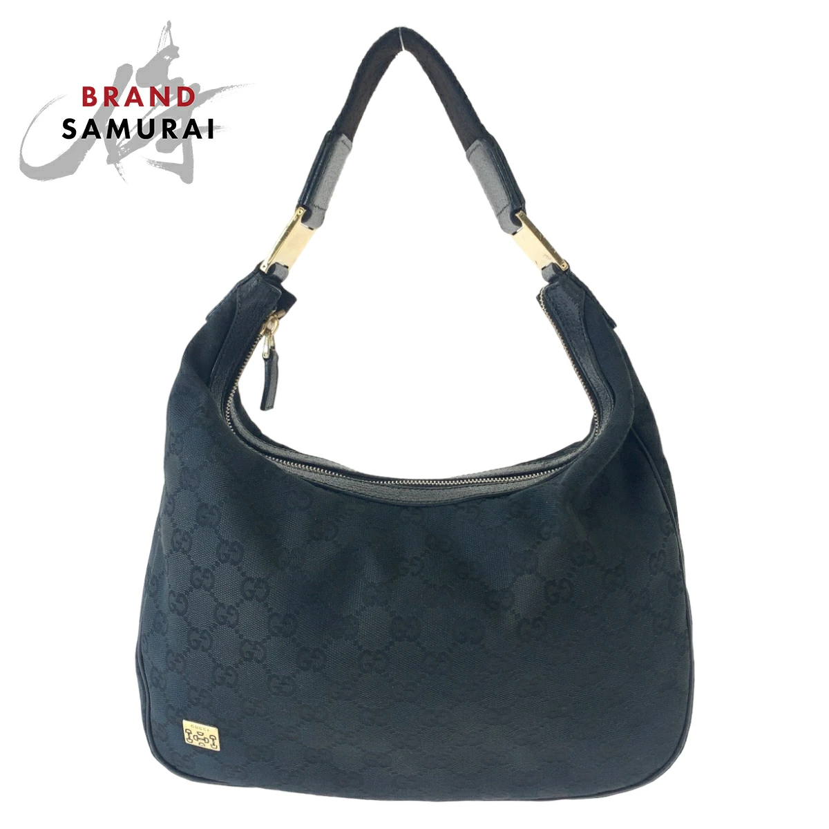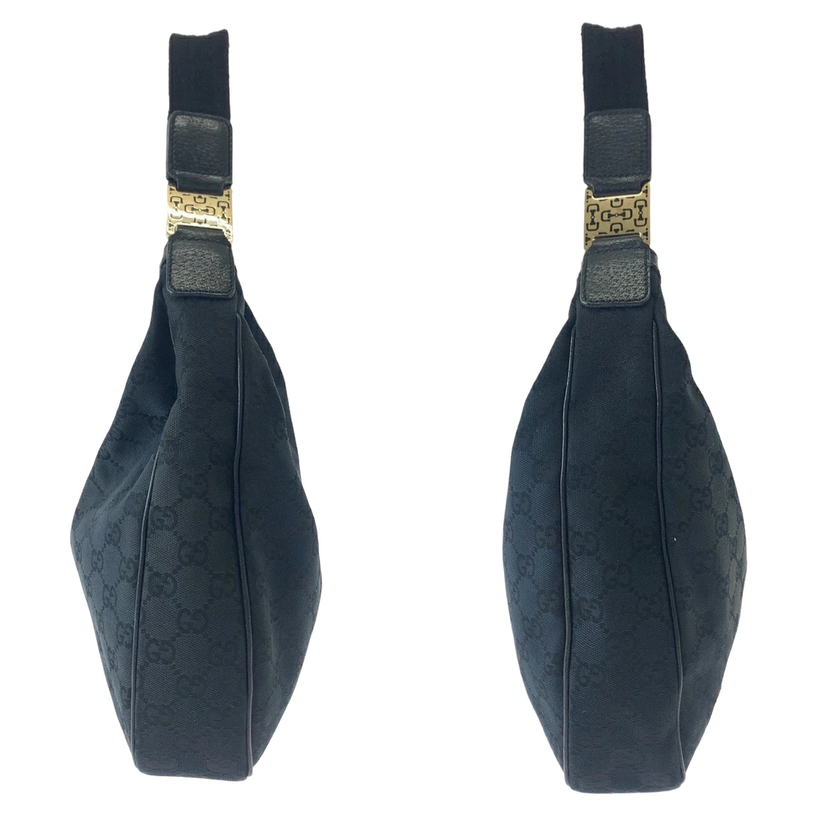 Excellent condition GUCCI Hobo bag in black with silver hardware, GG canvas and leather, 145757, women's shoulder bag, 504709 [pre-owned]