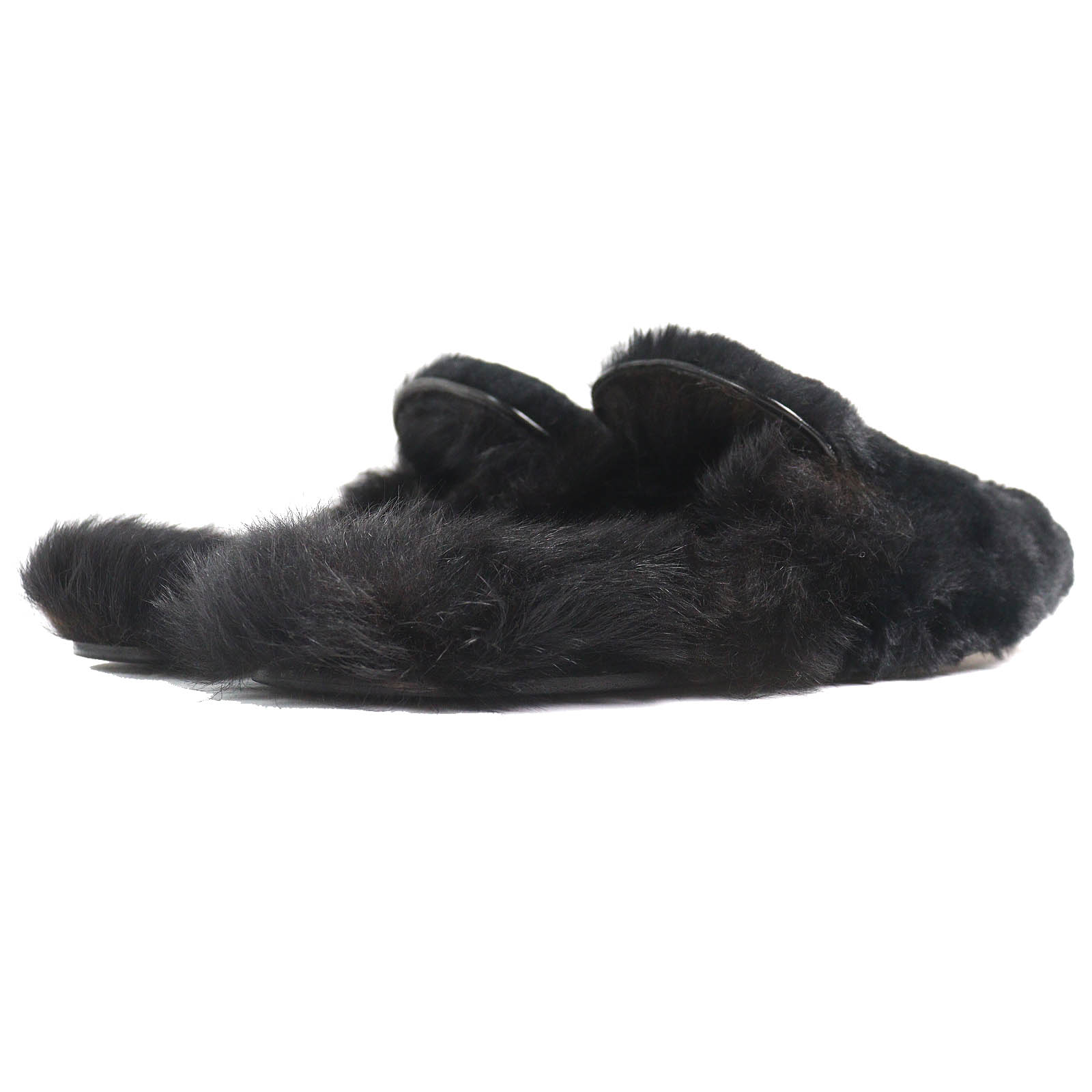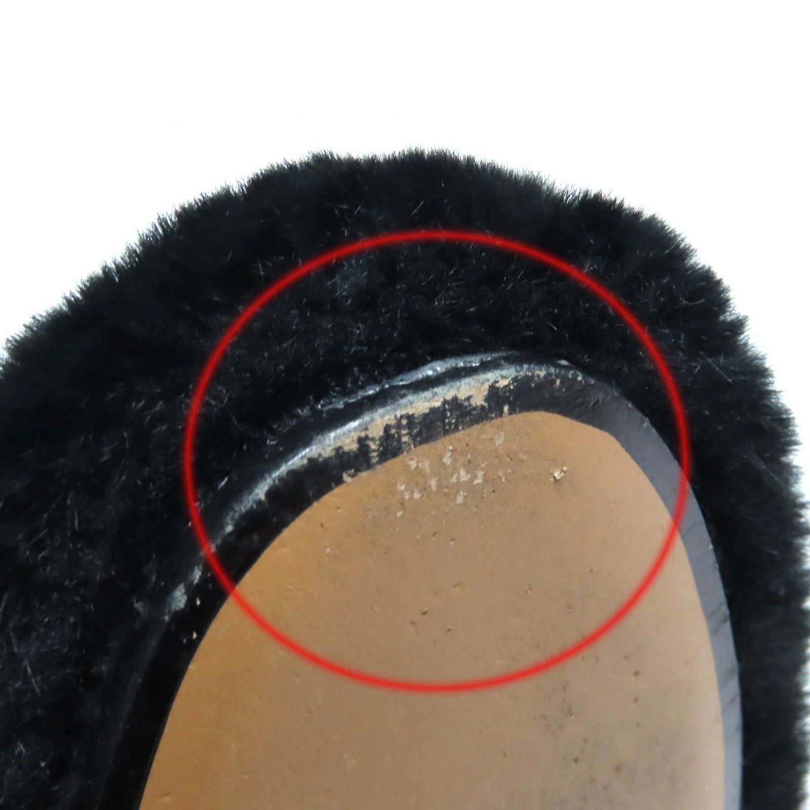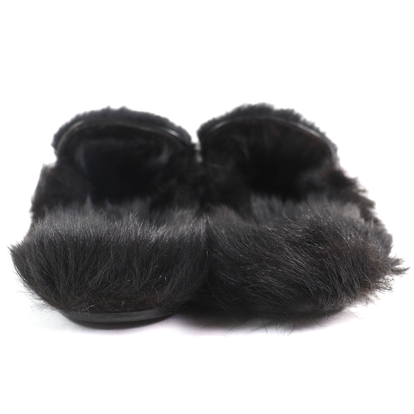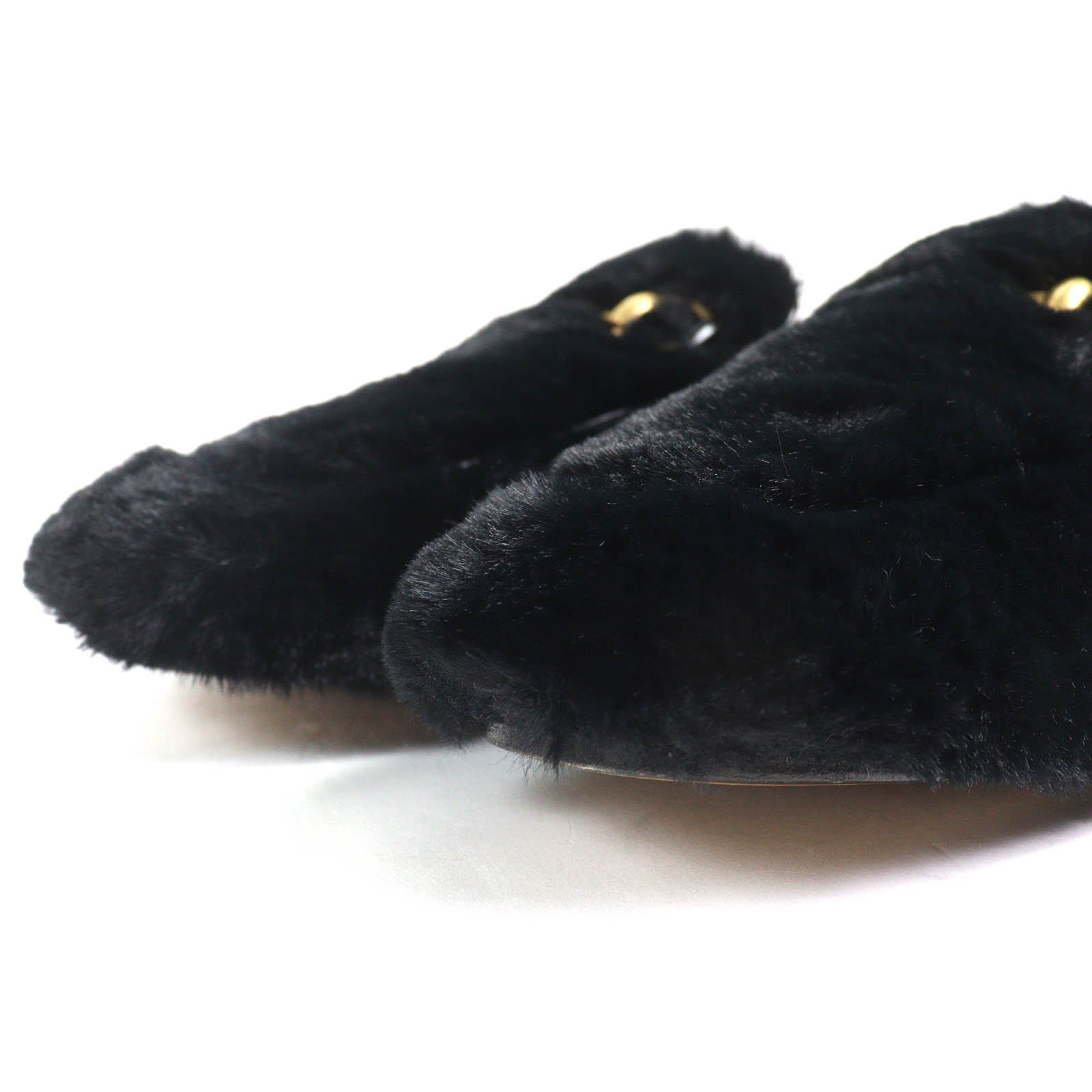Excellent condition: GUCCI Horsebit leather and fur mule slippers, black and gold, size 6, with box and dust bag, made in Italy, men's [pre-owned]