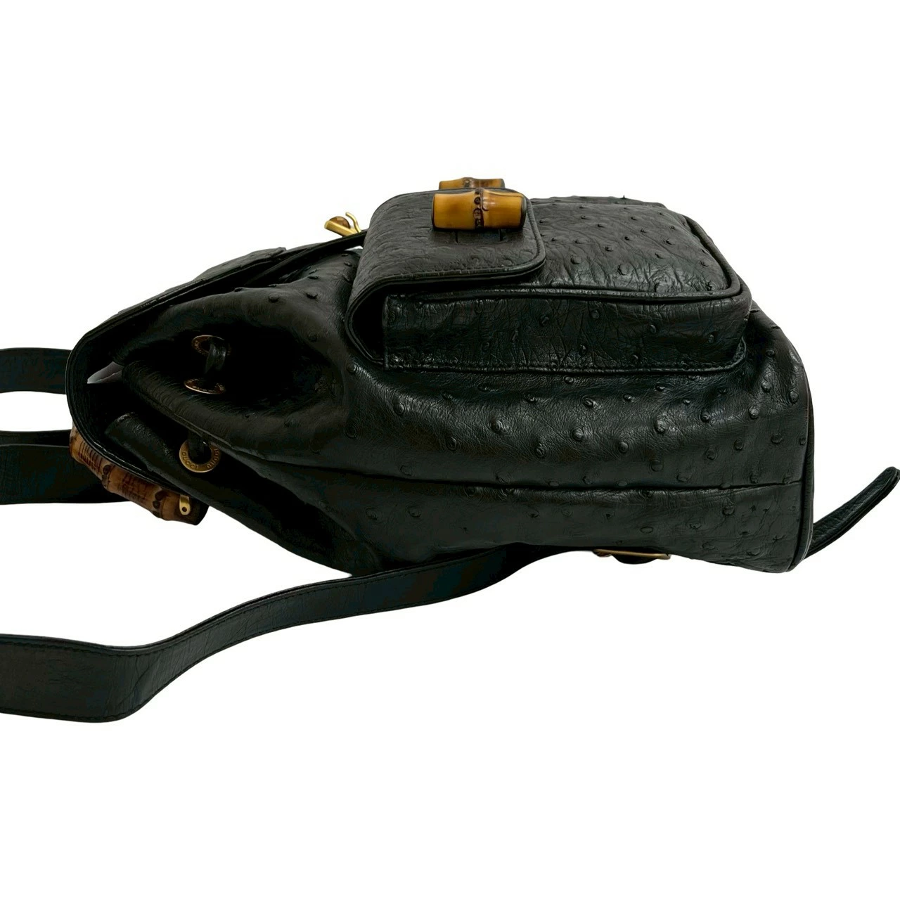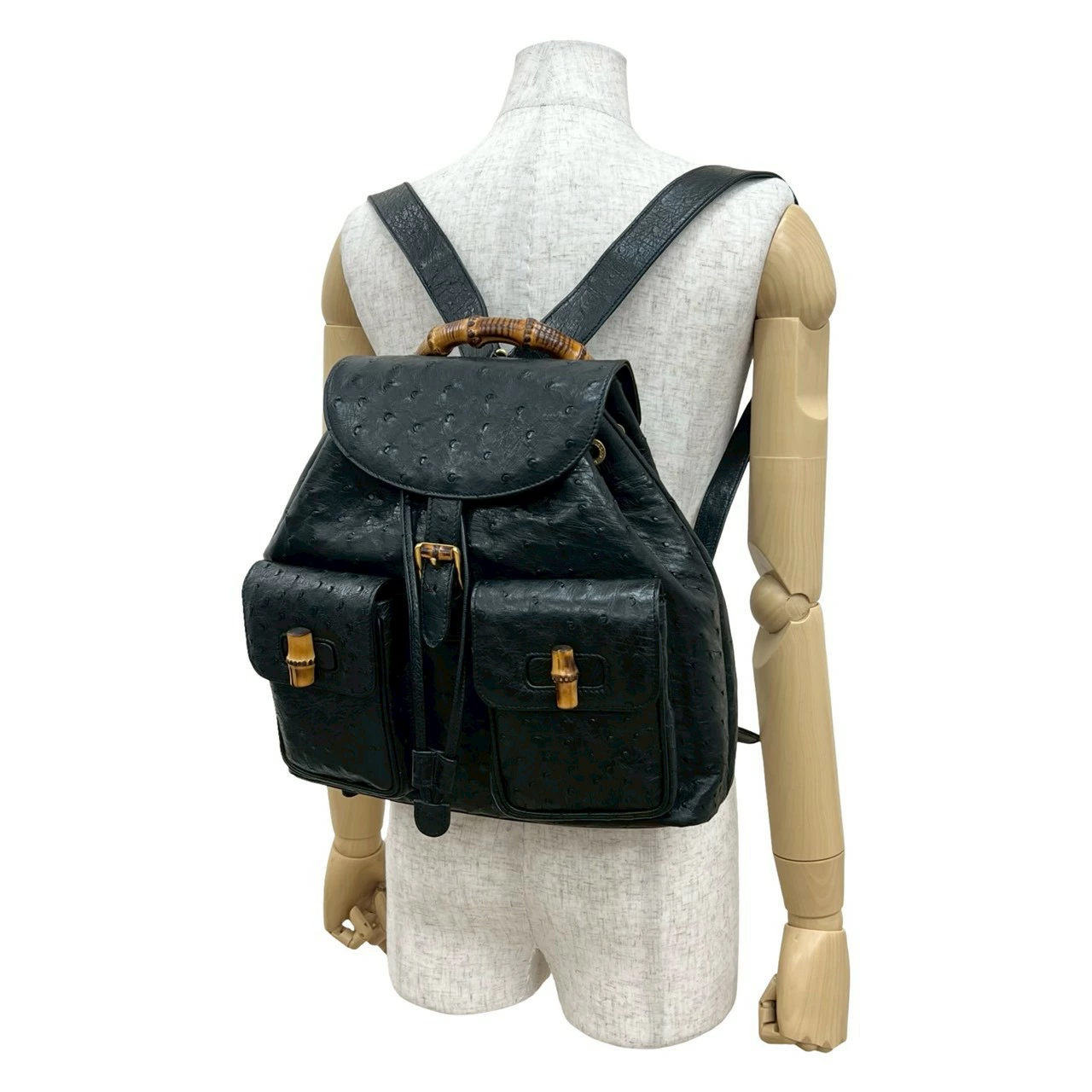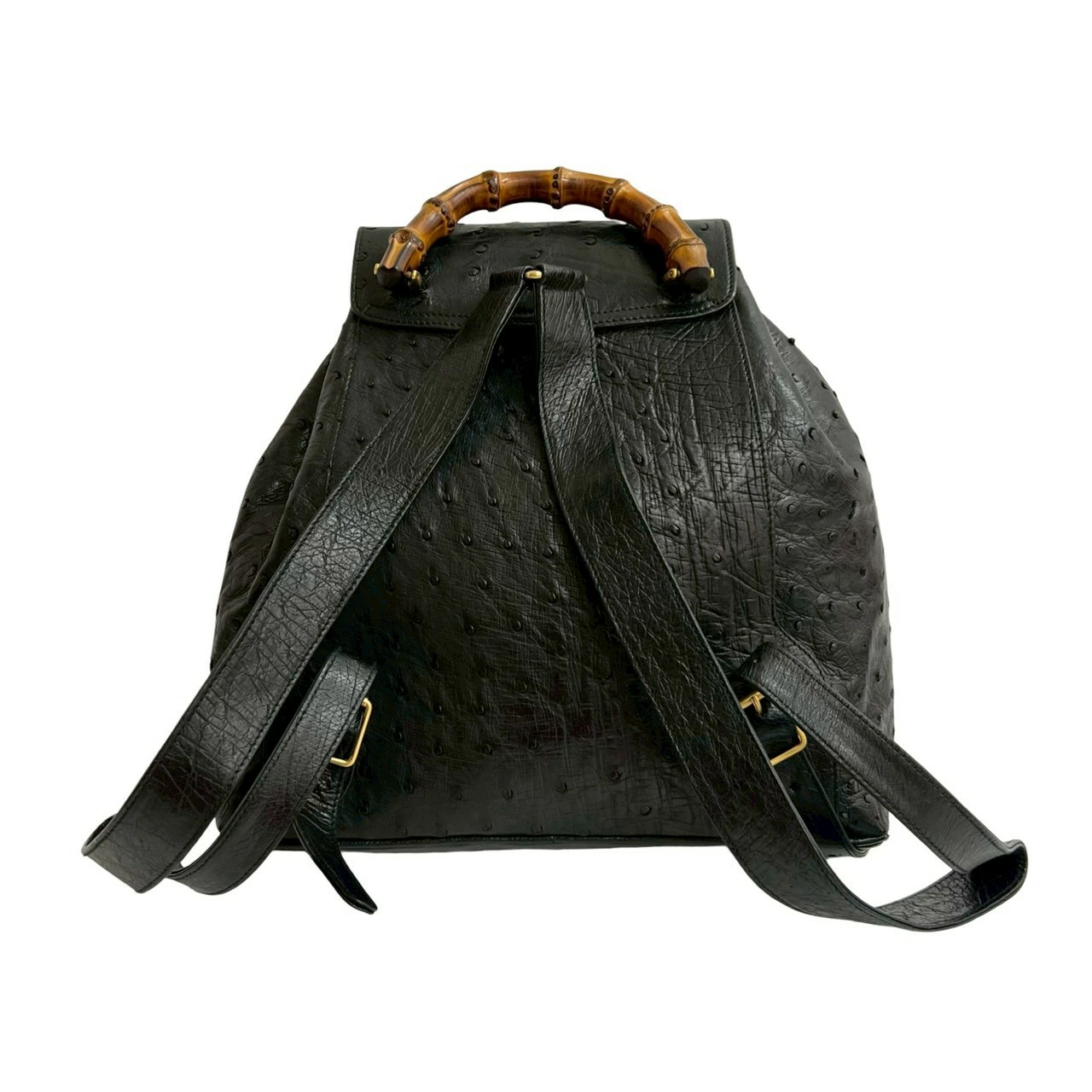 Excellent condition GUCCI Old Gucci Bamboo Ostrich Leather Backpack/Daypack in Black 05186 (Pre-owned)