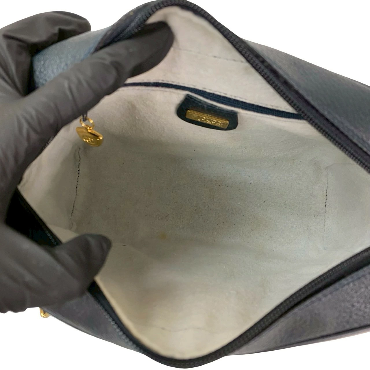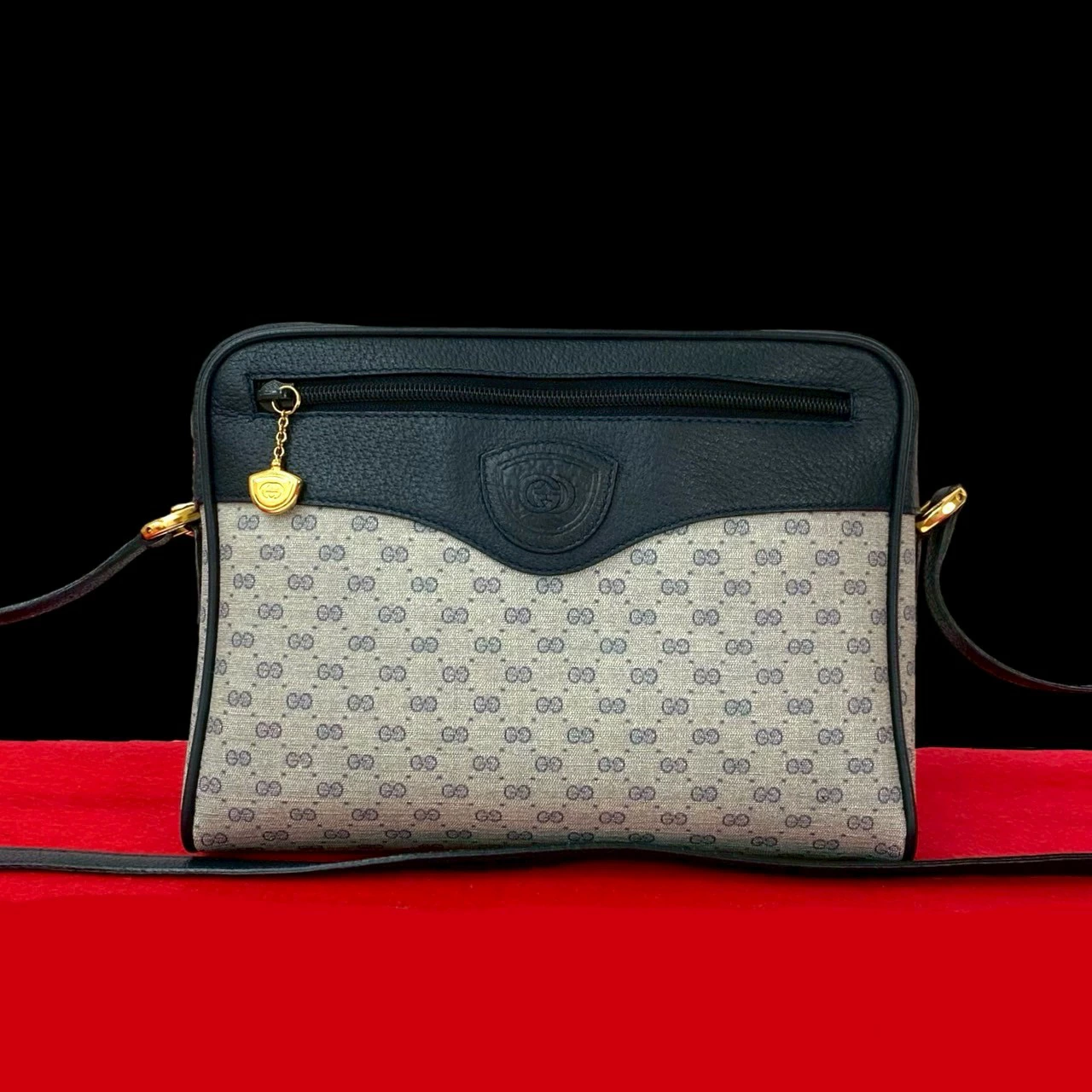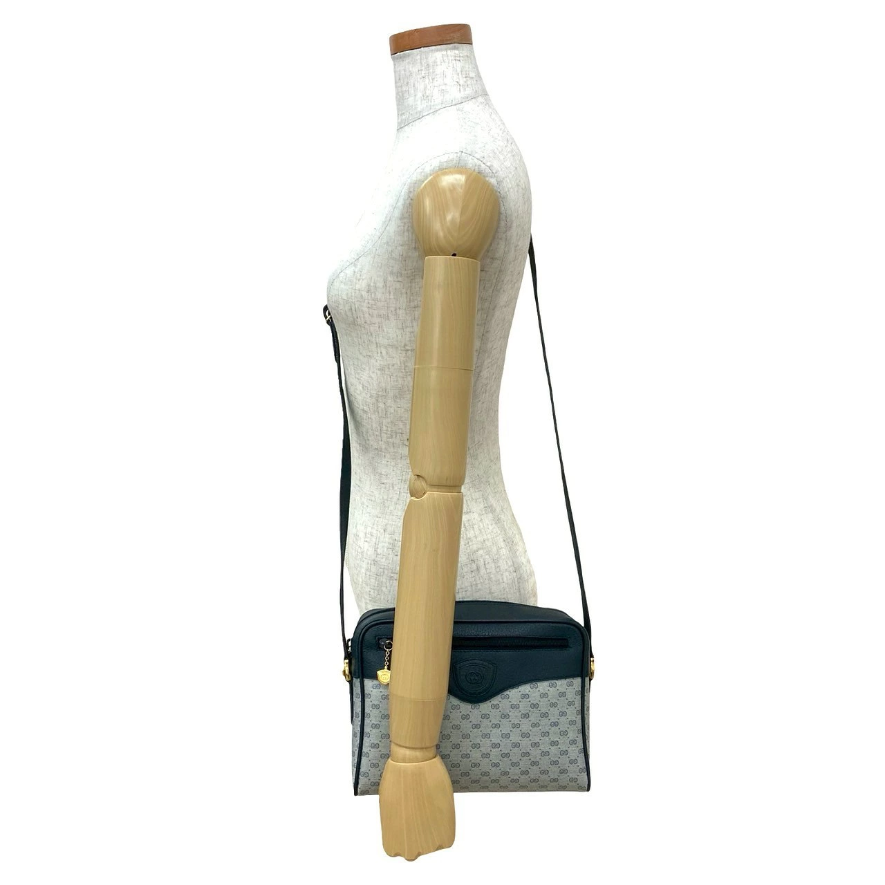 Excellent condition GUCCI vintage micro GG logo leather shoulder bag/pouch/sacoche in navy (20693) [pre-owned]