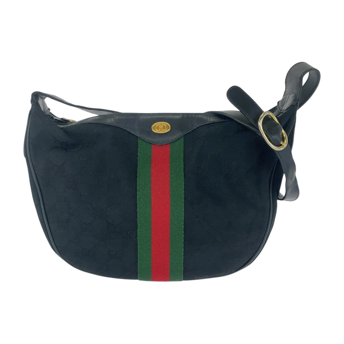Excellent condition GUCCI Vintage Sherry Line Old Gucci Black GG Canvas/Leather Shoulder Bag 010 378 Women's 505506 [Pre-owned]