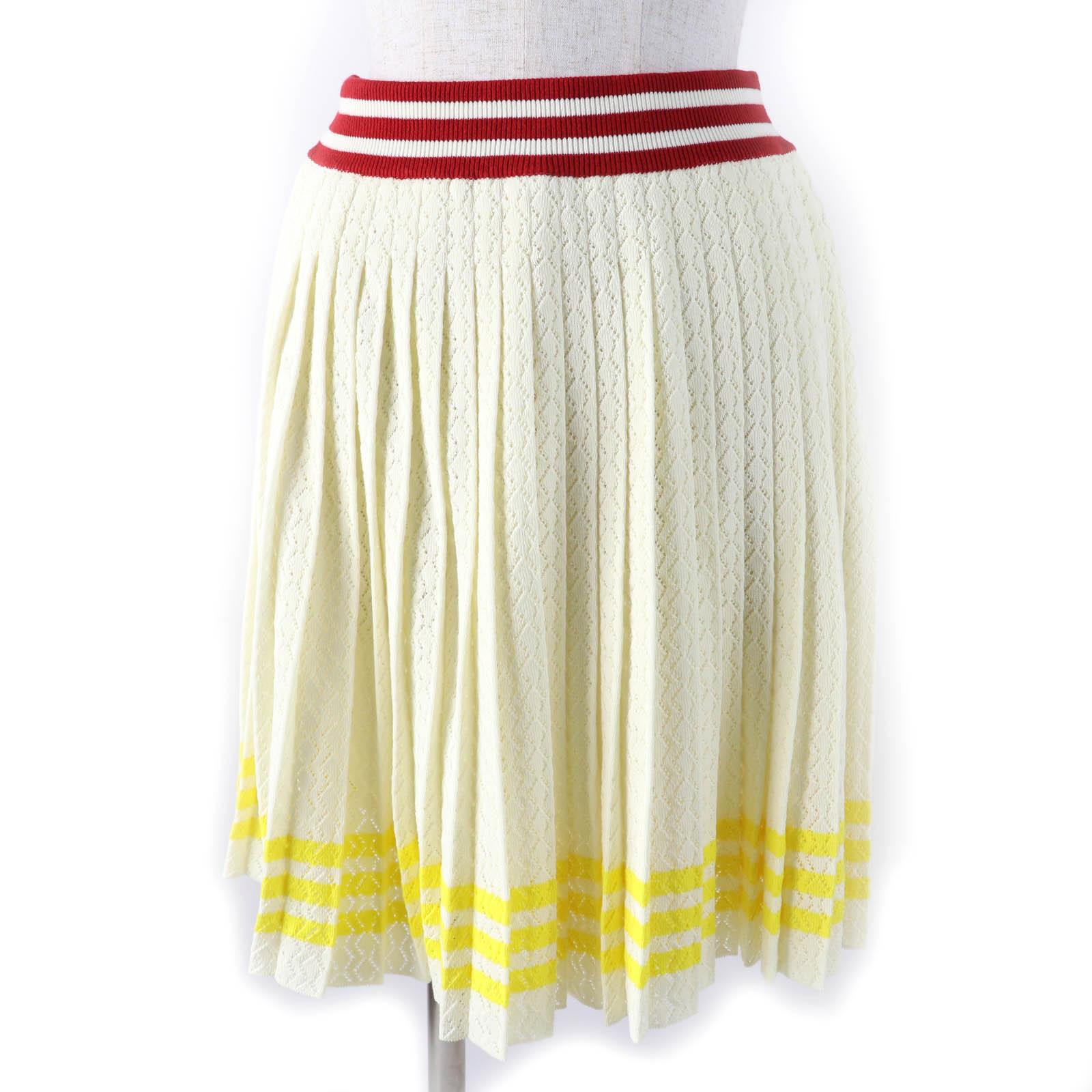 Excellent condition GUCCI x adidas 702874 Three-Line Cotton Knit Pleated Skirt, Ivory, Size L, Made in Italy, Authentic, Women's [Pre-owned]