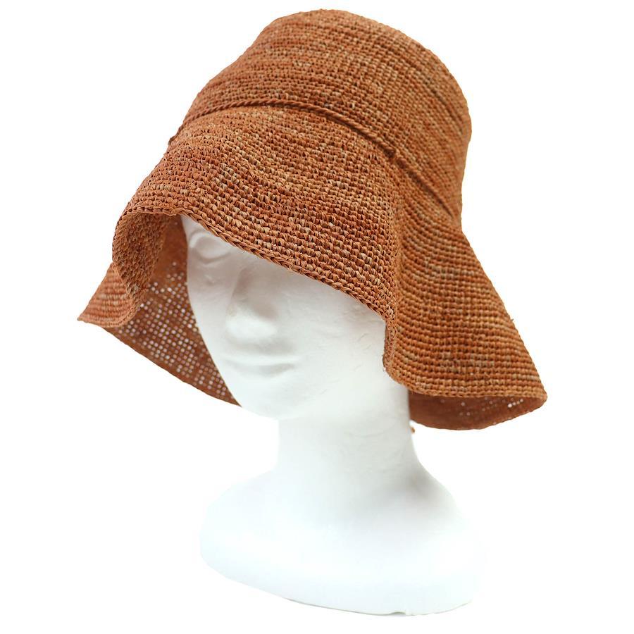 Excellent condition: Helen Kaminski Villa 9 100% raffia medium-brim cloche straw hat in brown. Includes dust bag. Women's. Pre-owned.