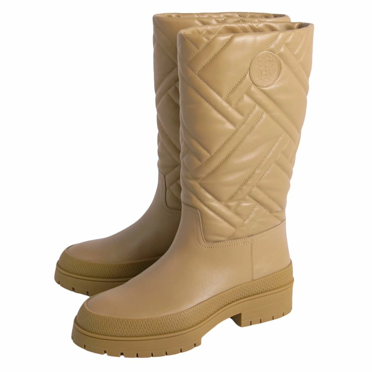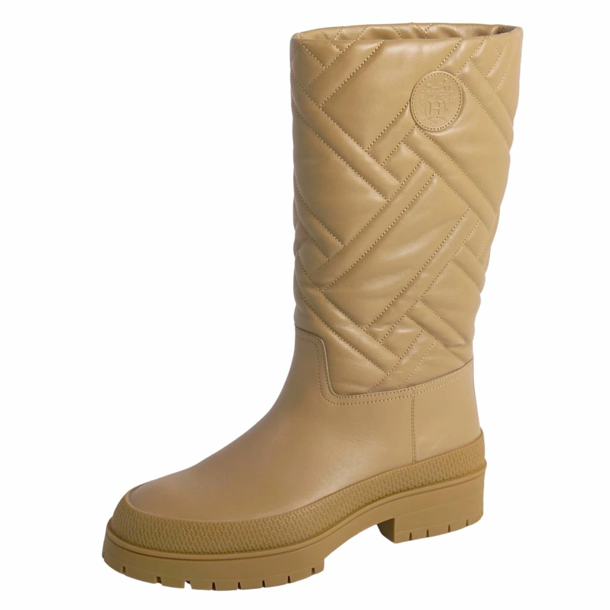 [Excellent Condition] Hermès 2022 Fuji Long Boots, Quilted Leather, Women's, Made in Italy, Size 37 (equivalent to 24cm), Light Brown [Pre-owned]