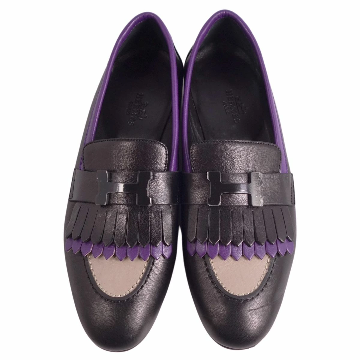 ■商品名エルメス HERMES ローファー 2023 モカシン ロワイヤル コンスタンス Hロゴ金具 レザー シューズ レディース ブラック/パープル サイズ36(23cm相当)■状態説明・上質なレザーを贅沢に使用した、HERMESのローファー「ロワイヤル」です♪・バイカラーデザインにアイコニックなコンスタンス(Hロゴ金具)が魅力的な一足です◎・イタリア製・USEDですが使用感も少なくキレイな状態です!【季節感:オールシーズン】【付属品:箱/保存袋】■素材レザー■カラーブラック/パープル■表記サイズ36(23cm相当)■実寸サイズアウトソール:約24.5cm幅:約8cm■状態ランクSA 使用感のほぼ無いとてもキレイなUSED品■店舗管理番号ce08do-rm07e33027womens_black