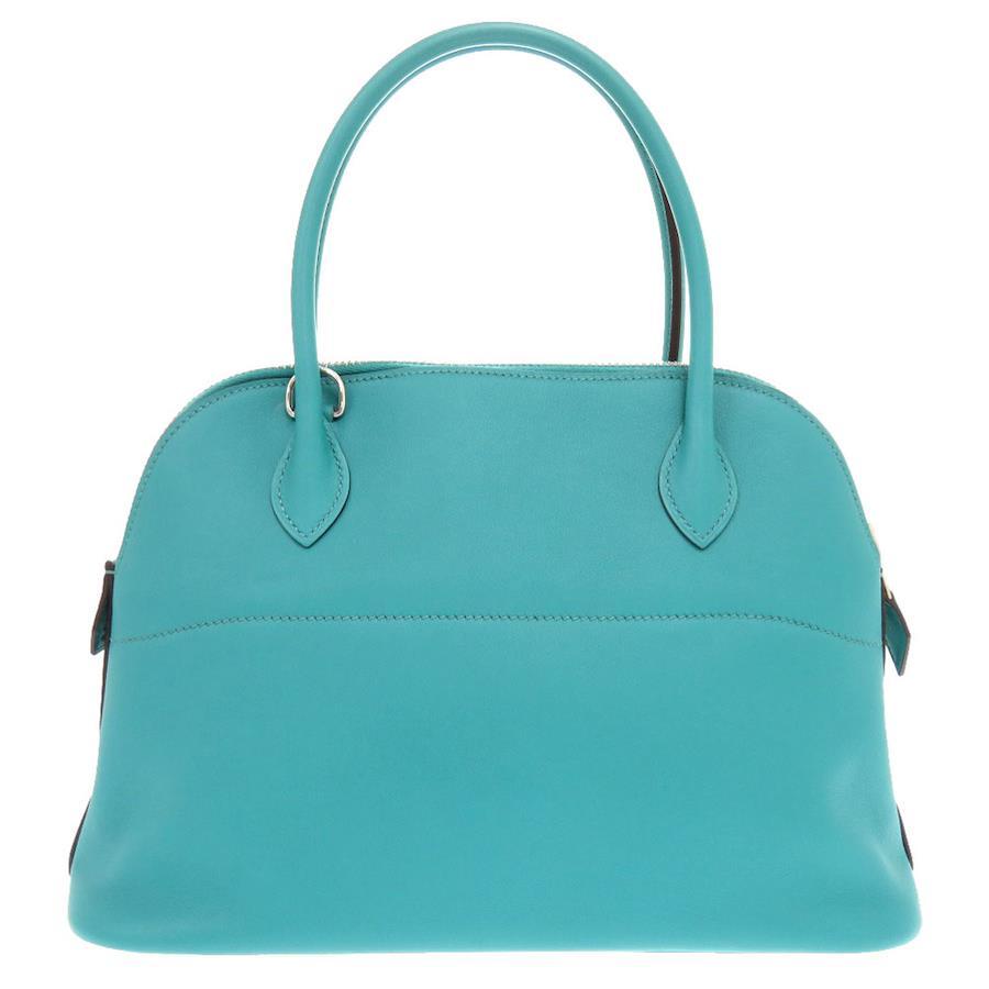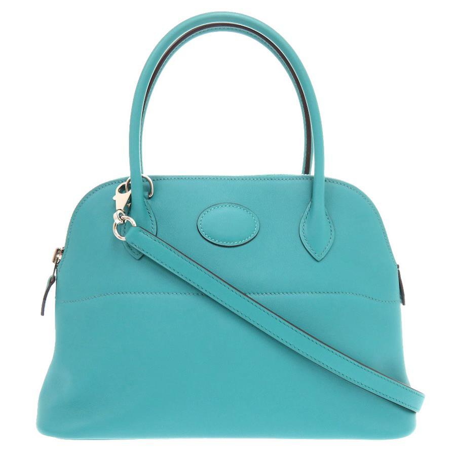 Excellent condition Hermès Bolide 27, Swift leather, blue paon, silver hardware, X stamp, 2-way handbag, blue, 0356 [Pre-owned] HERMES