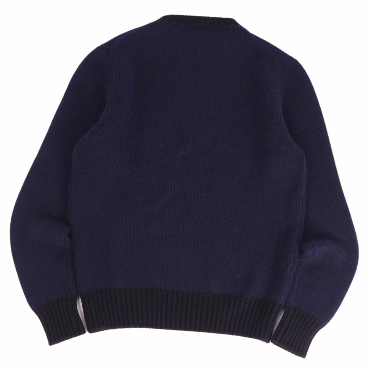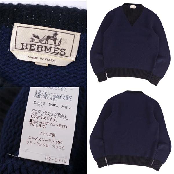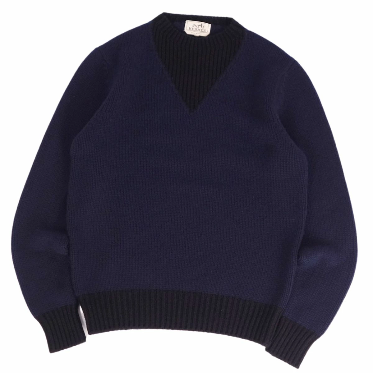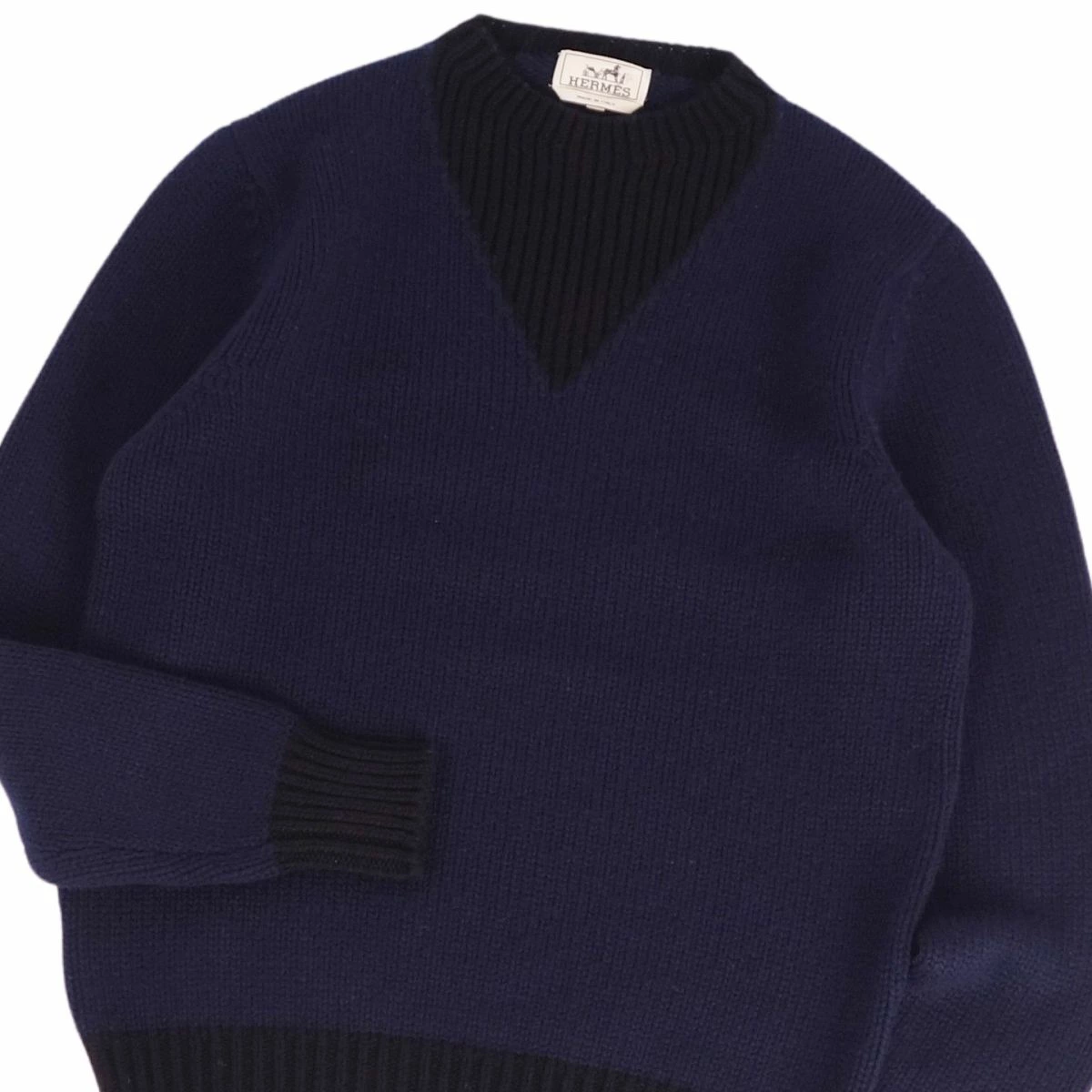 Excellent condition: Hermès long-sleeved knit sweater, cashmere and cotton, men's, made in Italy, size S, navy. Pre-owned.