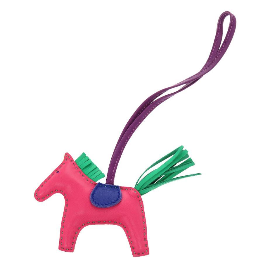 Excellent condition Hermès Rodeo PM Rainbow reversible bag in Rose Shocking, Mint, Blue Aztec, Blue Electric, Violet Anion and Anjou Milo. 0787 [Pre-owned] Hermès multicolor.