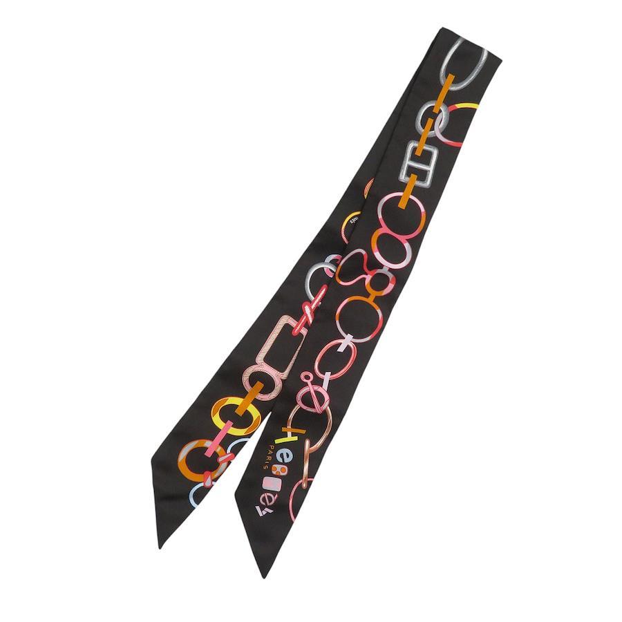 [管理番号]7X0208-2IZZ5[ブランド]エルメス(HERMES)[対象]レディース[カラー]ノワール/ローズ x マルチカラー[モデル]ツイリー Do Re Boucles[生産国]フランス[サイズ]全長:約85cm[素材]シルク[付属品]保存箱