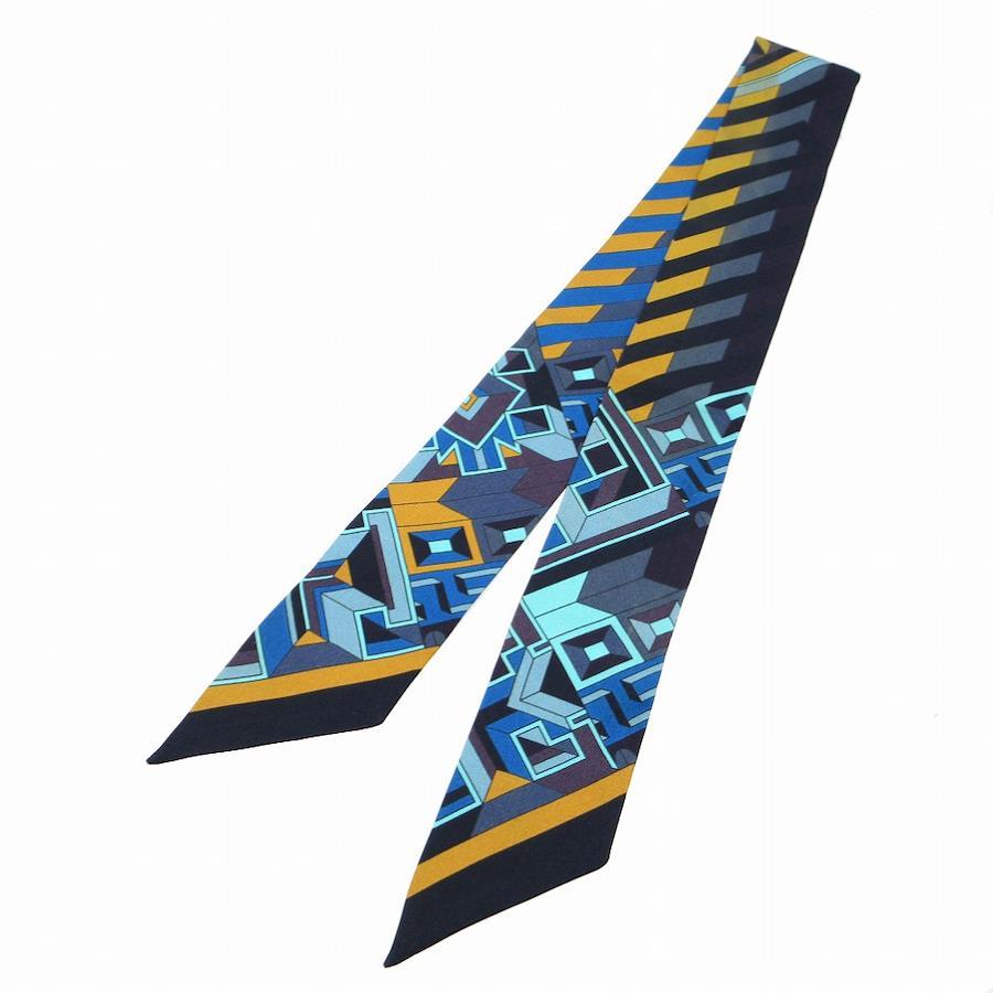 Excellent condition Hermès Twilly LE FIL D'ARIANE silk scarf, blue/jaune/black, 1118 [Pre-owned] HERMES