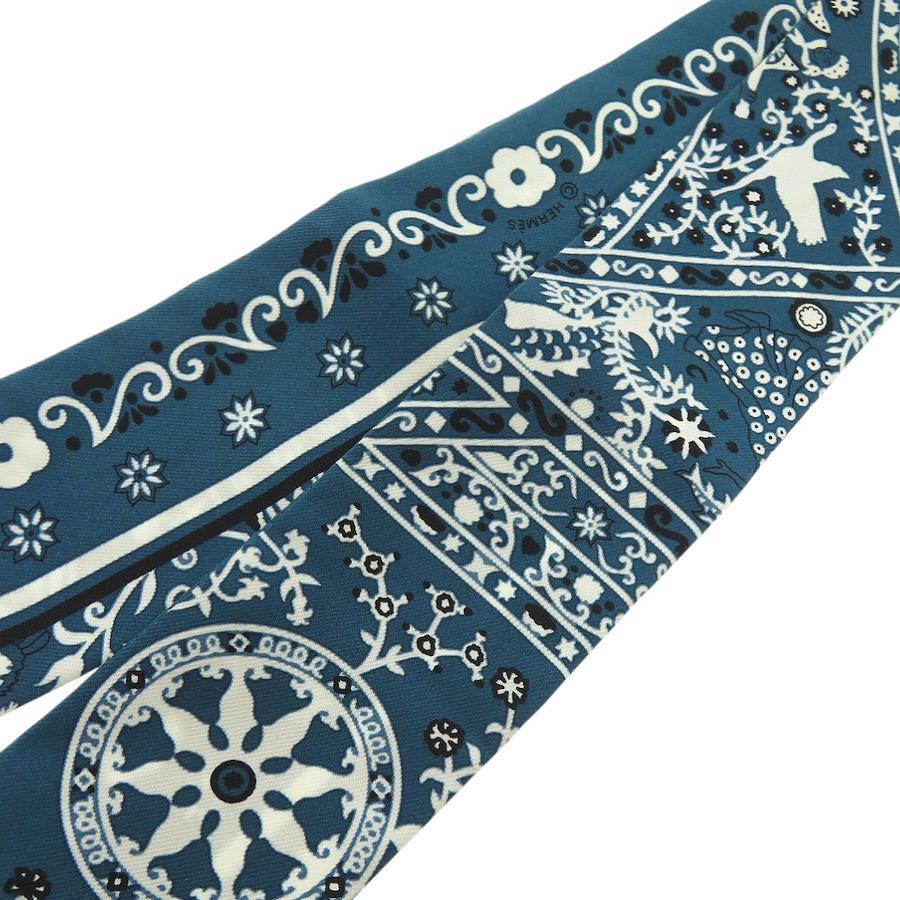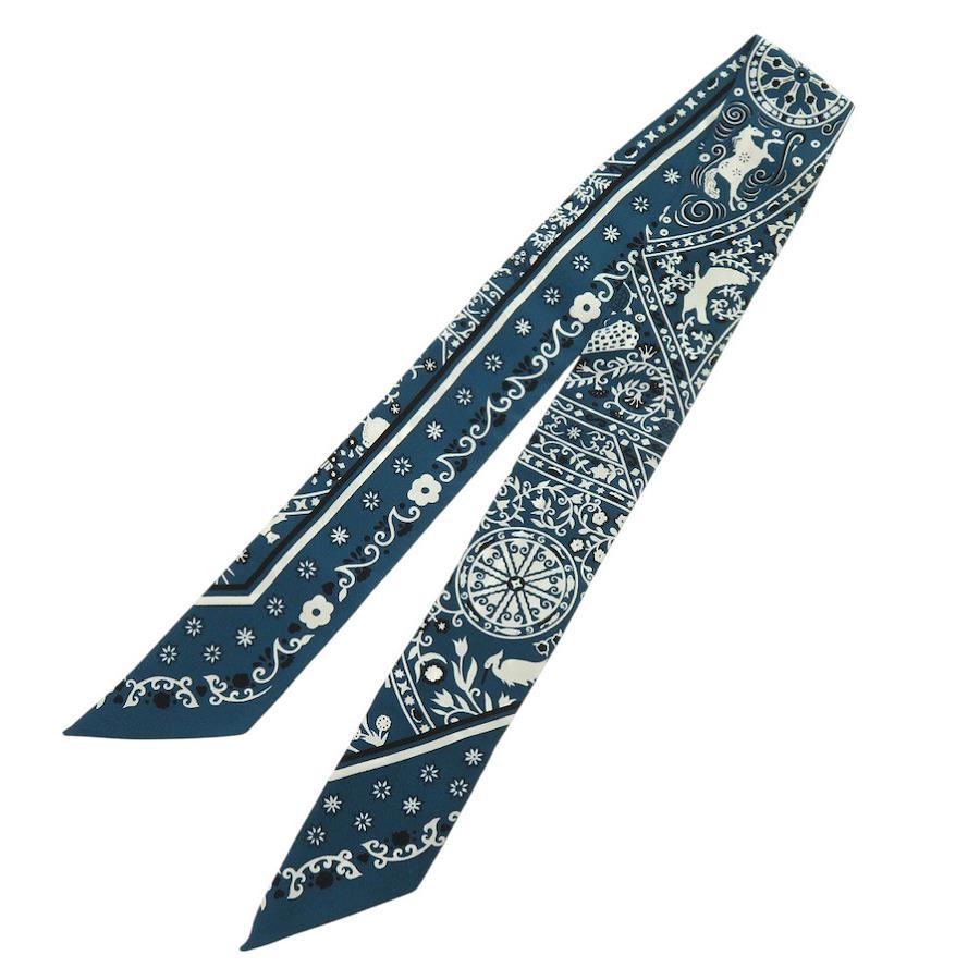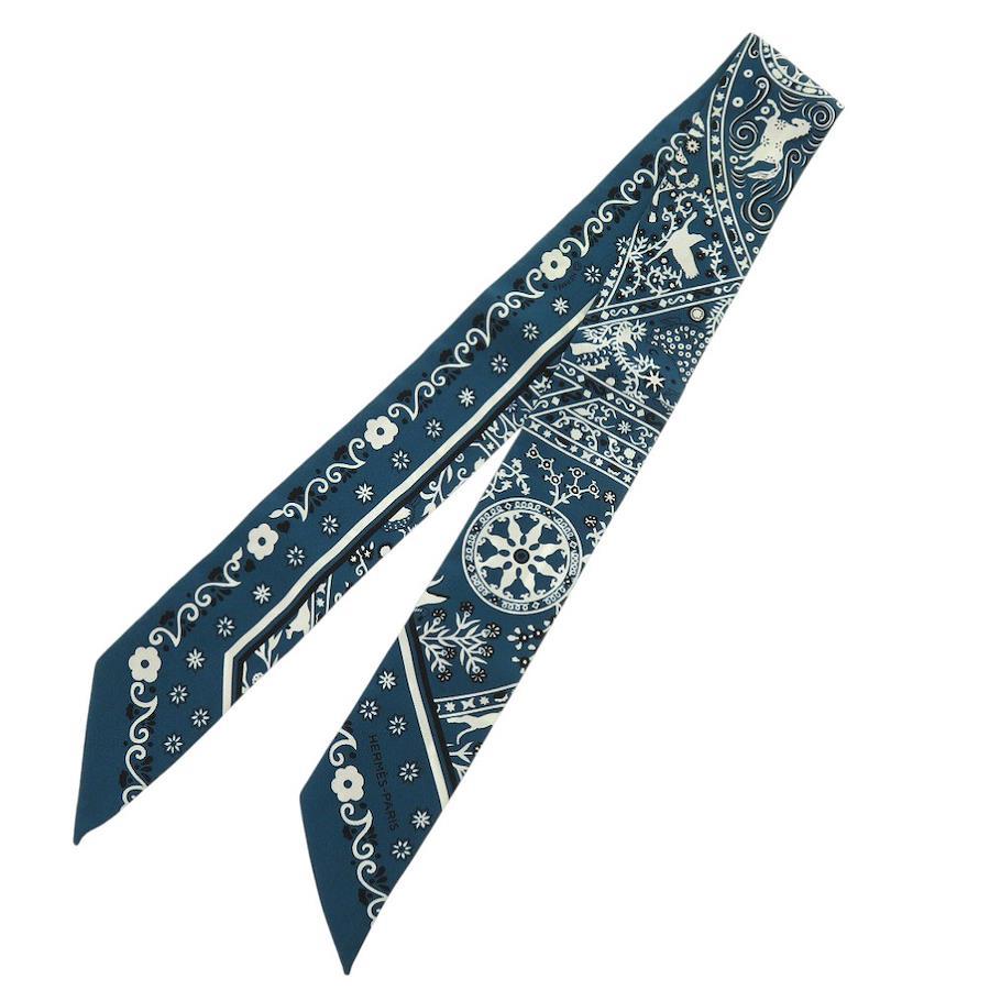 [管理番号]6G1290PP4R16[ブランド]エルメス(HERMES)[対象]レディース[カラー]ブルー[モデル]ツイリー Peuple du Vent 風の民[生産国]フランス[サイズ]全長:約86cm[素材]シルク[付属品]なし