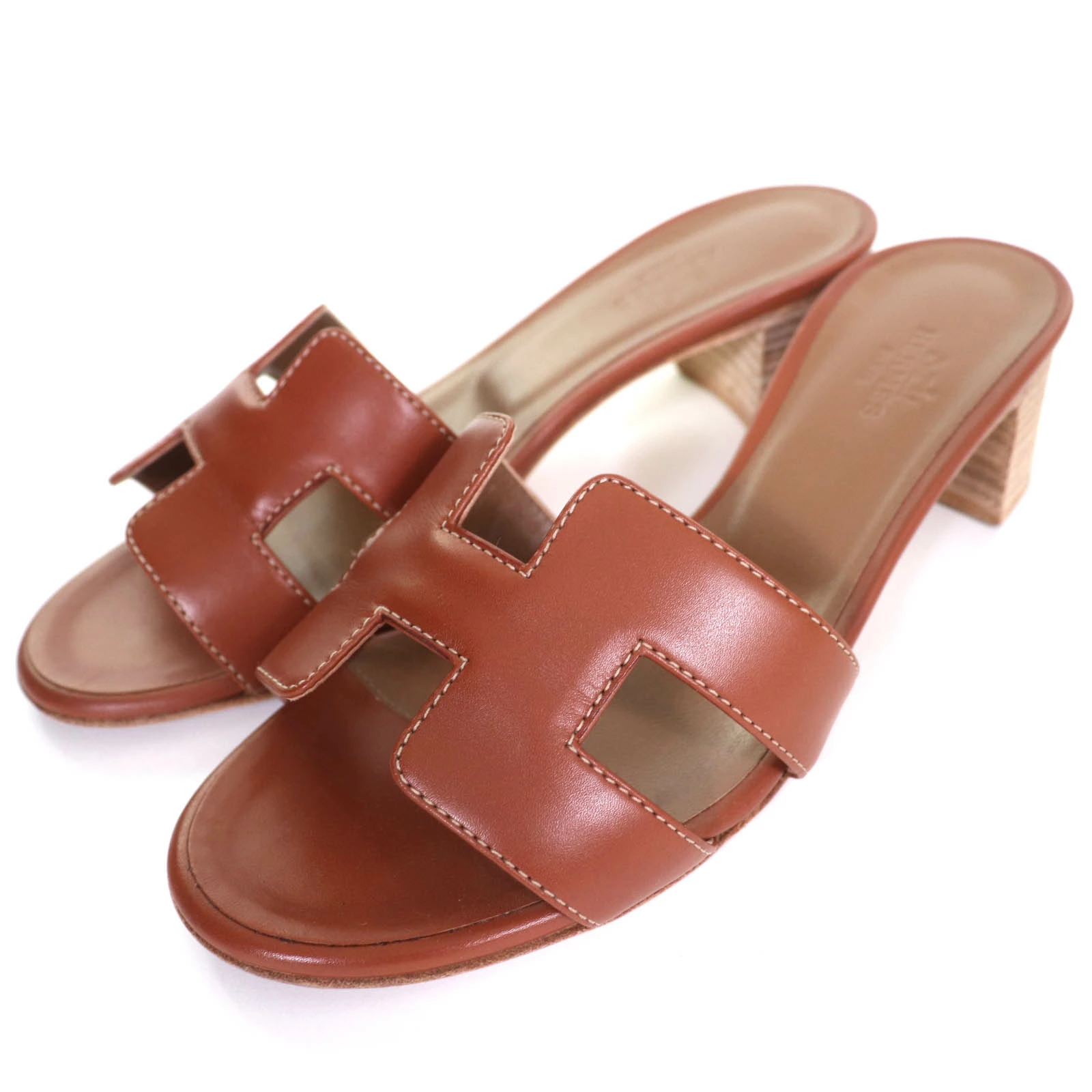 Excellent condition HERMES 071002Z Oasis H logo leather sandals/mules, brown, size 35, with dust bag, made in Italy, recommended for women.◎ [Pre-owned]