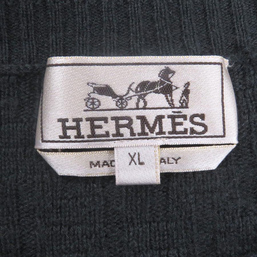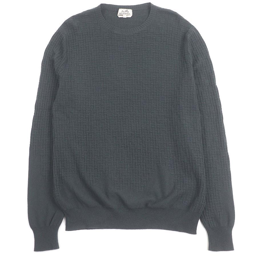 Excellent condition HERMES 100% cashmere H-pattern knit long-sleeve sweater, charcoal, XL, authentic, made in Italy, men's [pre-owned]