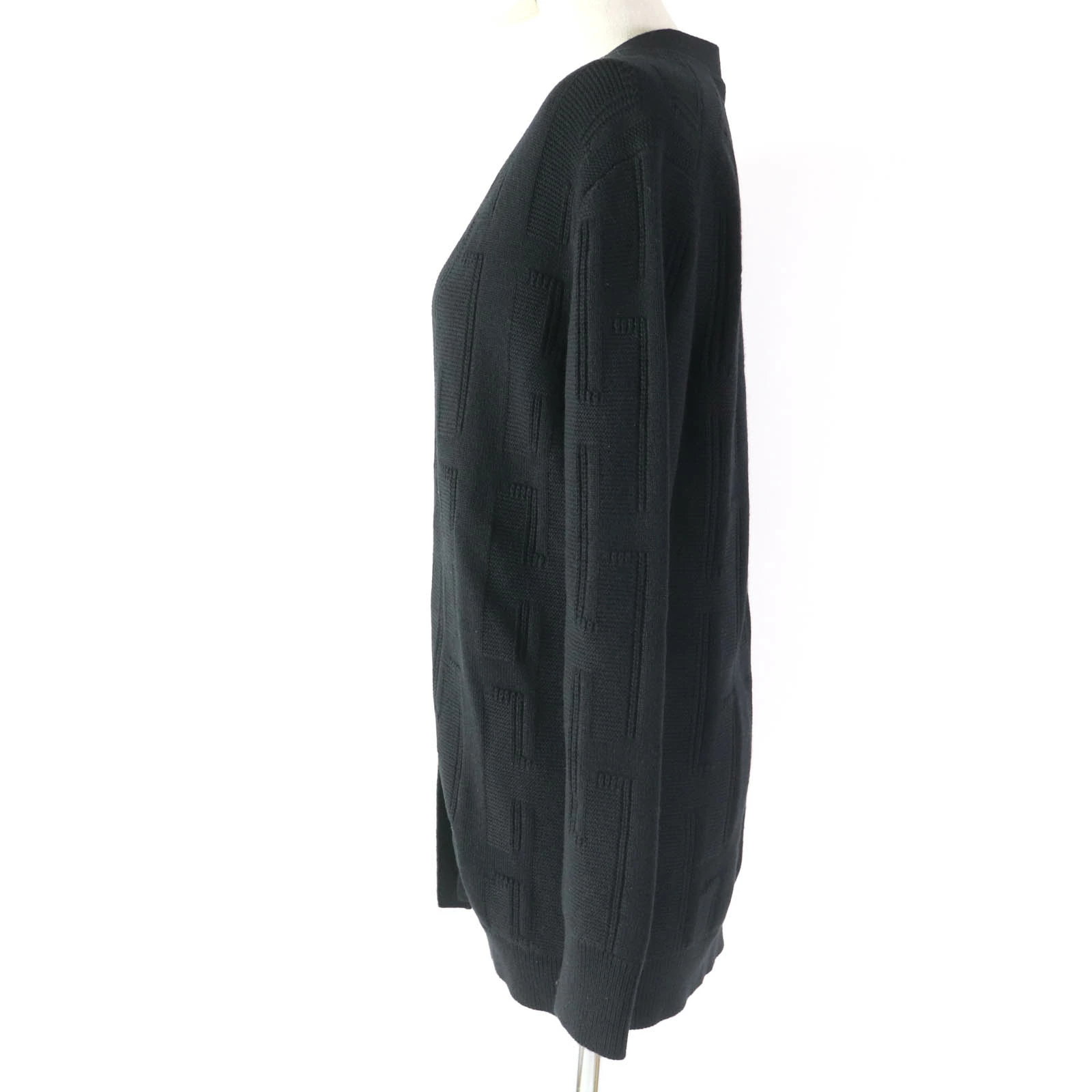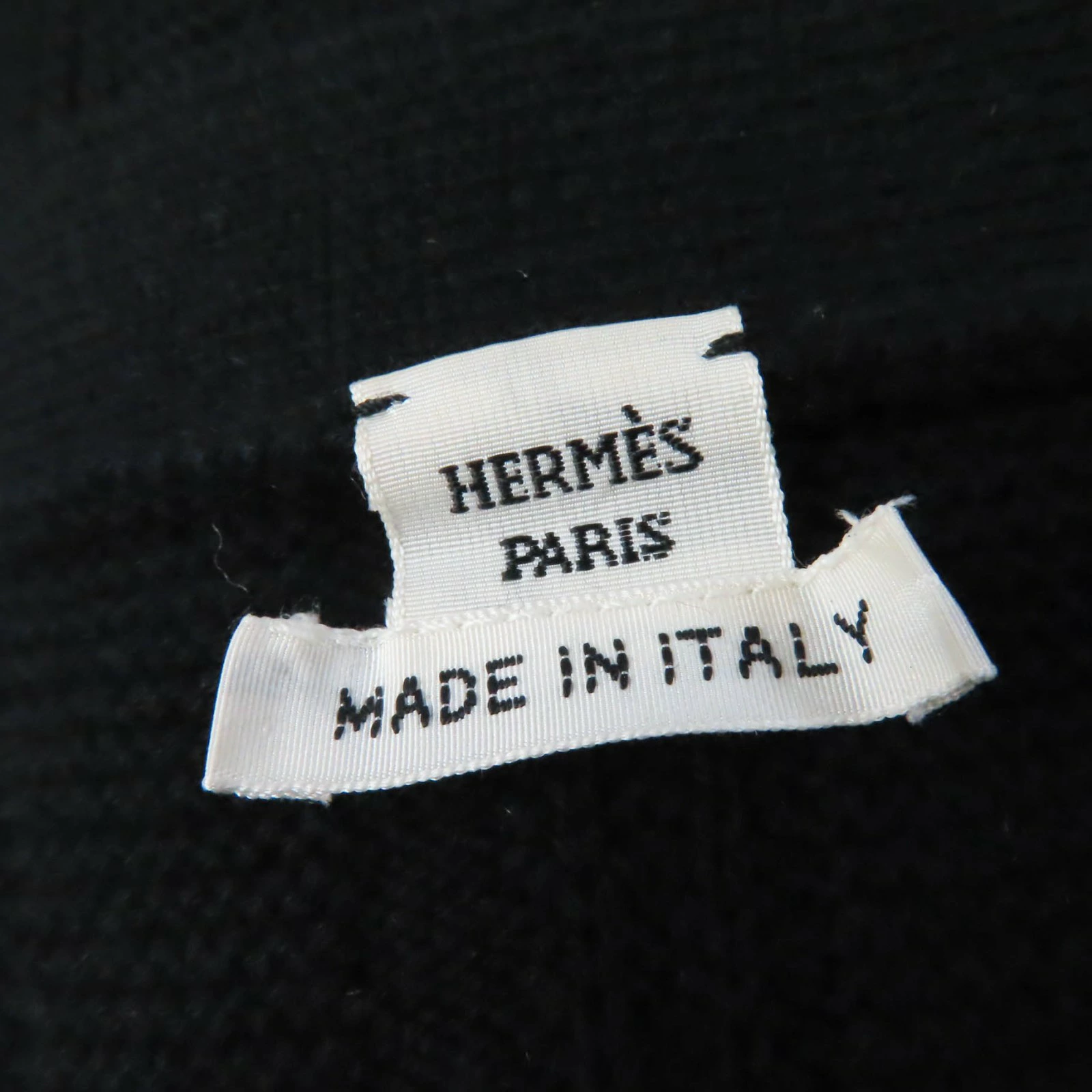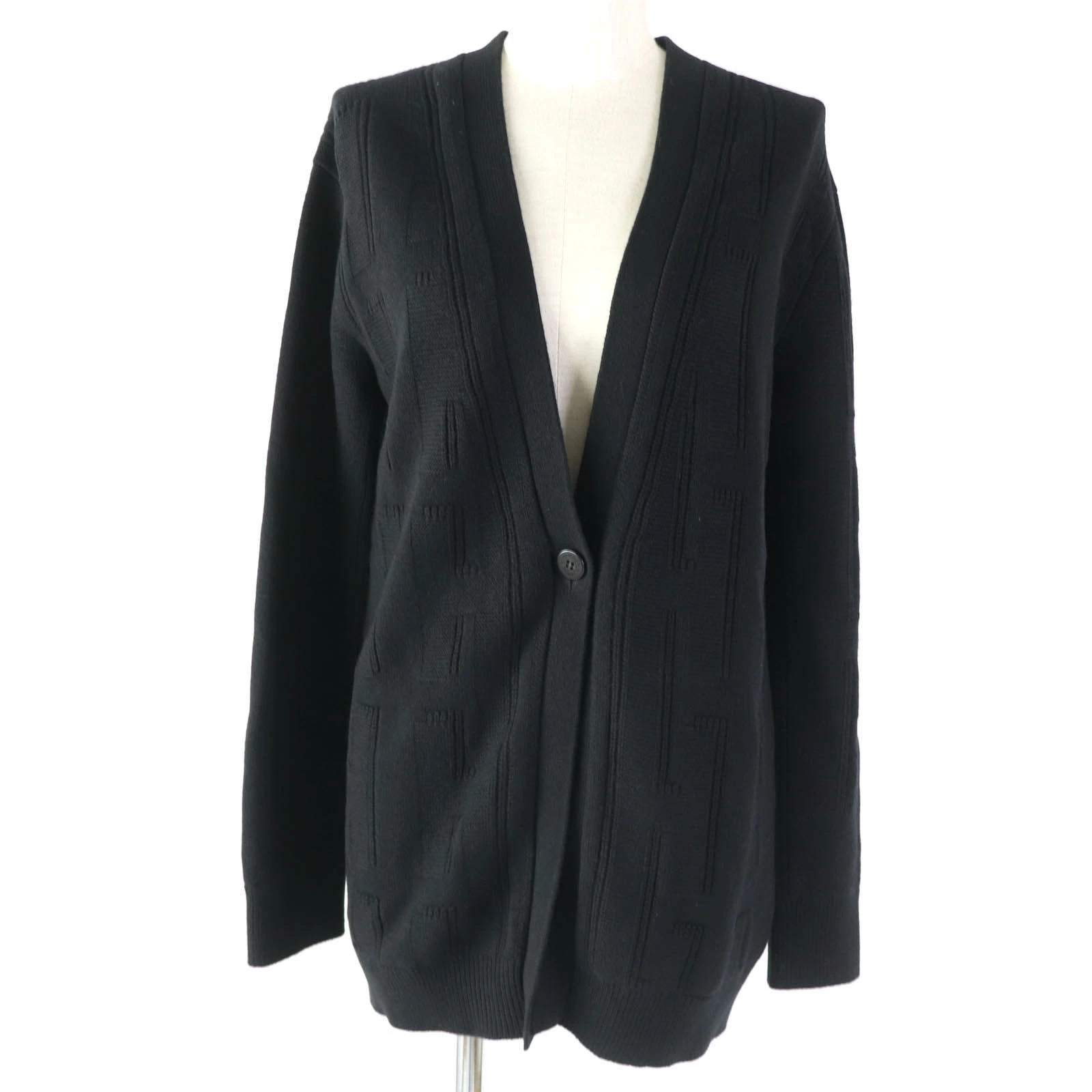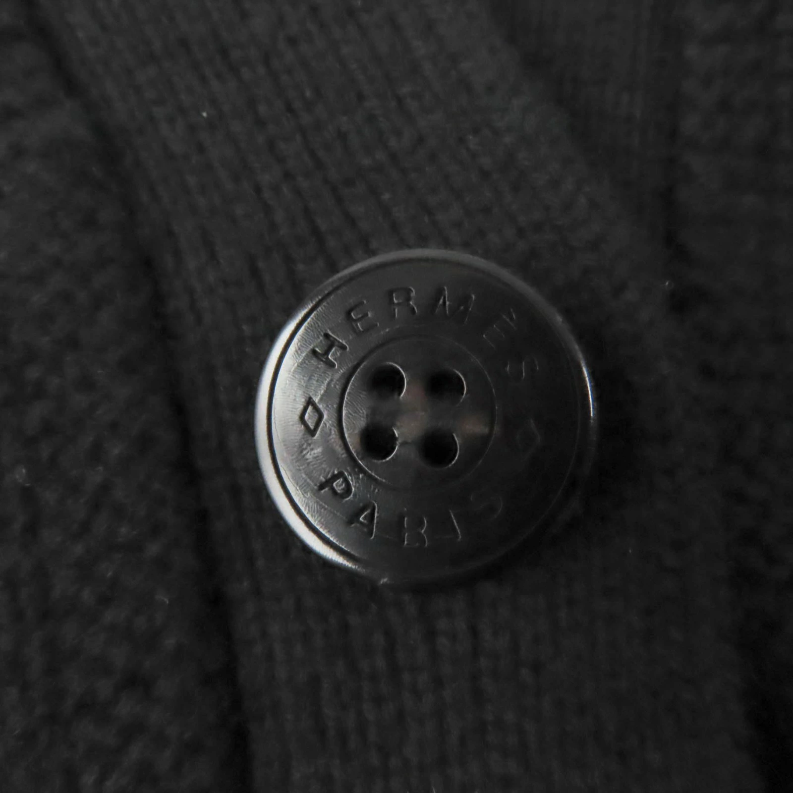 Excellent condition HERMES 2020 100% wool knit cardigan with H-pattern and Serie buttons. Oversized, long-sleeved, black, size 34. Made in Italy. Women's. [Pre-owned]