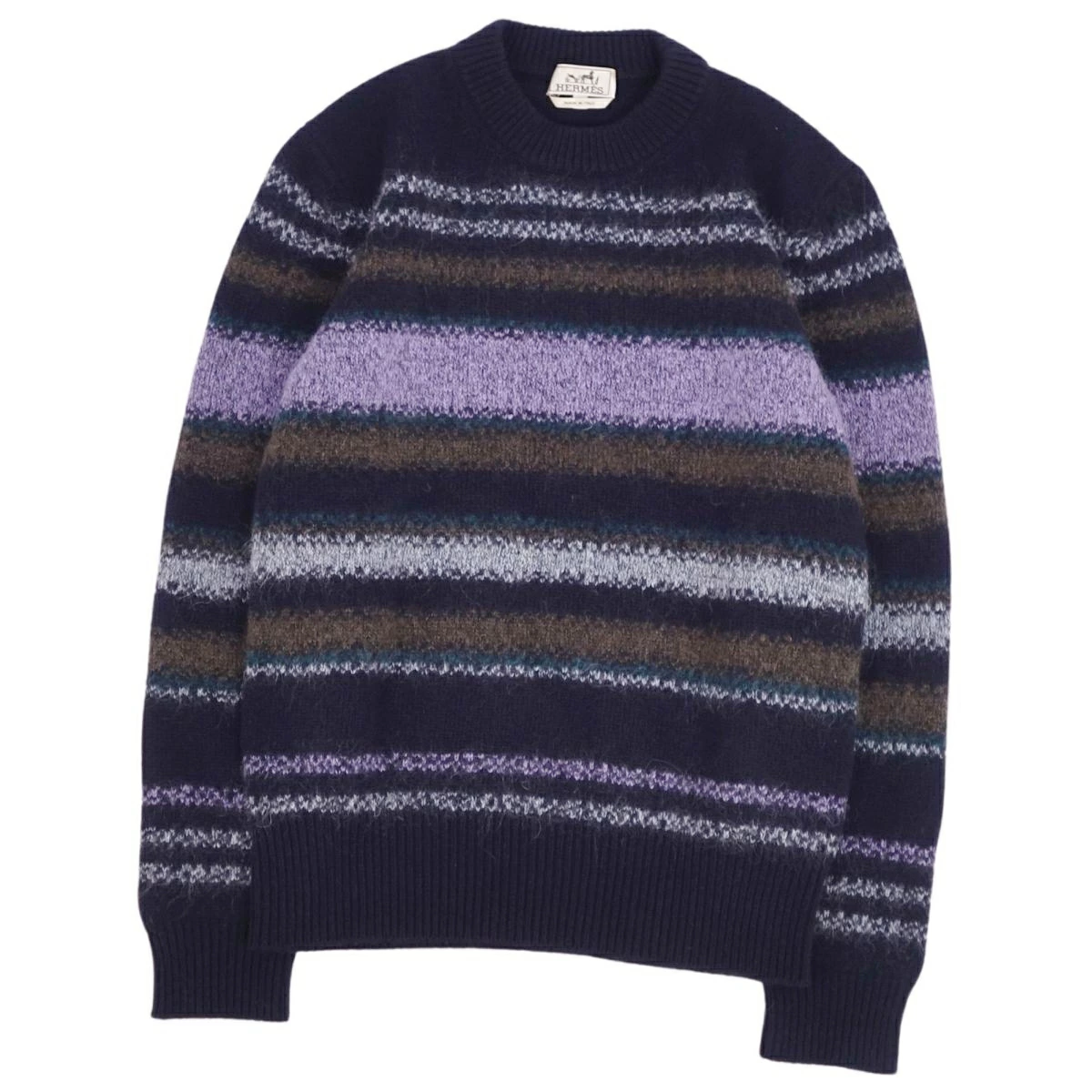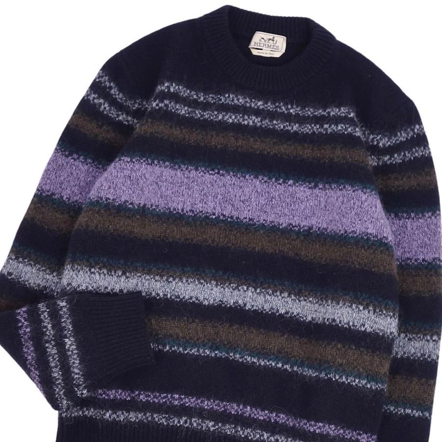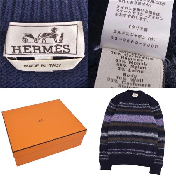 ■商品名エルメス HERMES 21AW ニット セーター クルーネック ロングスリーブ 長袖 ボーダー ウール カシミヤ モヘヤ トップス メンズ ネイビー サイズM■状態説明・肌触りの良いウールカシミヤニット素材を使用した、HERMESのクルーネックセーターです♪・シンプルなデザインでお使い頂きやすい一着です◎・イタリア製・国内正規取扱品です。・USEDですが使用感も少なくキレイな状態です!【季節感:秋冬】【付属品:箱】■素材本体:ウール70% カシミヤ30% 装飾部分:モヘヤ67% ナイロン28% ウール5%■カラーネイビー■表記サイズM■実寸サイズ着丈:約65cm身幅:約50cm肩幅:約42cm袖丈:約64cm■状態ランクSA 使用感のほぼ無いとてもキレイなUSED品■店舗管理番号cf11mn-rm10f12187mens_navy mens_m