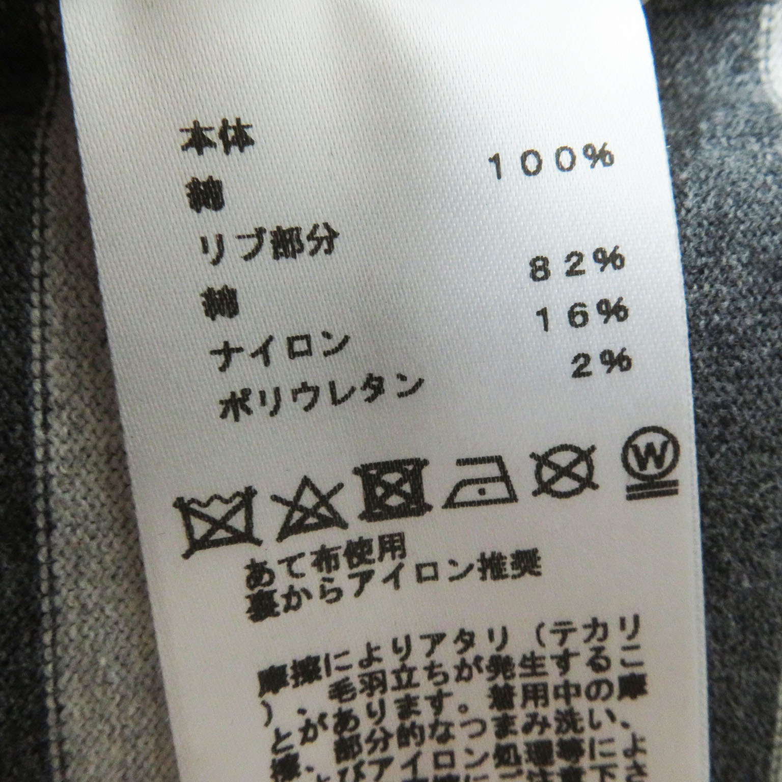 | 素材 (material) | 表地:コットン100% リブ部分:コットン82%・ナイロン16%・ポリウレタン2% | ||||||||||||||||