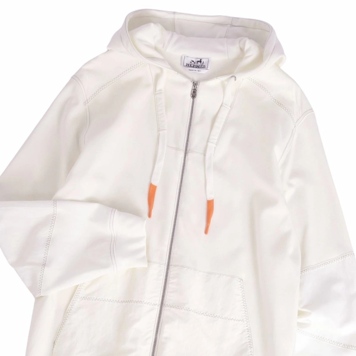 ■商品名エルメス HERMES 22SS パーカー スウェット フーディー ヴォワルH ジップアップ ナイロン切替 ロングスリーブ コットン イタリア製 トップス メンズ クリーム/オレンジ サイズS■状態説明・肌触りの良いコットン素材を使用した、HERMESのジップアップパーカーです♪・無駄な装飾のないHERMESらしいミニマルなデザイン。ナイロンとの切り替えデザインが目を引く一着です◎・イタリア製・国内正規取扱品です。・USEDですが気になるようなキズや汚れなどはなく全体的にキレイな状態です!【季節感:春秋冬】【付属品:なし】■素材本体:コットン100% 切替部分:キュプラ58% ナイロン42% 付属:コットン100%■カラークリーム/オレンジ■表記サイズS■実寸サイズ着丈:約69cm身幅:約54cm肩幅:約47.5cm袖丈:約60.5cm■状態ランクSA 使用感のほぼ無いとてもキレイなUSED品■店舗管理番号ce05mo-rm10r07740mens_white mens_s